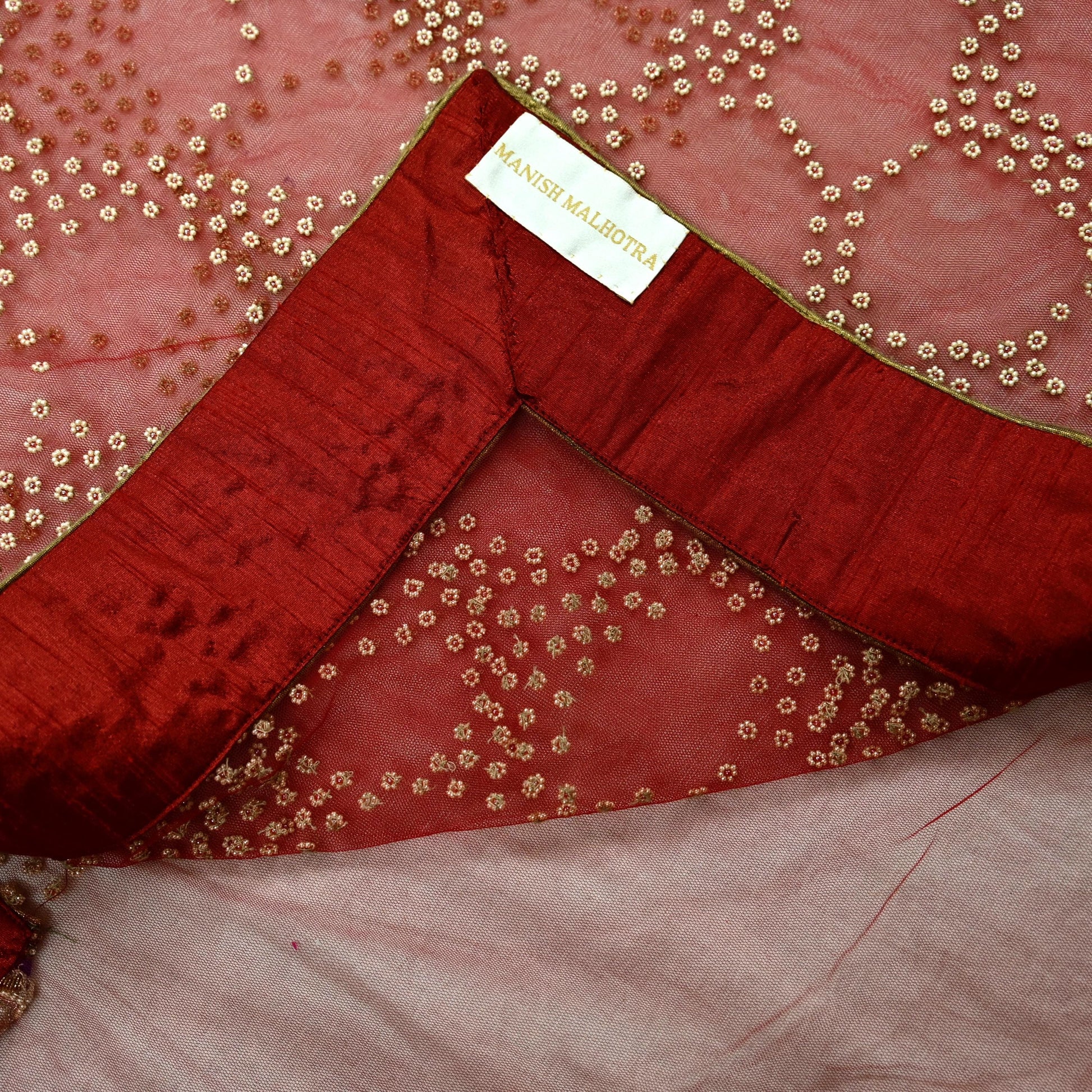 Beautiful Red Hand-Embroidered Manish Malhotra Designer Saree – Net Fabric
