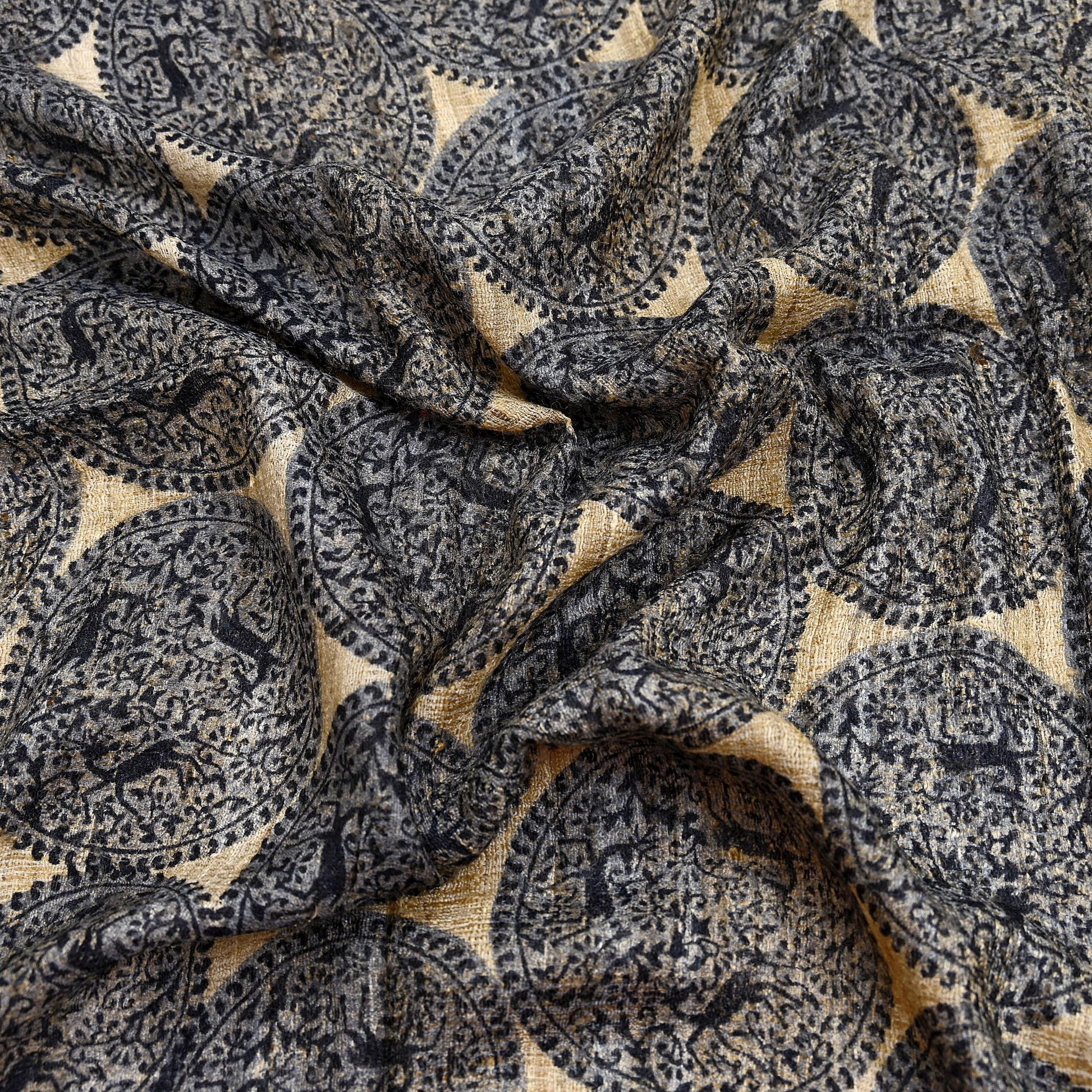 Elegant Beige & Black Printed Pure Khadi Silk Dupatta | Floral Design | Handloom Woven | Lightweight & Soft