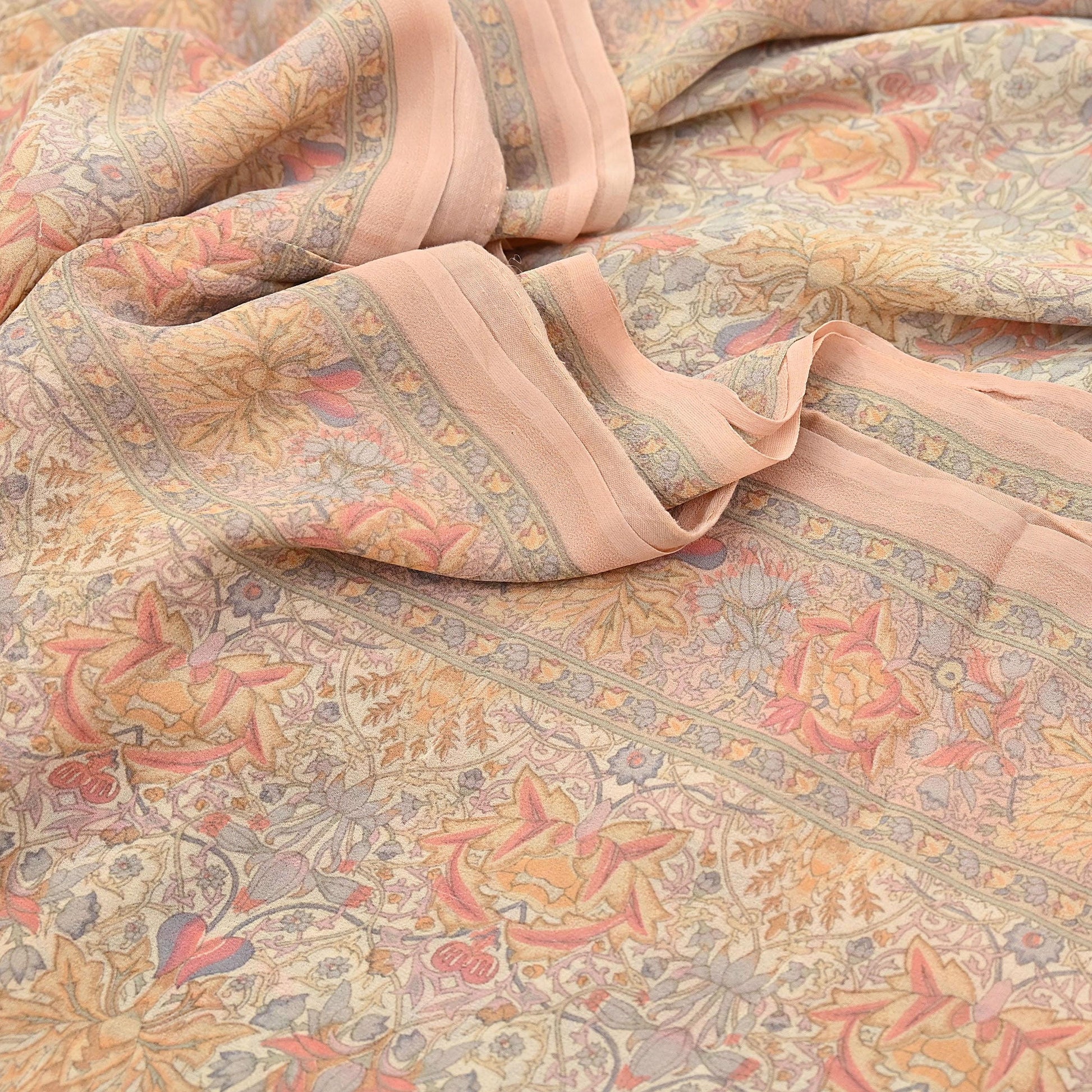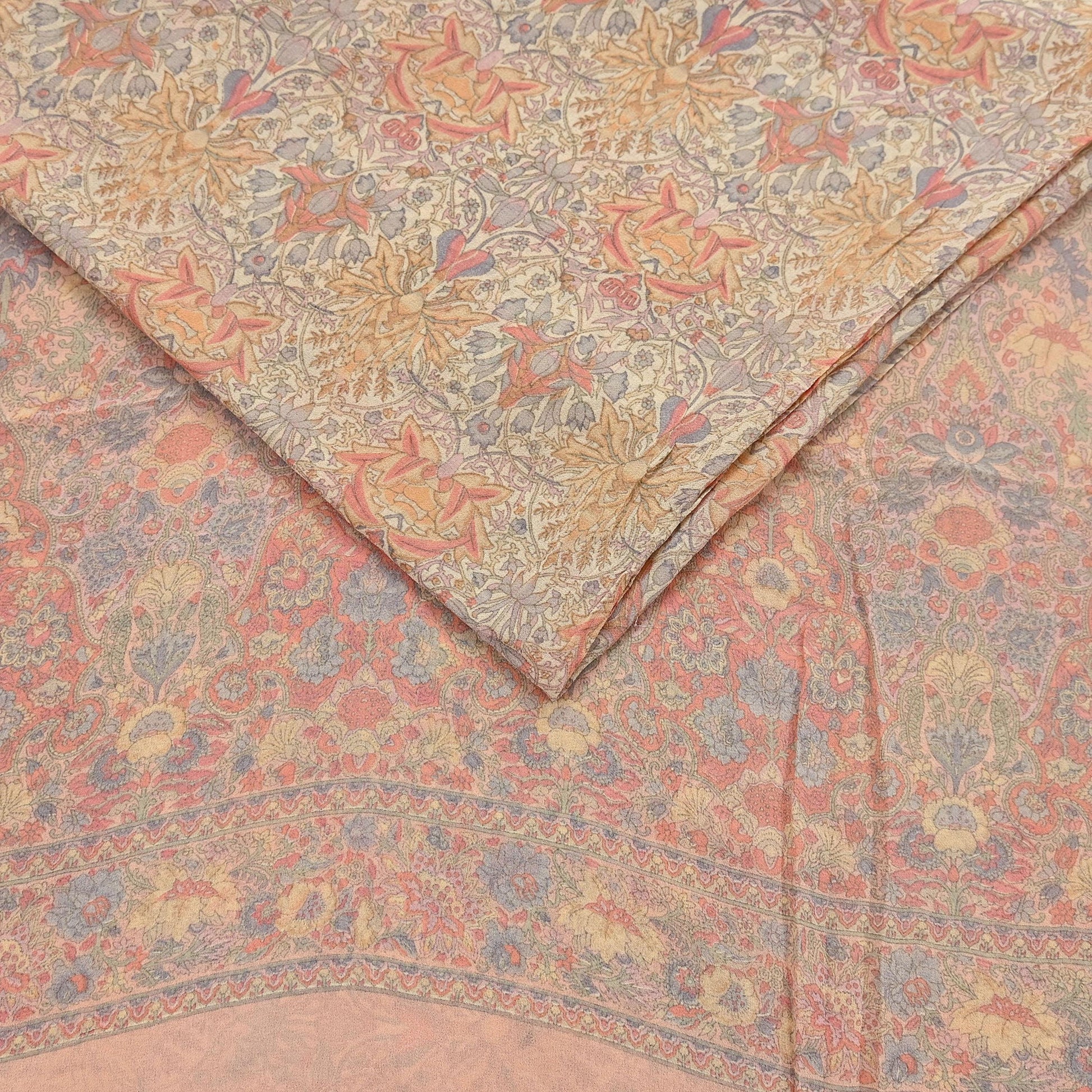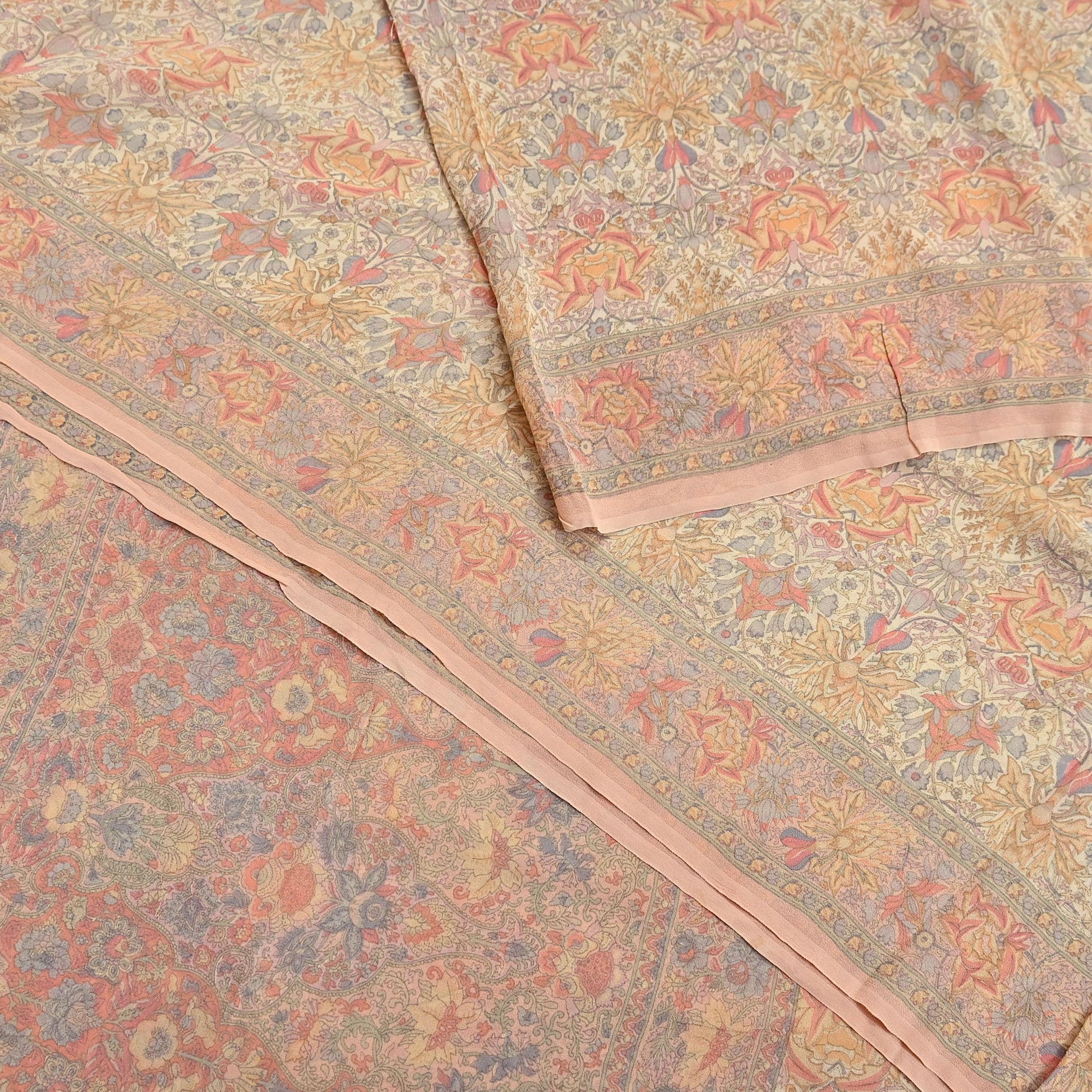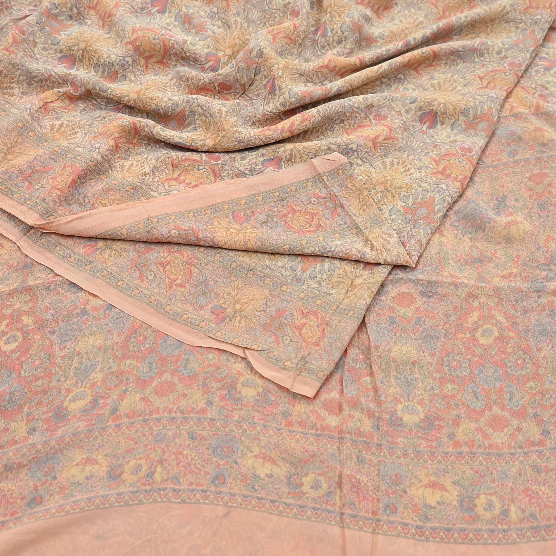 Indian Vintage Beige & Peach Saree Pure Georgette Silk Printed Sari Craft Fabric Sewing 5Yard Soft Light Dress Making Floral