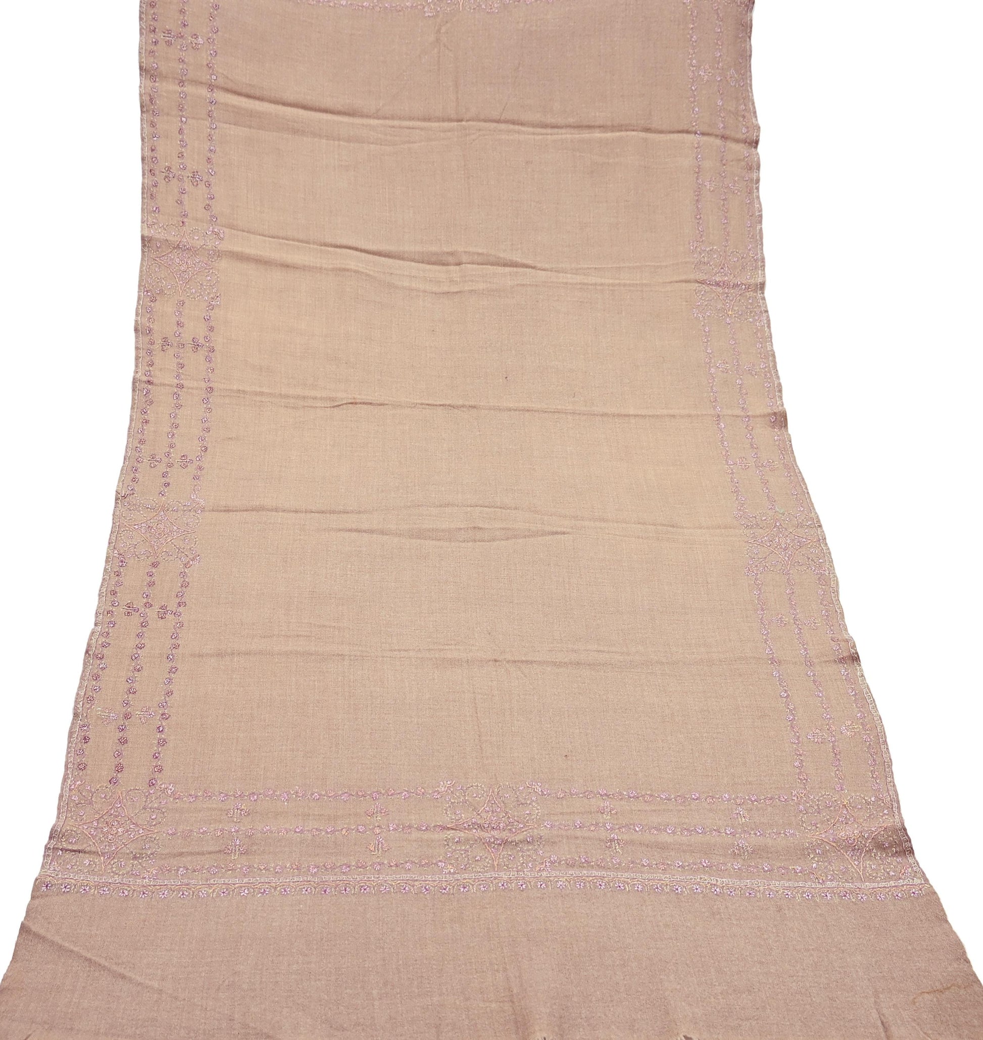Indian Vintage Beige Shawl Pure Woolen Handmade Suzani Long Throw Stole Warm Floral Design Soft Soft Cozy