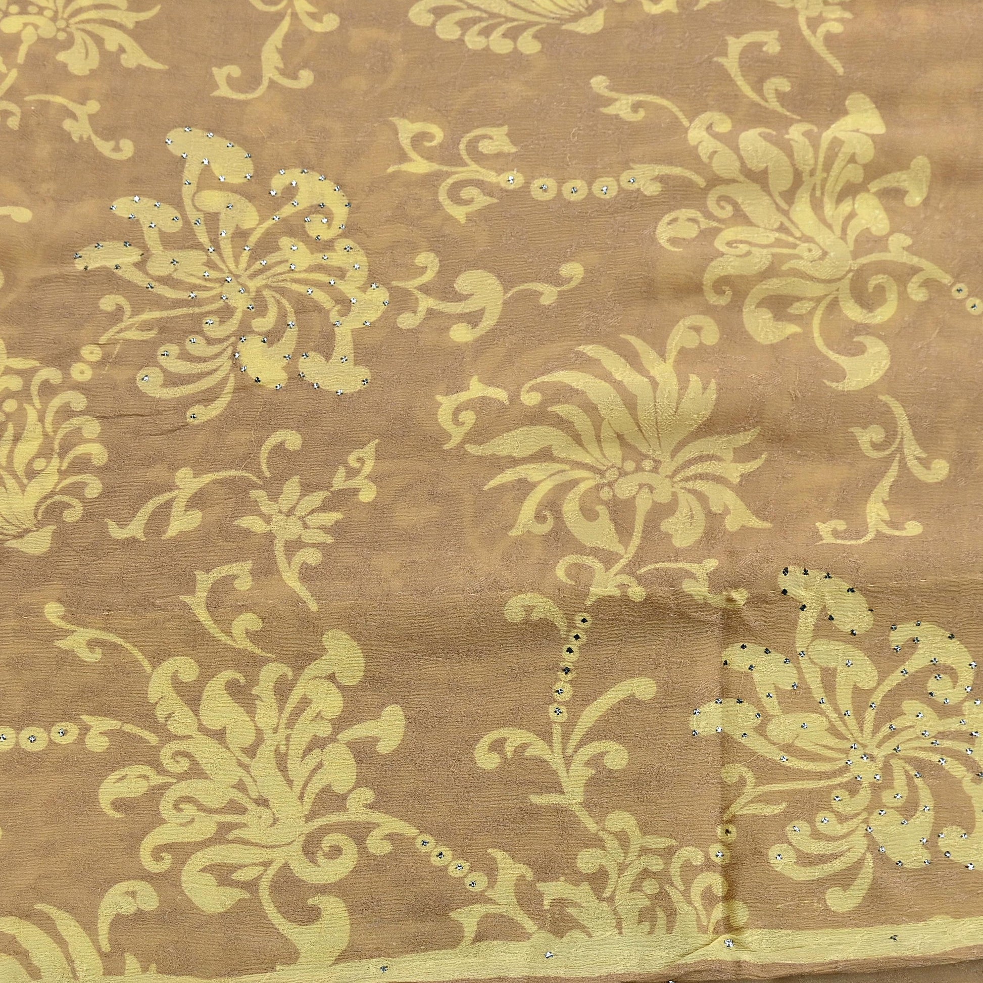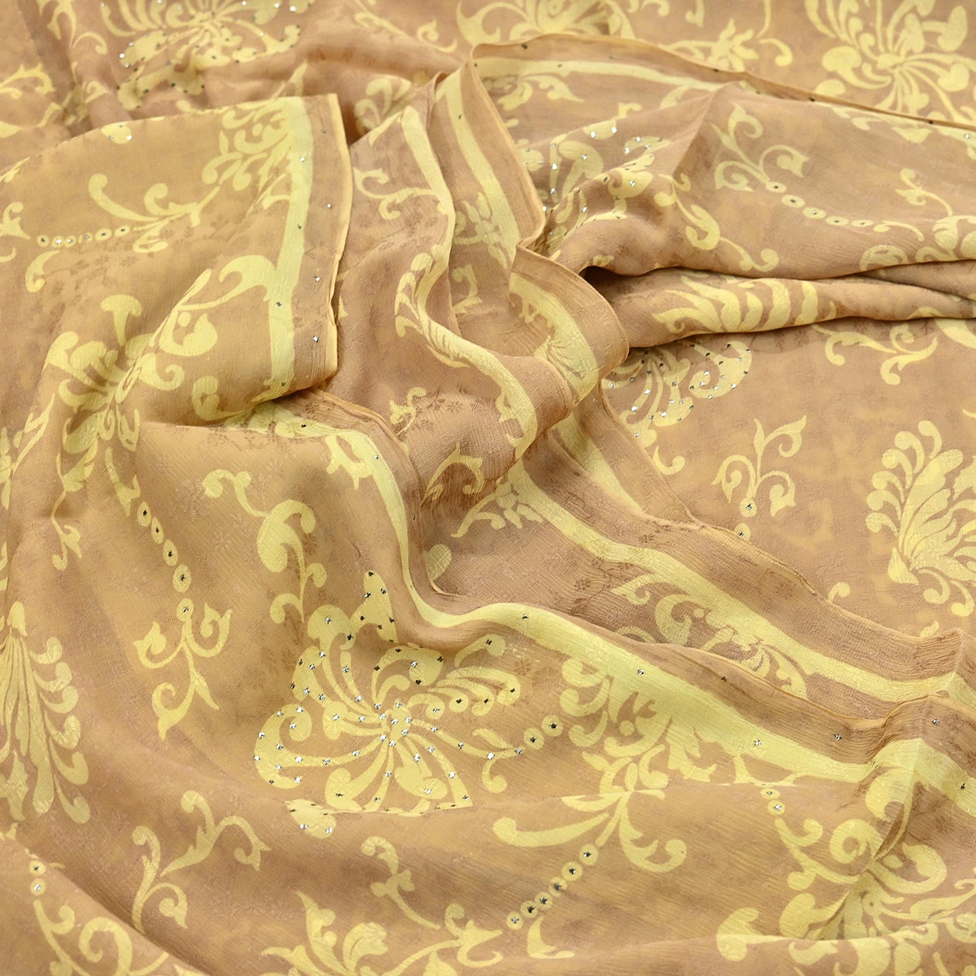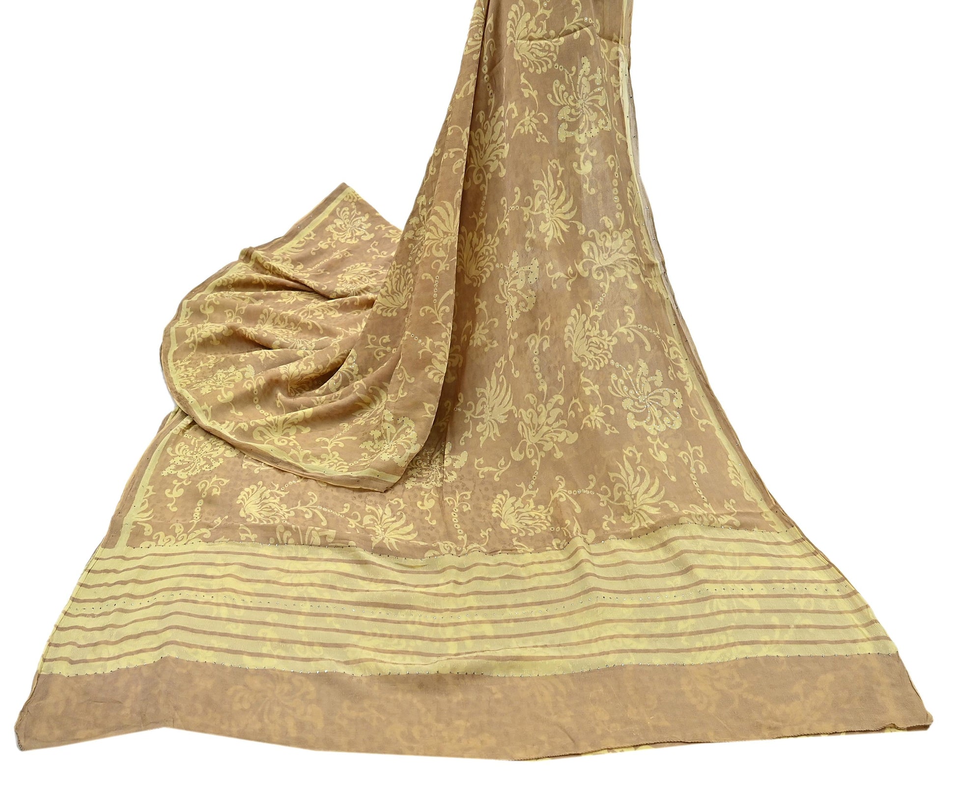 Indian Vintage Beige & yellow Saree Pure Georgette Silk Hand Embroidered Mukesh Sari Fabric 6Yard Sewing Soft Ethnic Sequins Paisley