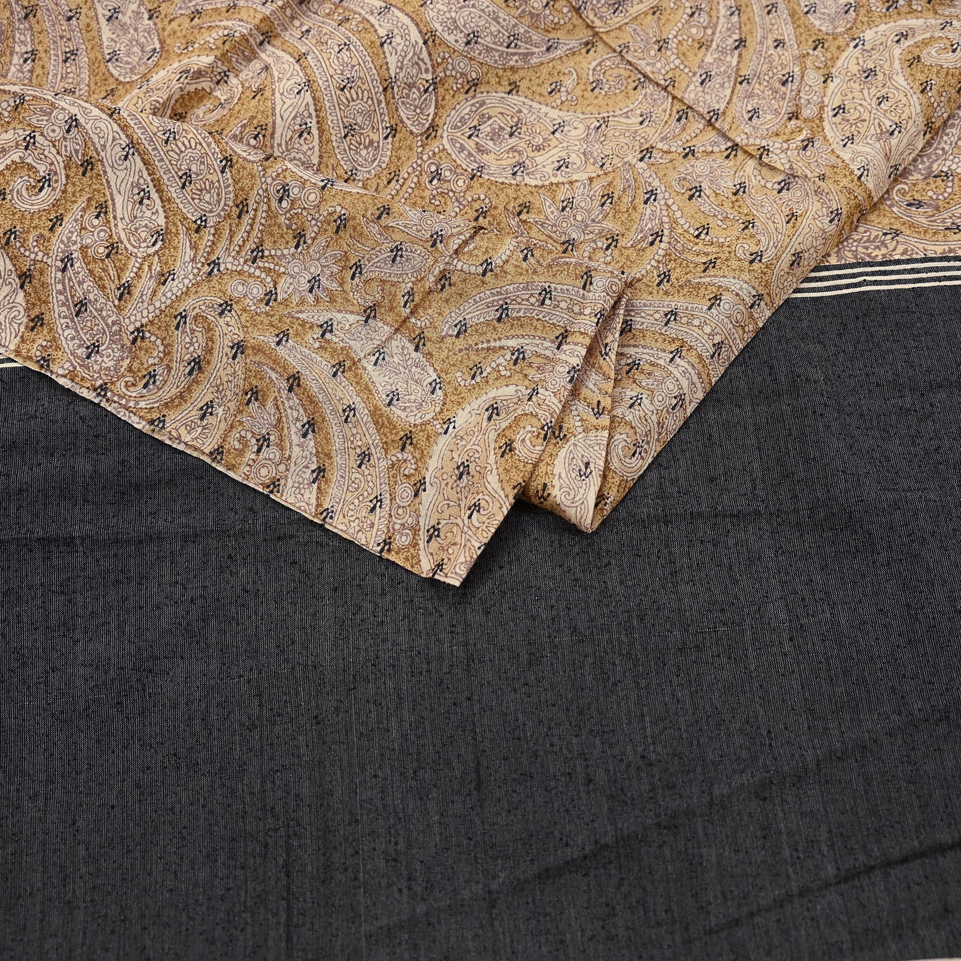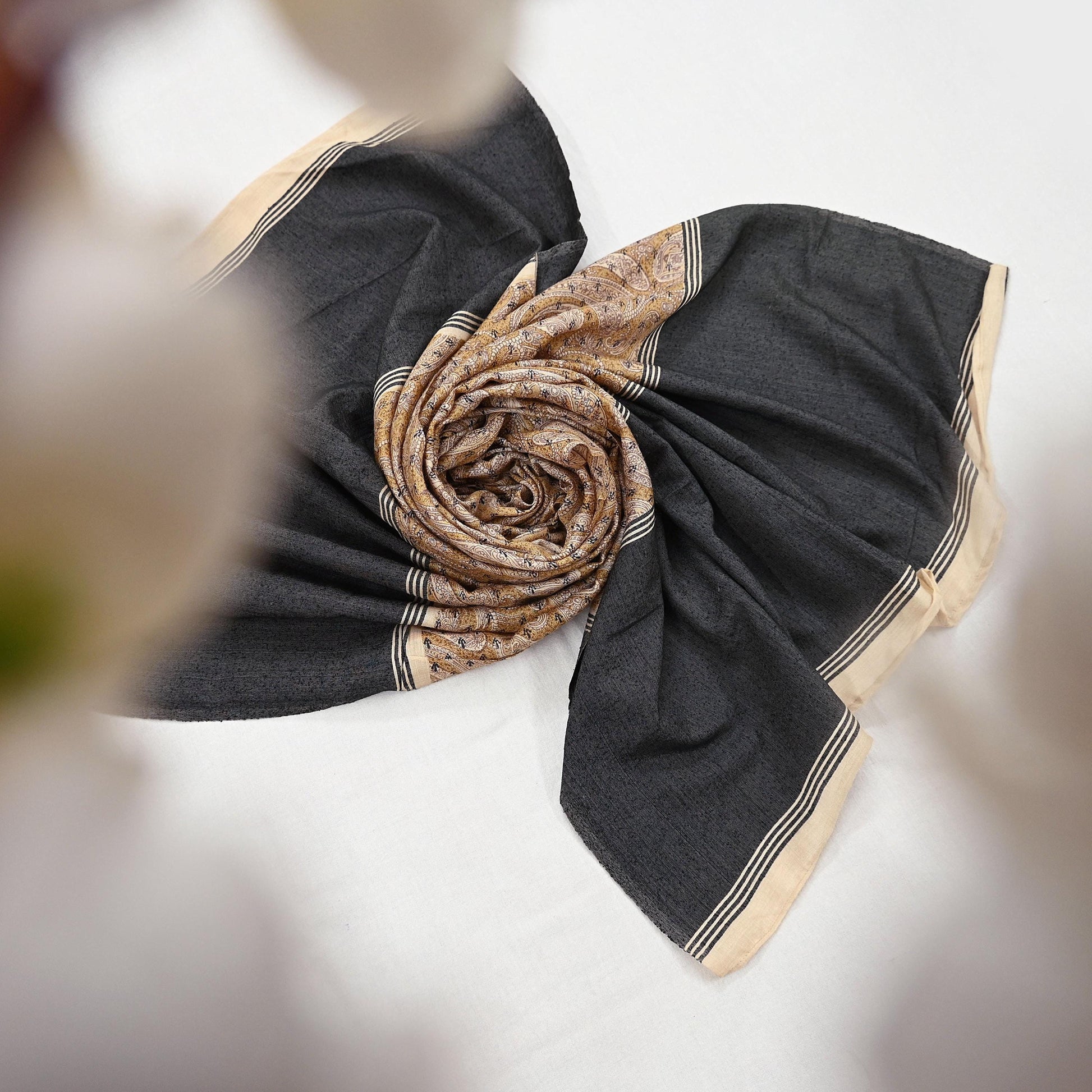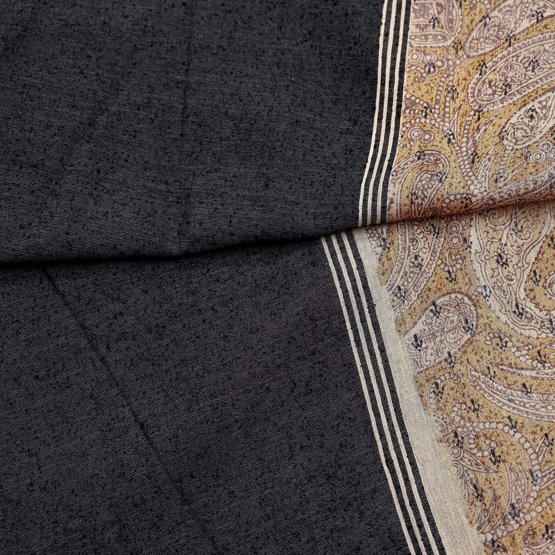 Elegant Black & beige Hand-Printed Pure Khadi Silk Dupatta | Paisley Design | Handloom Woven | Lightweight & Soft
