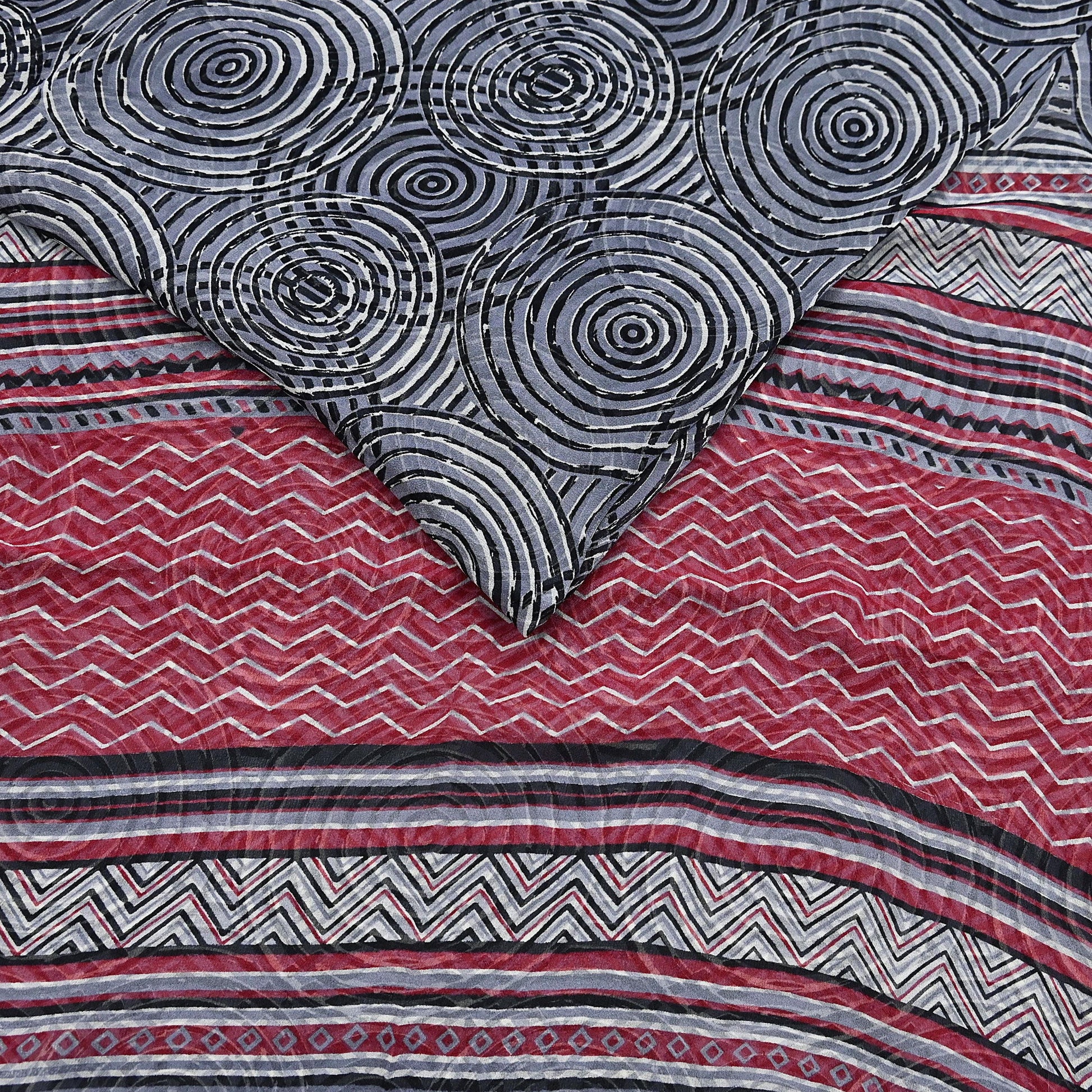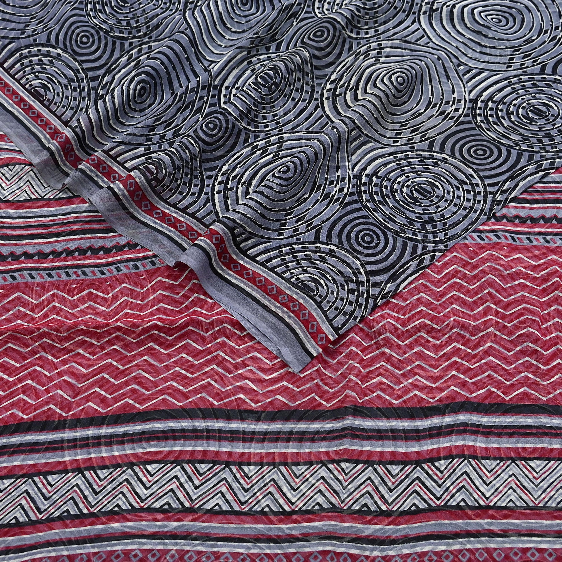 Nice Floral design with printed work on Black, white & Gray color base fabric is really enhancing the beauty of the saree.