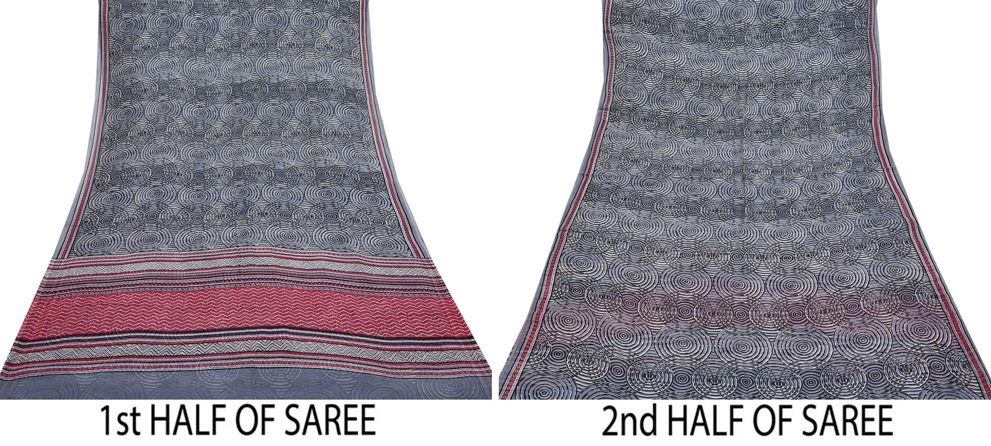 Indian Vintage Black & Gray Saree 100% Pure Georgette Silk Printed Sari Sewing 6yd Craft Fabric Dress Designing for Dress making