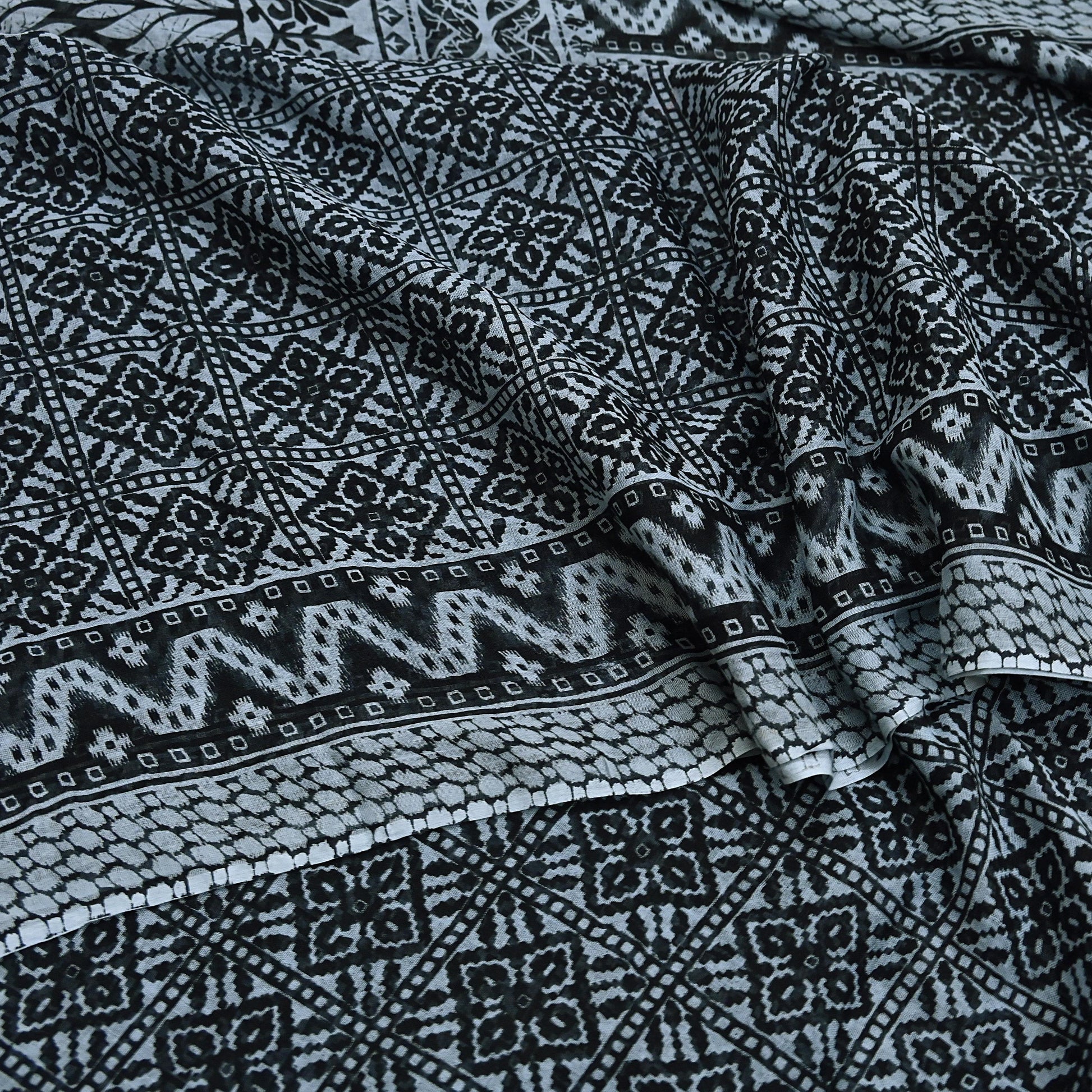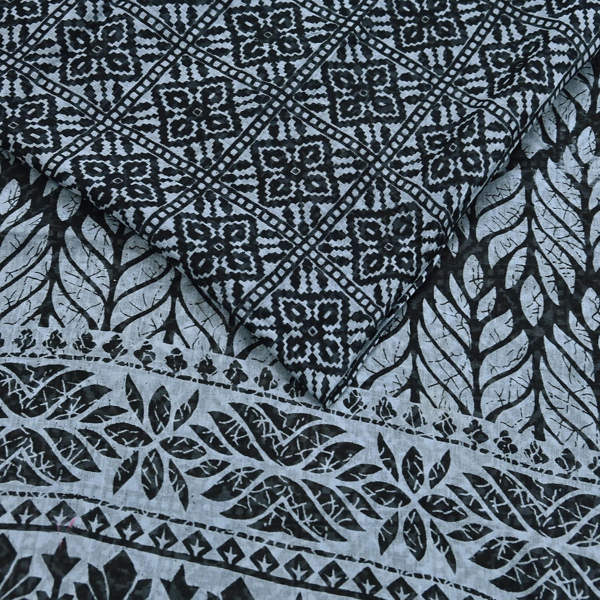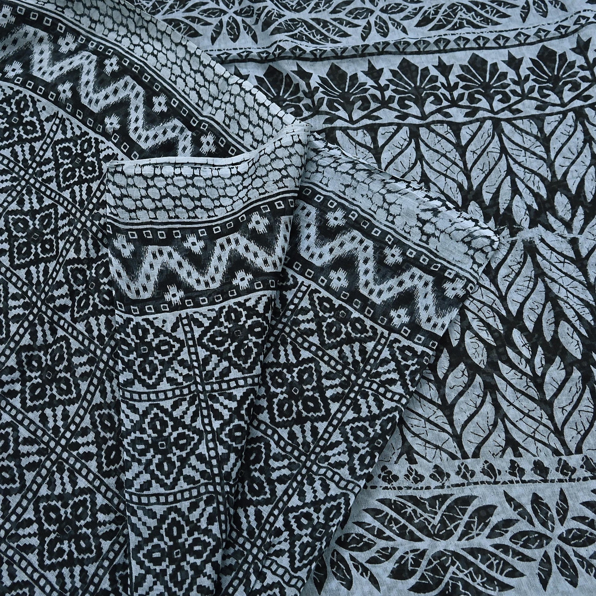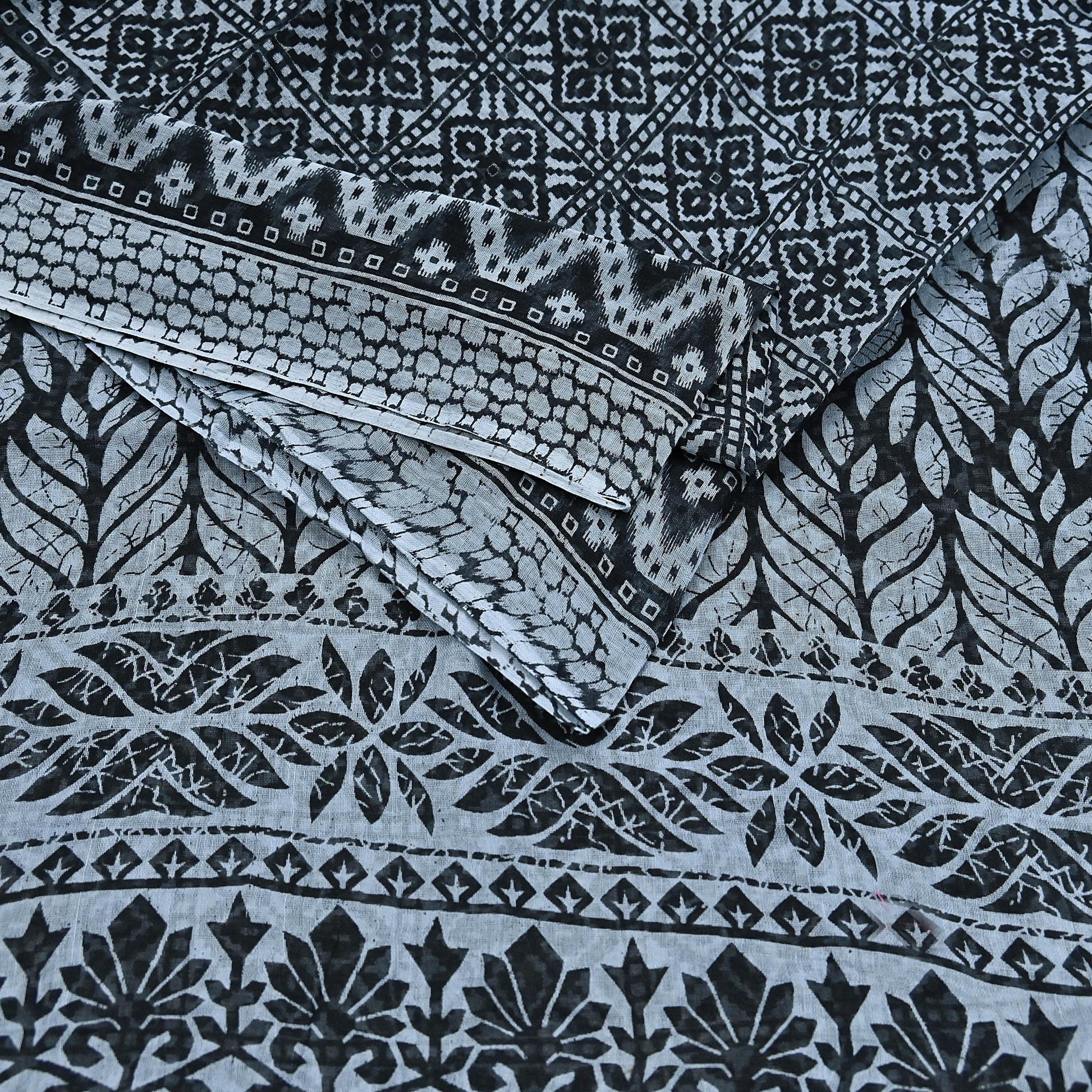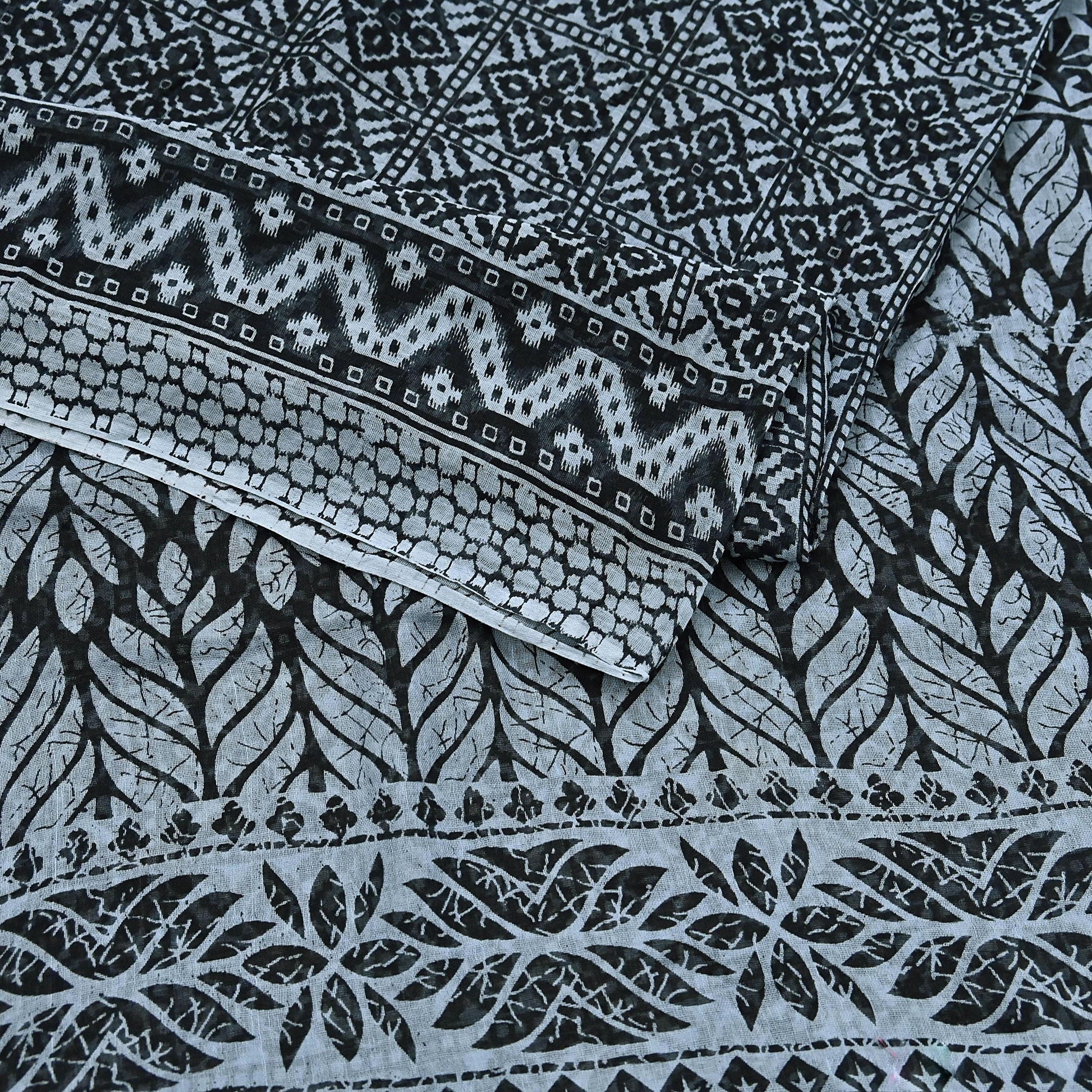 Indian Vintage Black & Gray Saree Printed Pure Cotton Indian Sari Craft Fabric 5Yd Sewing Soft Sarong Wrap Boho Floral Quilting Crafting