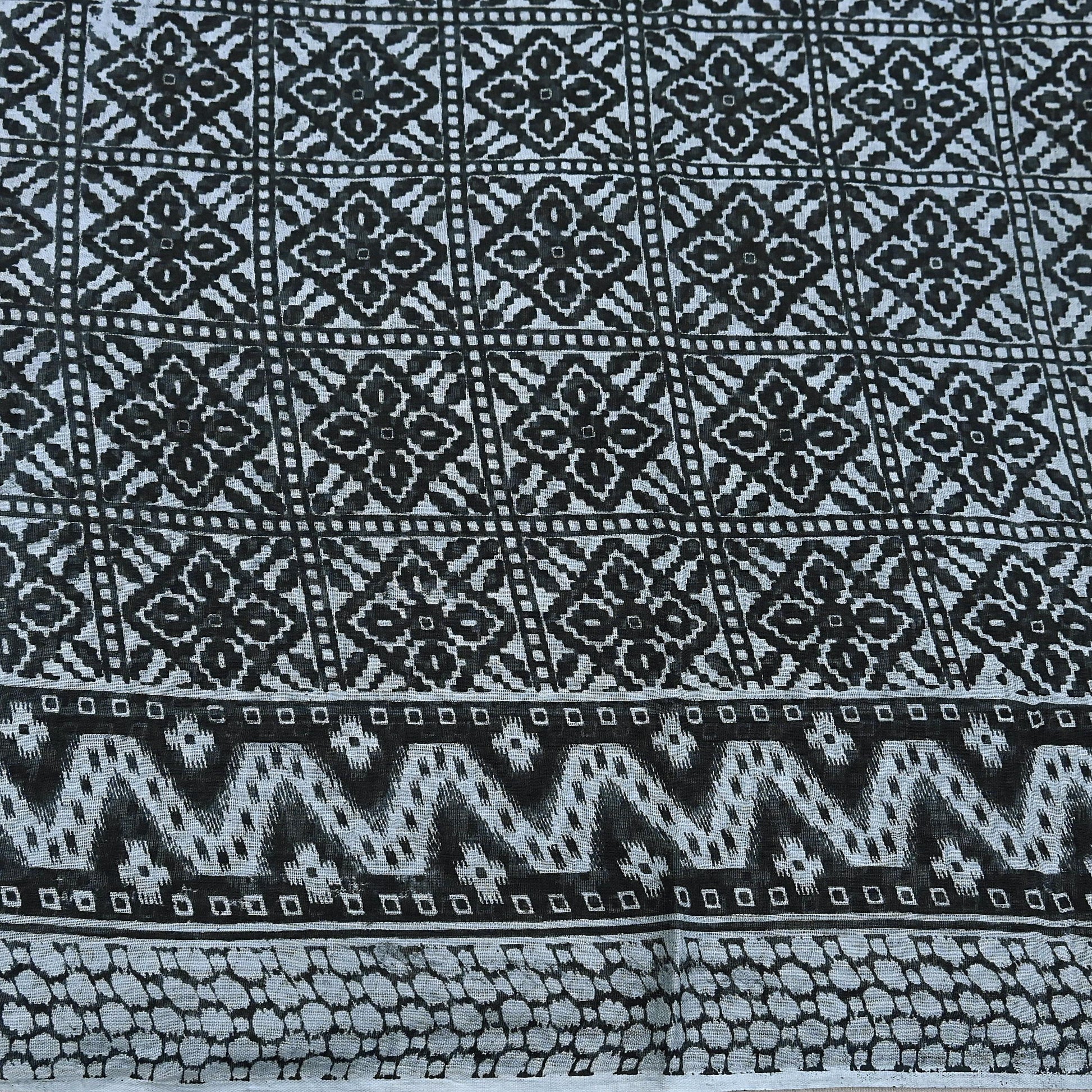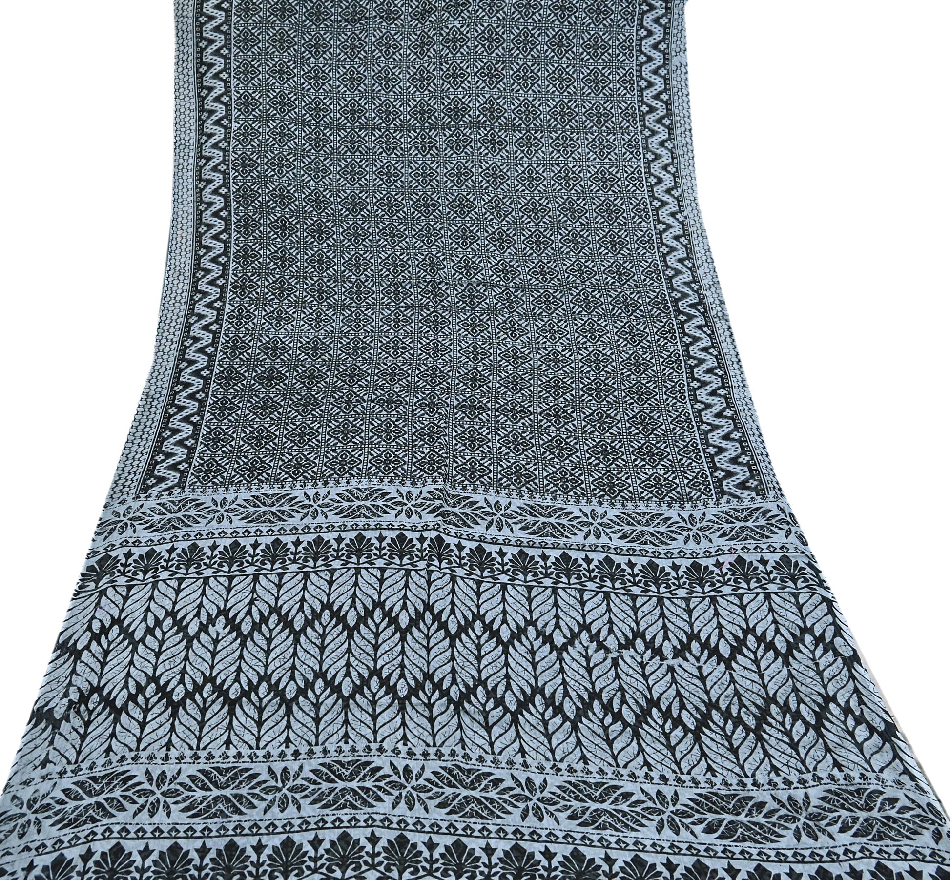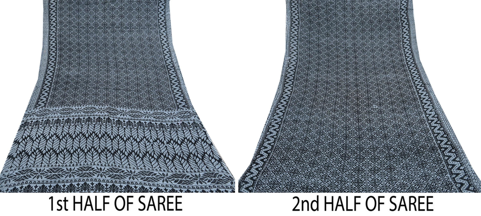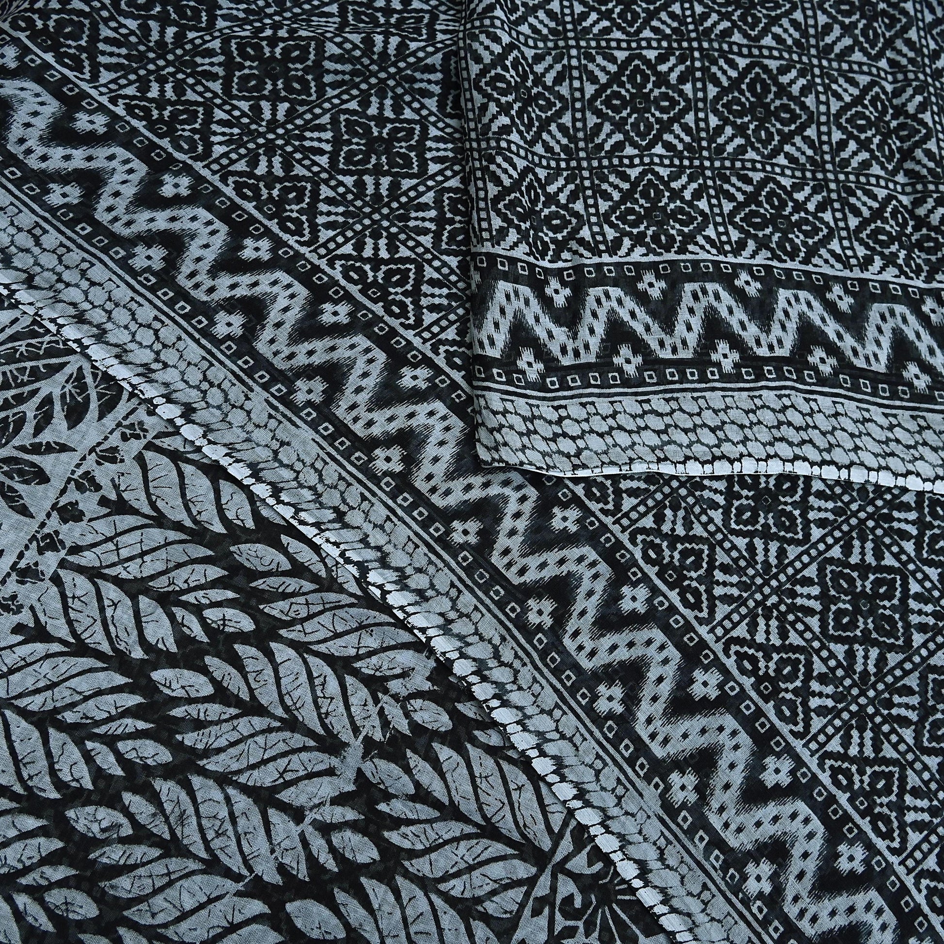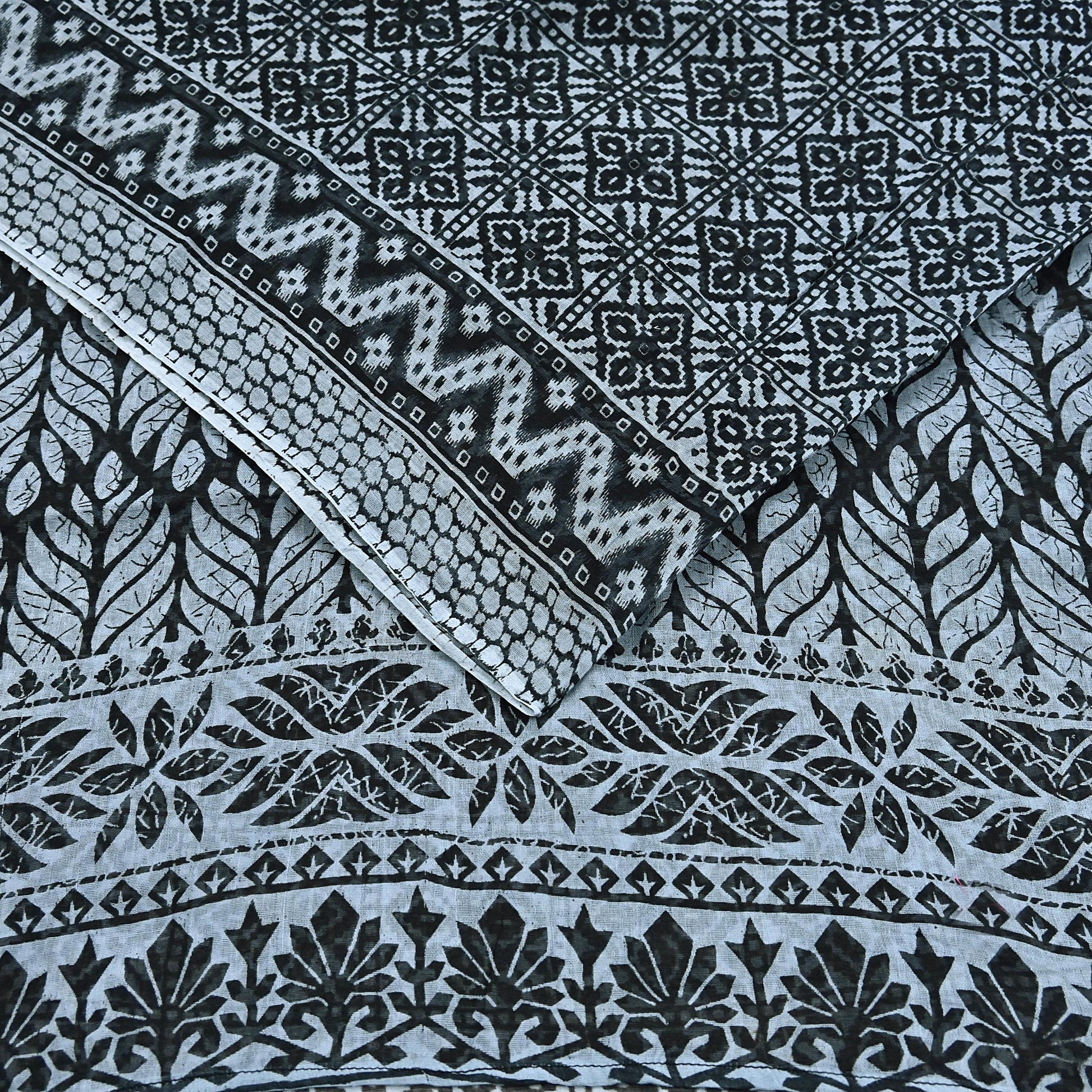 Indian Vintage Black & Gray Saree Printed Pure Cotton Indian Sari Craft Fabric 5Yd Sewing Soft Sarong Wrap Boho Floral Quilting Crafting