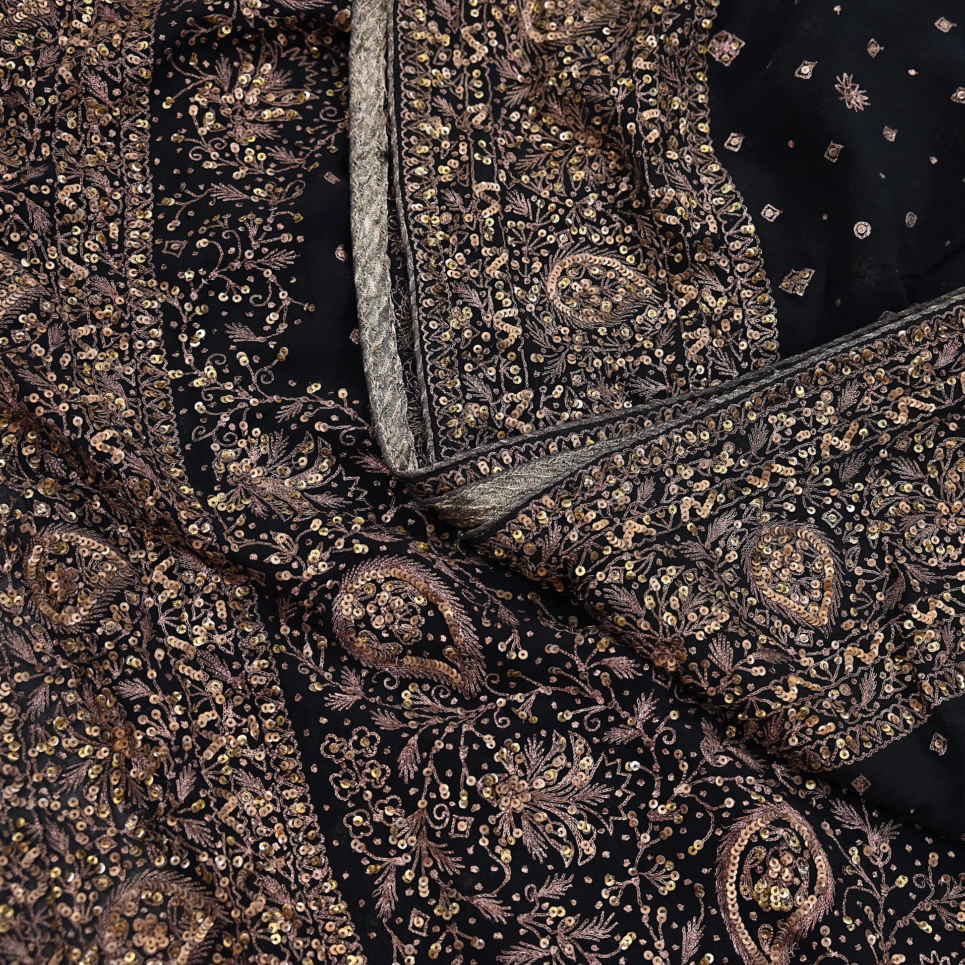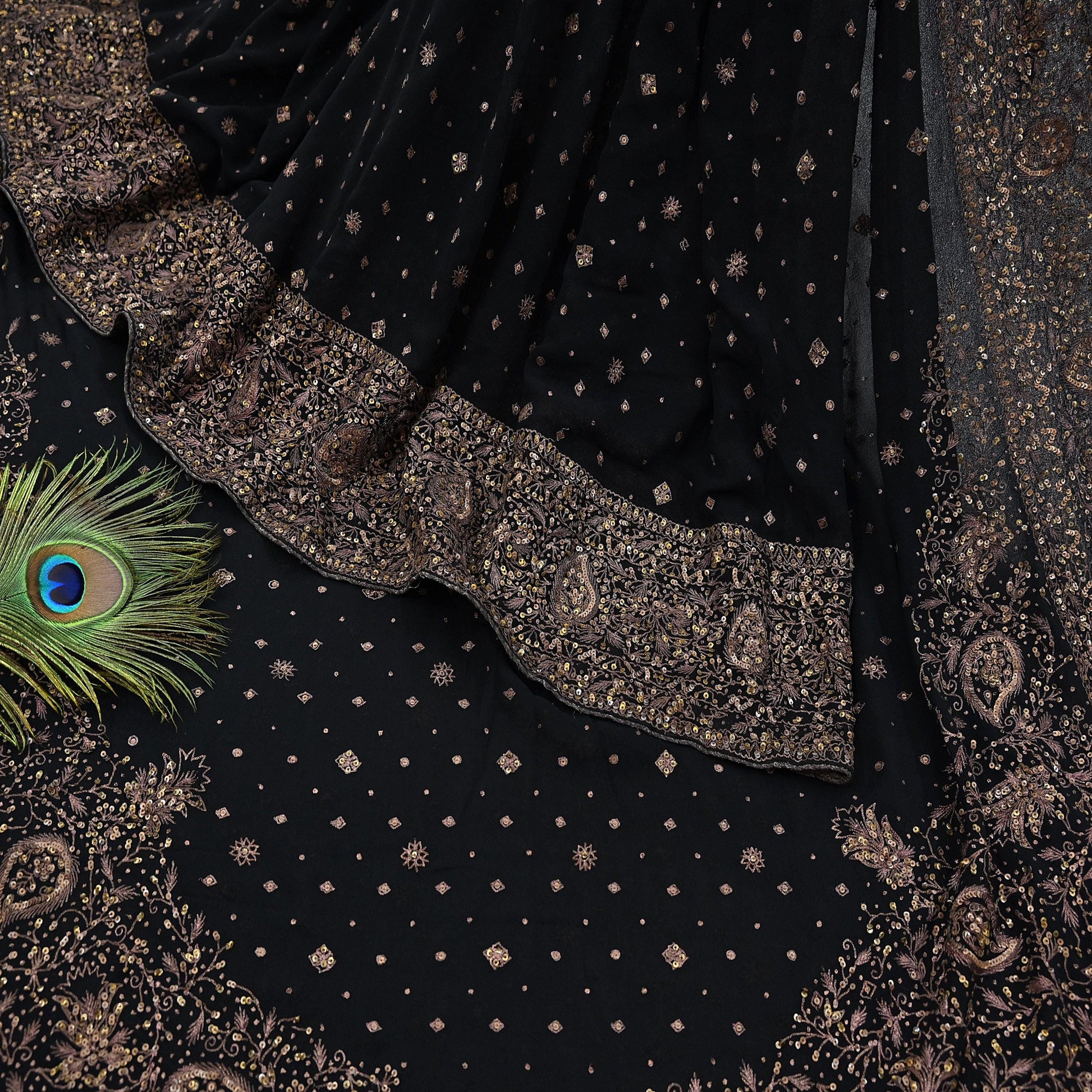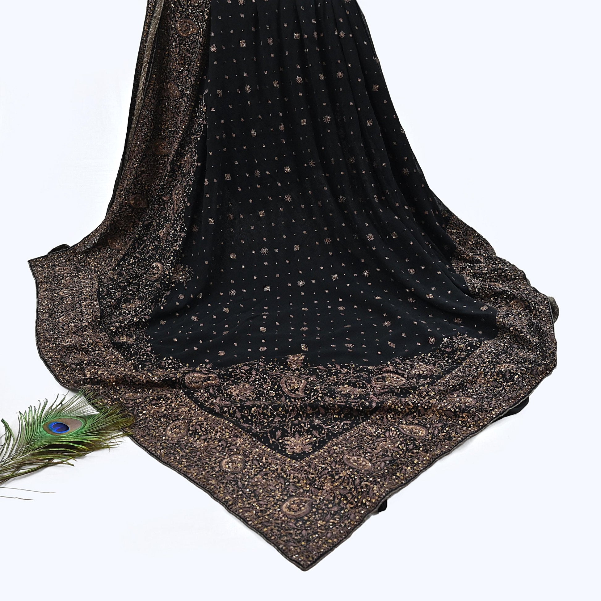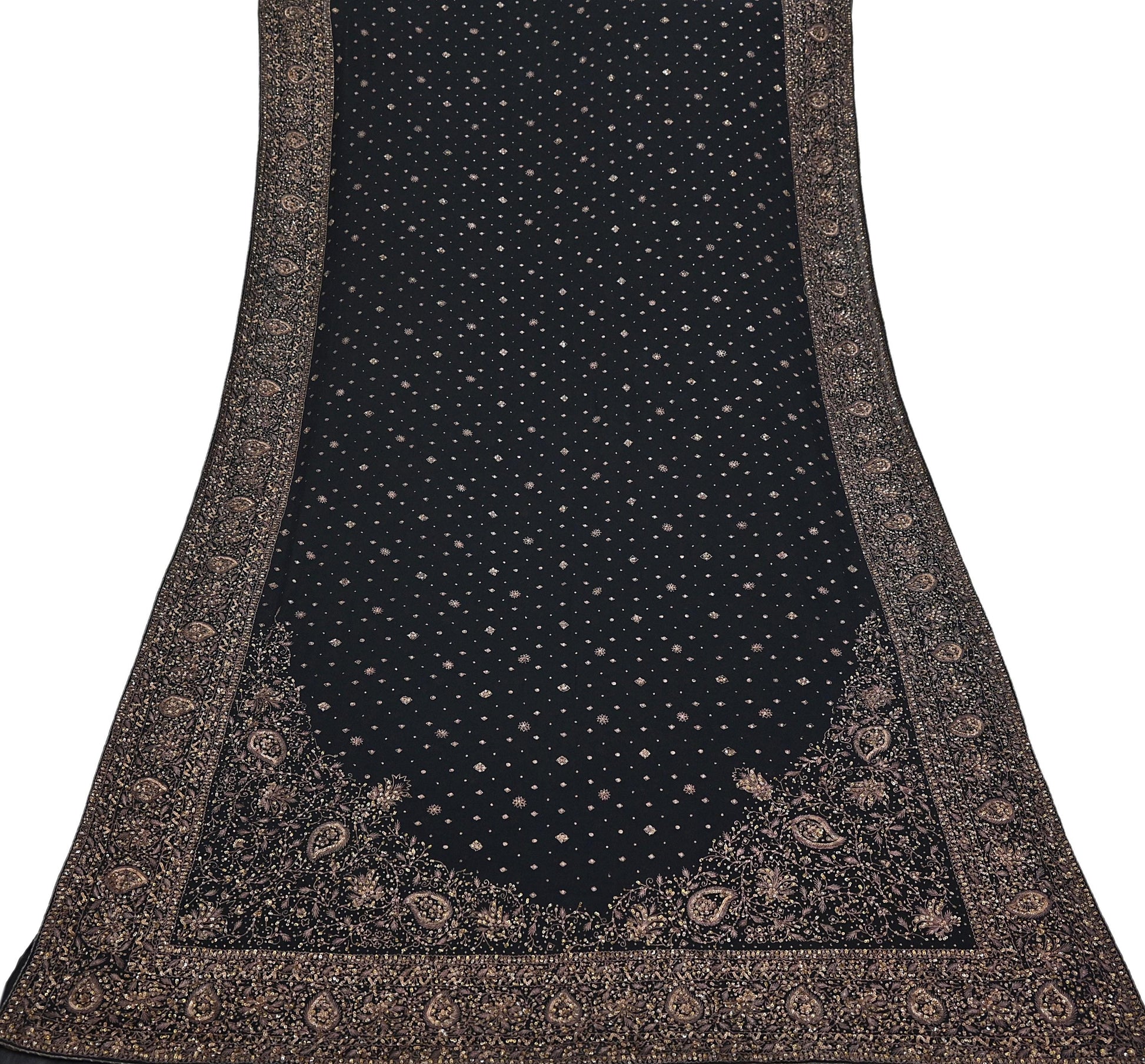 Indian Vintage Black Saree Pure Georgette Silk Pre-owned Hand Beaded Ritu Kumar Designer Sari Fabric 5Yd Soft Ethnic Bollywood Party sarees
