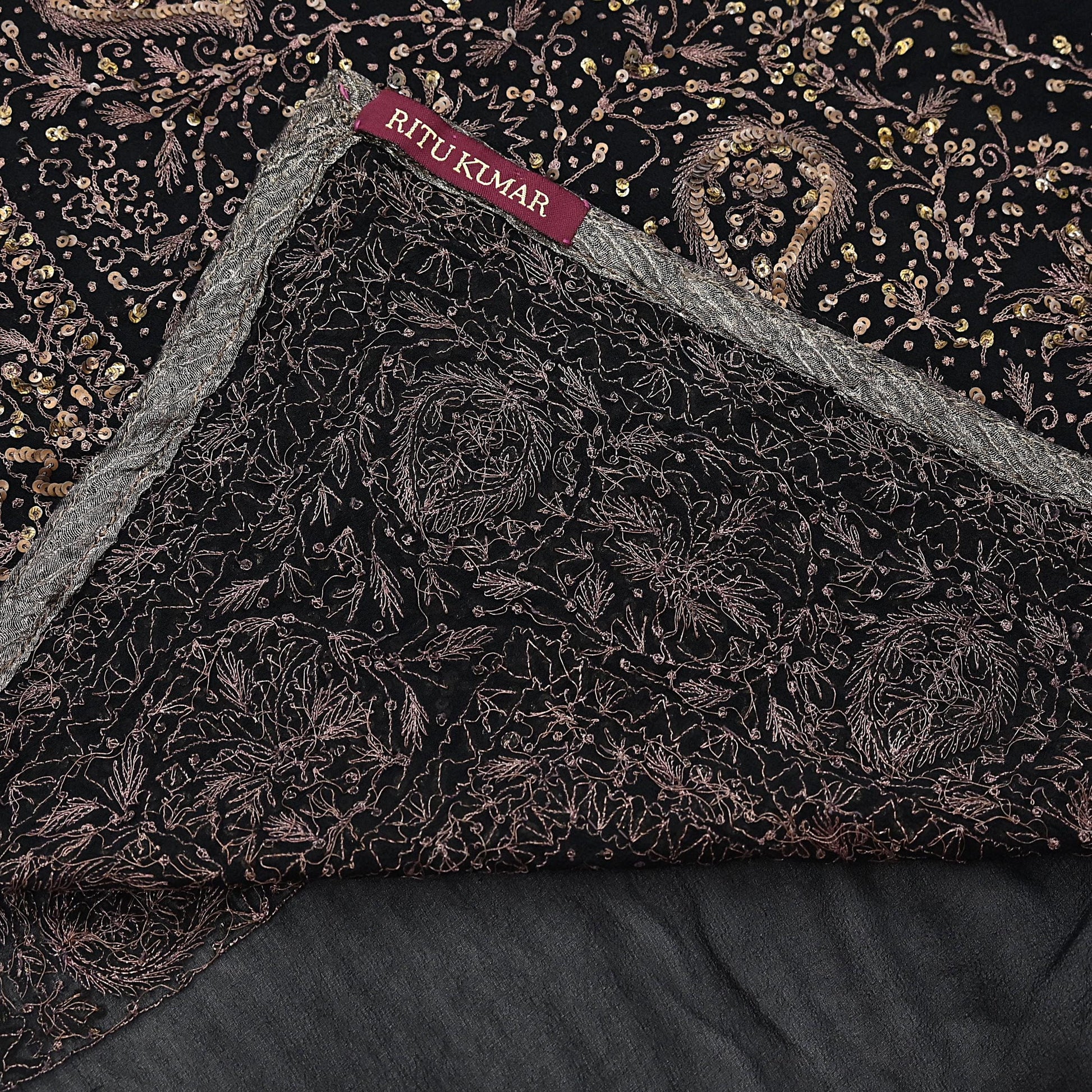 *Awesome Beautiful Black Colored Ritu Kumar Designer Hand Embroidered Pure Georgette Silk Sari.