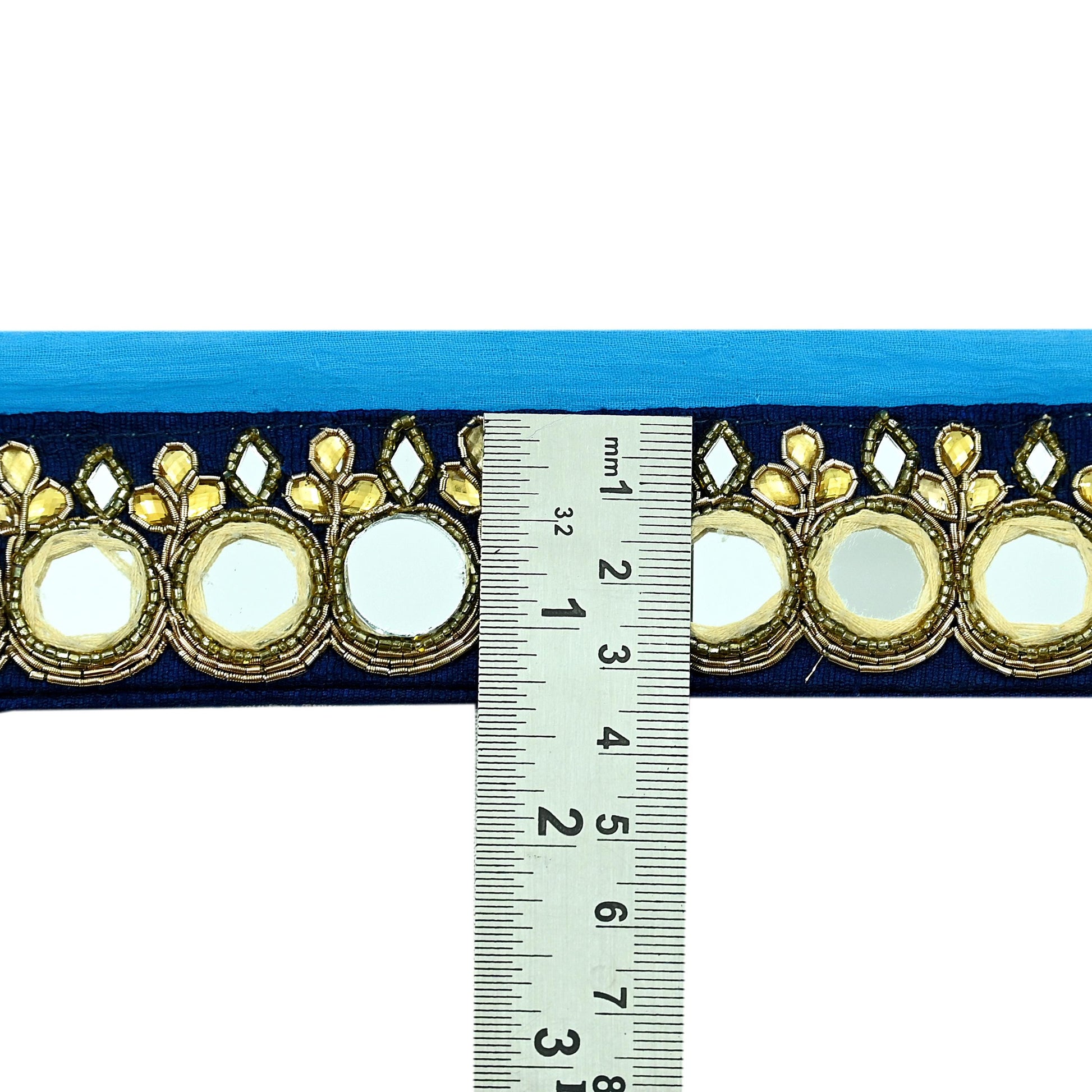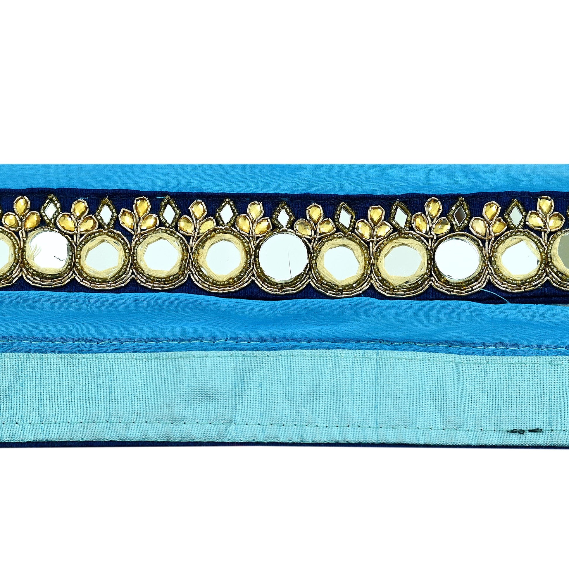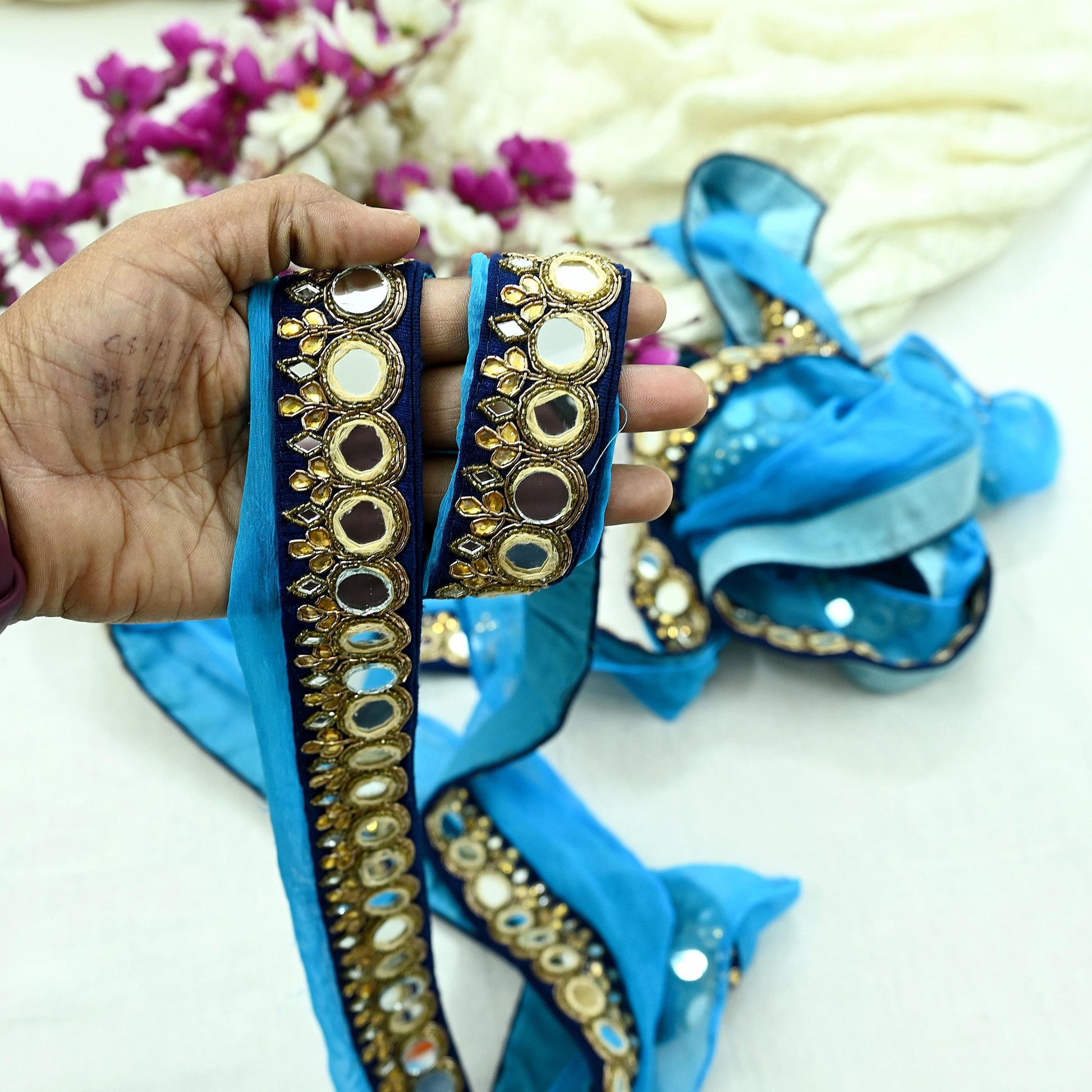 Indian Vintage Blue Border Pure Chiffon Silk Hand Embroidered 1Yd Craft Trim Lace Sewing Sari Ribbon Recycled Dress making Zardozi