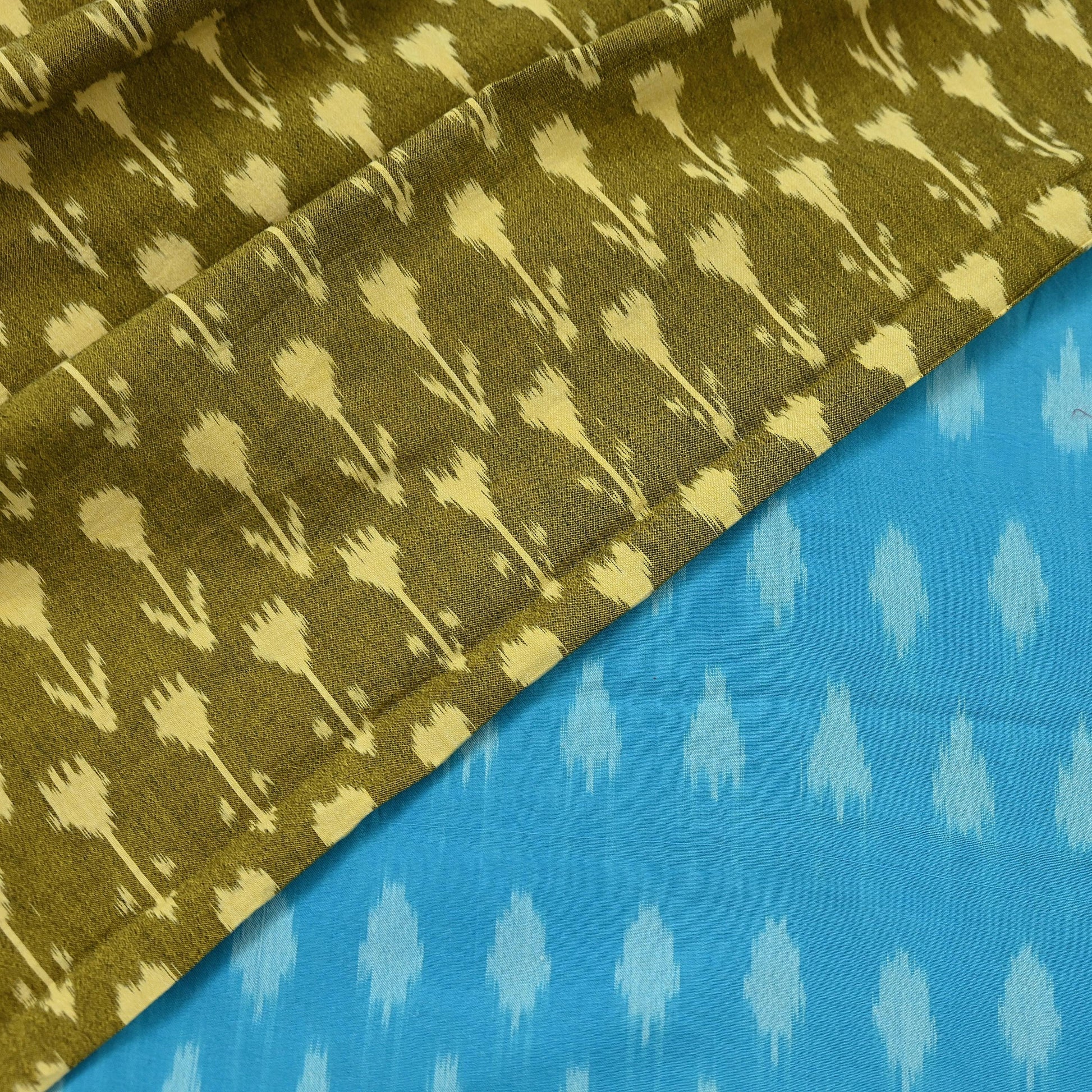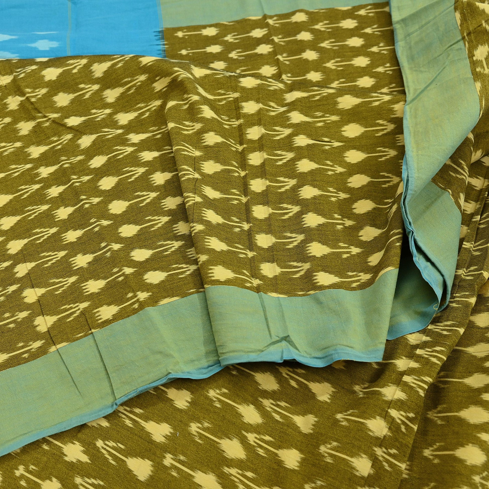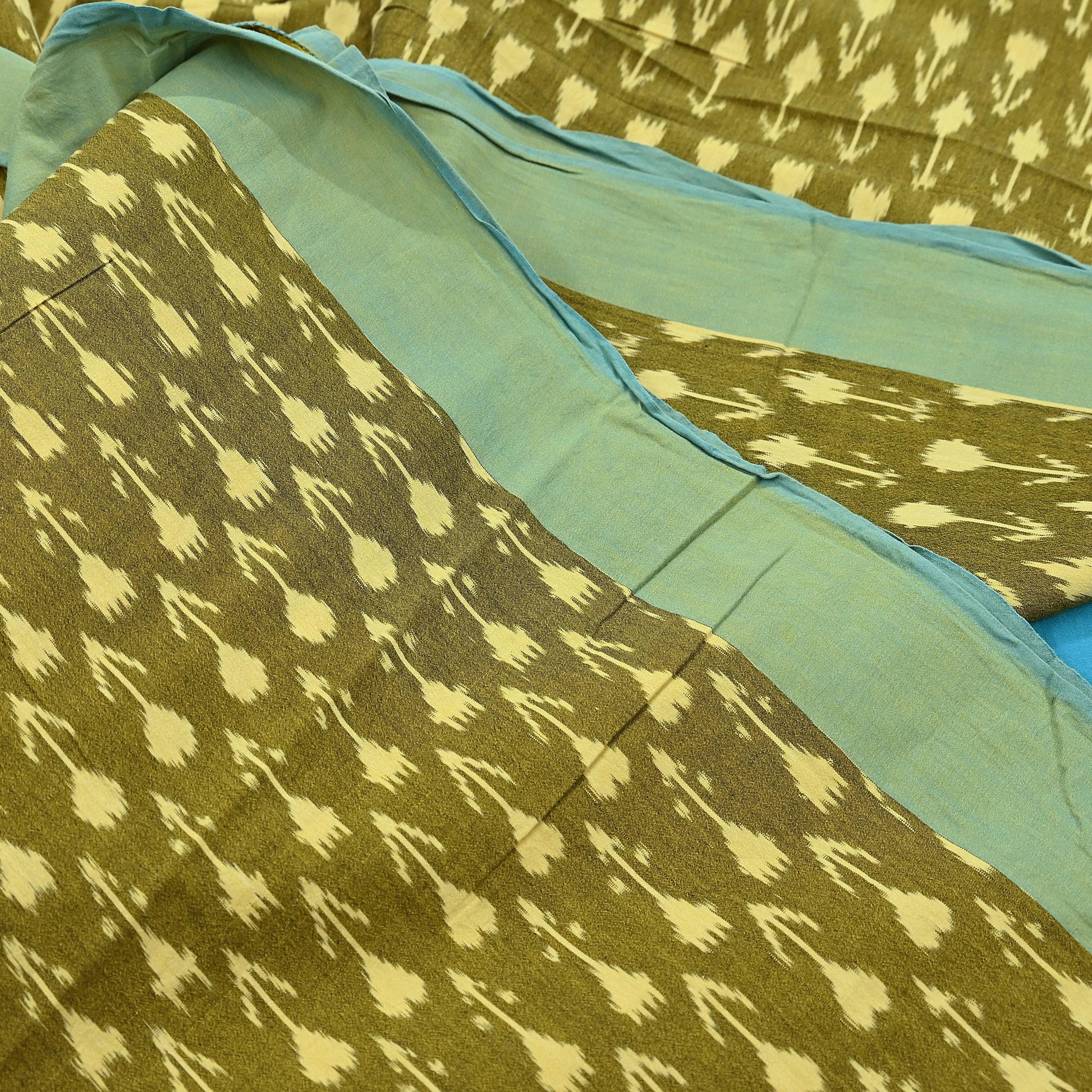 *Vintage Blue & Green Colored Ikat Printed Pure Cotton Saree.
