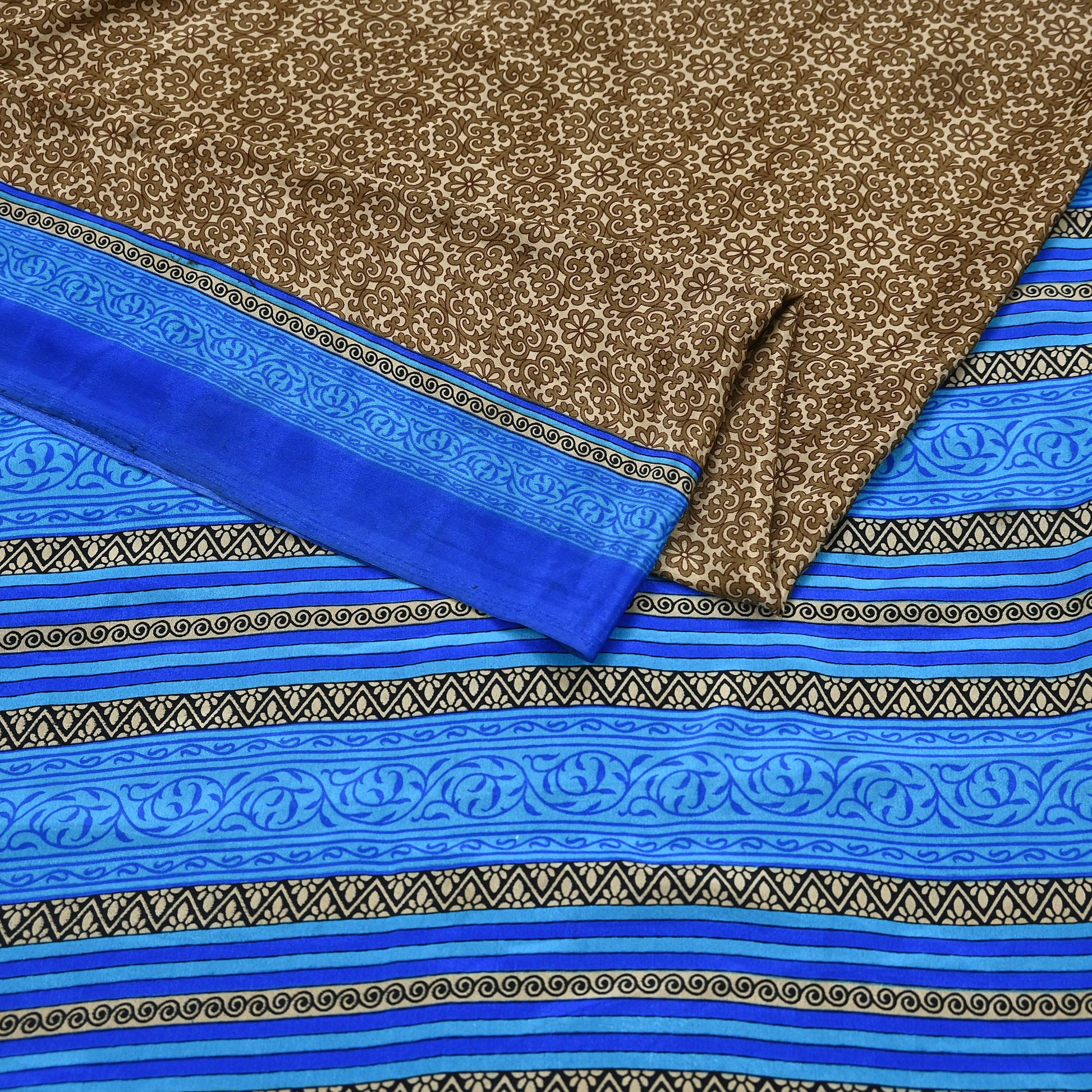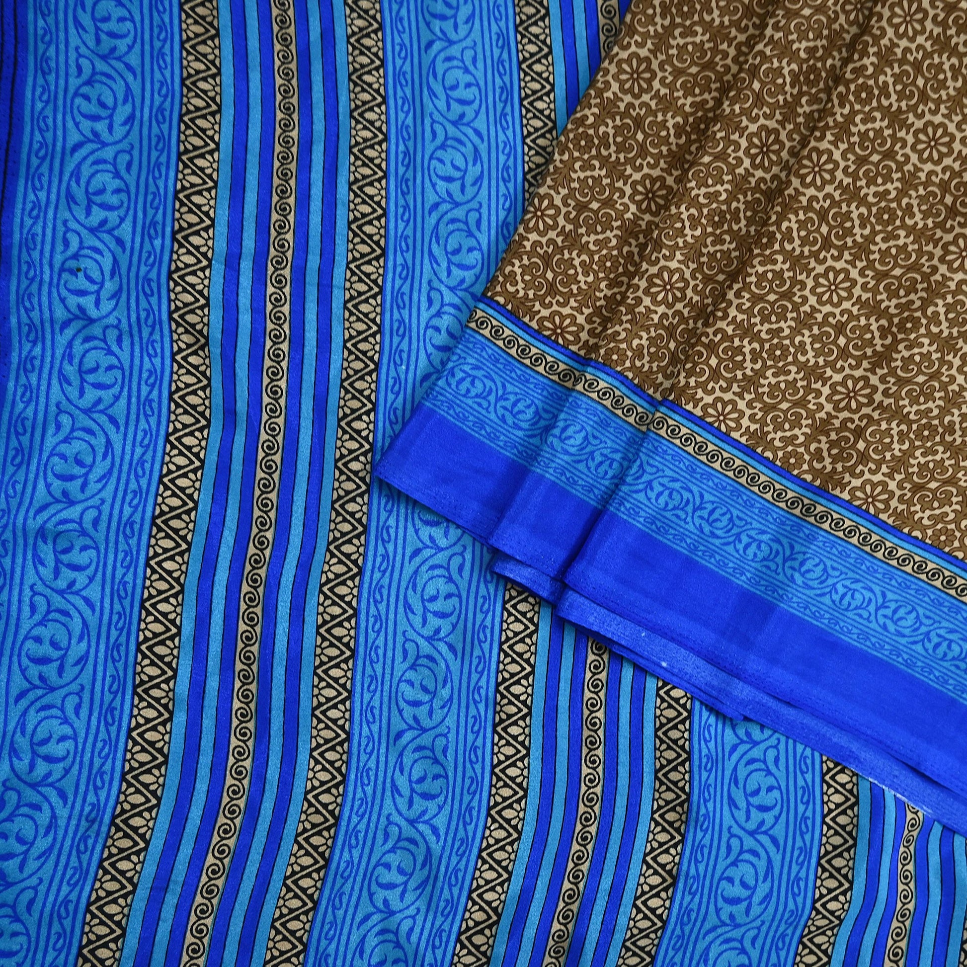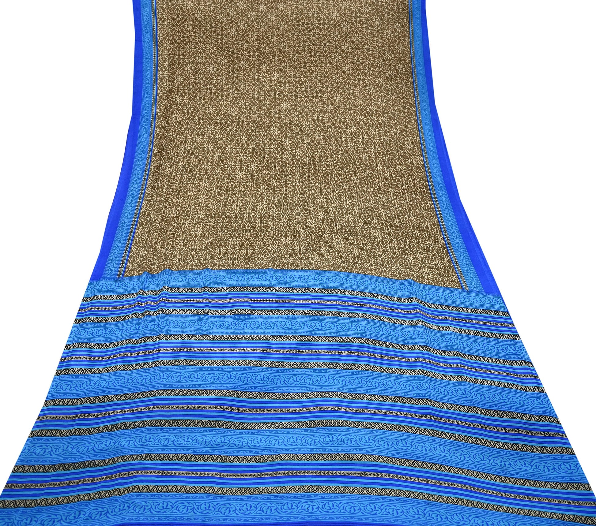Indian Vintage Blue & Green Sarees Moss Crepe Printed Sari 5yd Sewing Floral Soft Craft Fabric DressMaking For Crafting Quilting Upcycle
