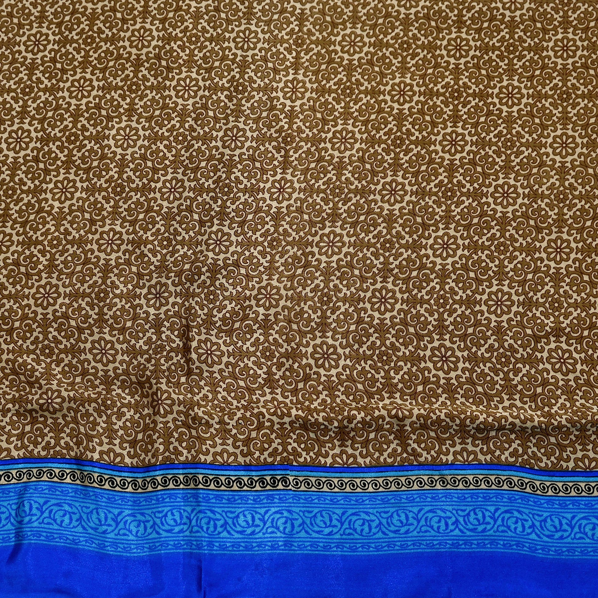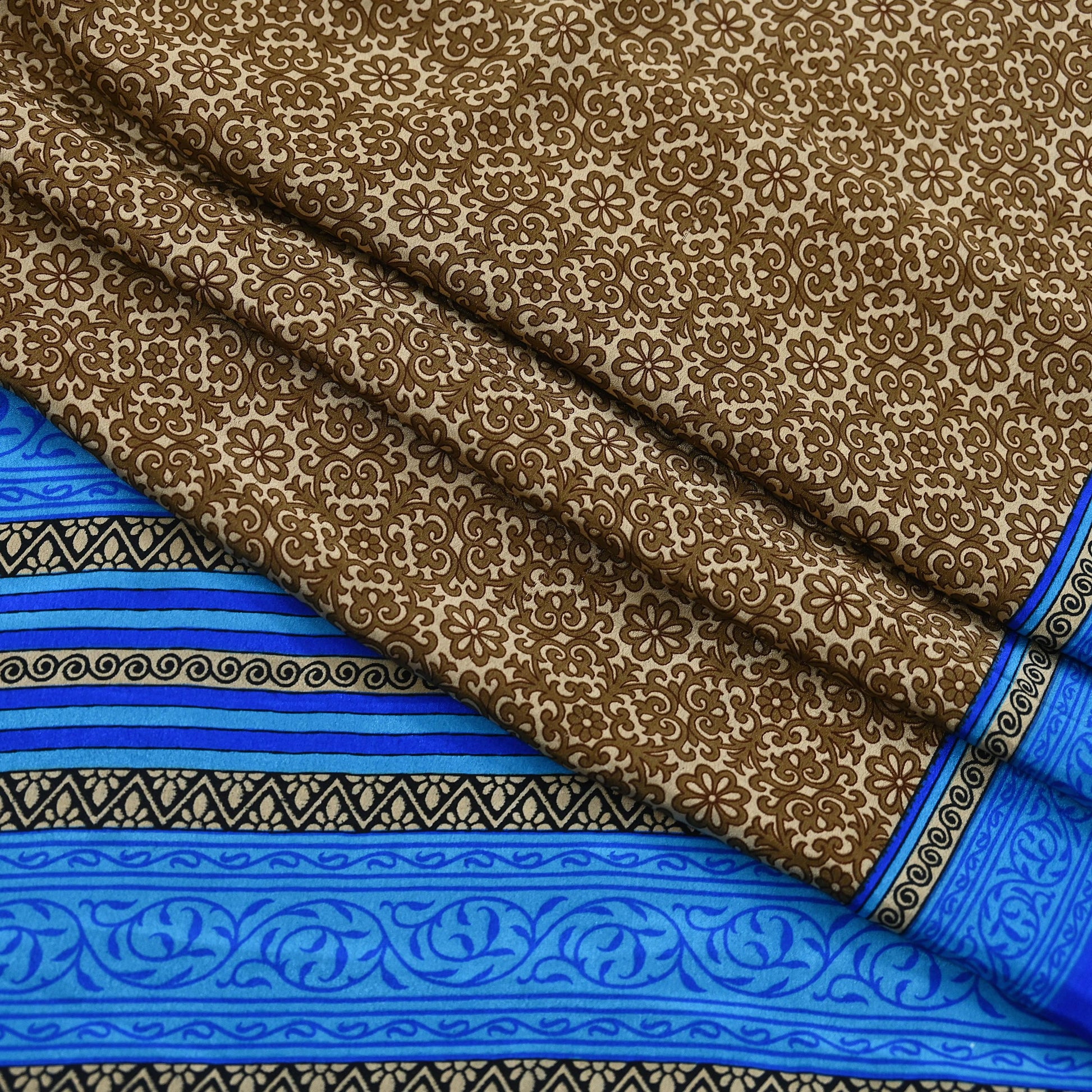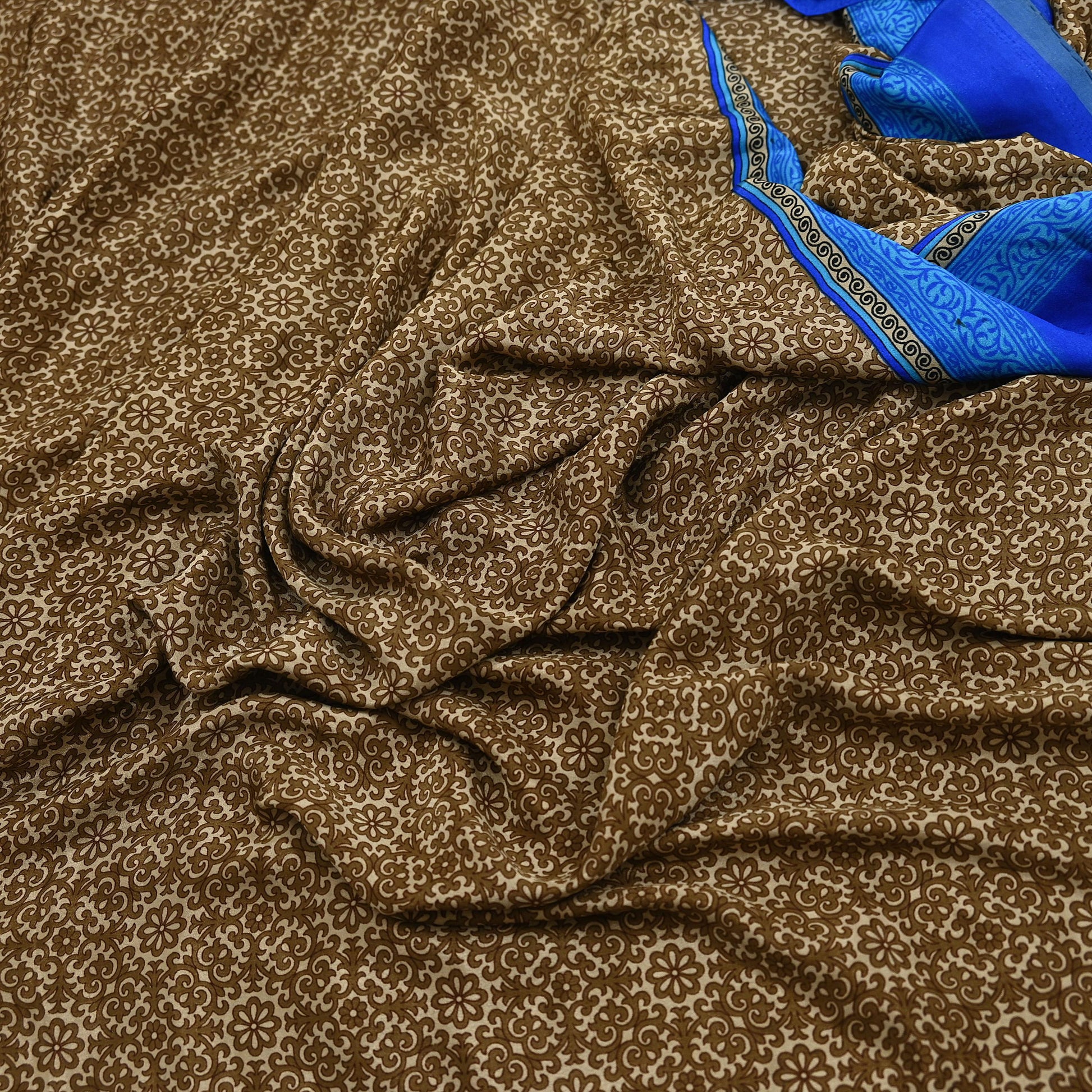 Indian Vintage Blue & Green Sarees Moss Crepe Printed Sari 5yd Sewing Floral Soft Craft Fabric DressMaking For Crafting Quilting Upcycle