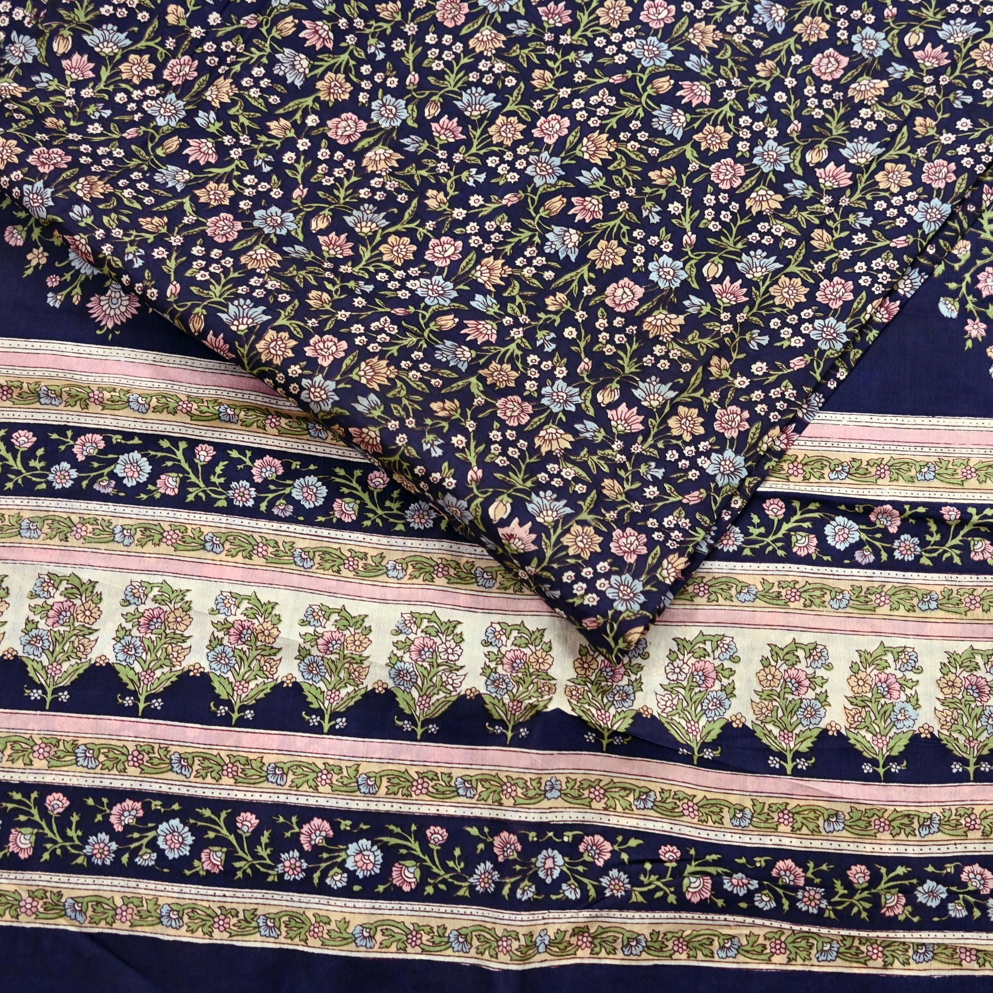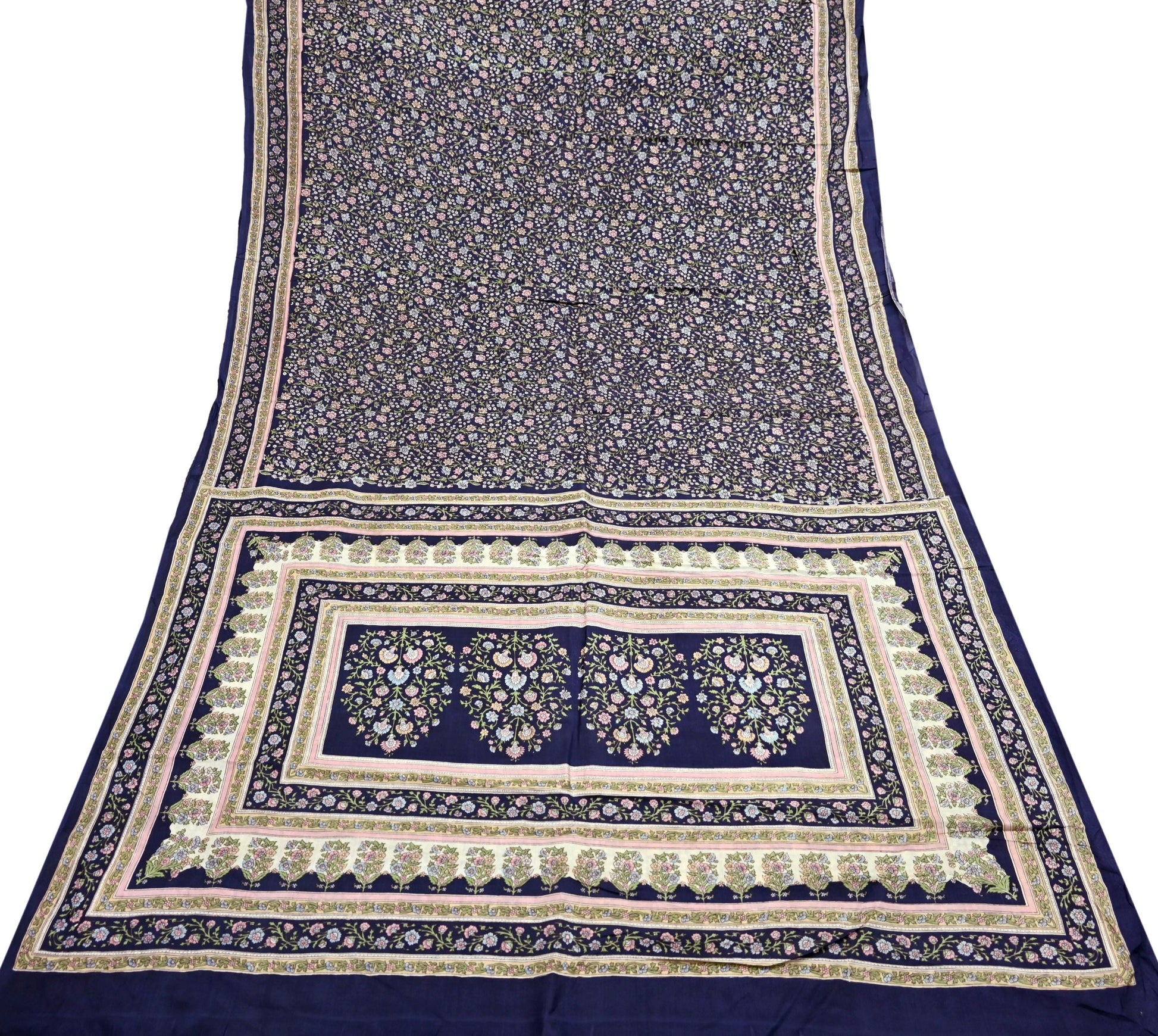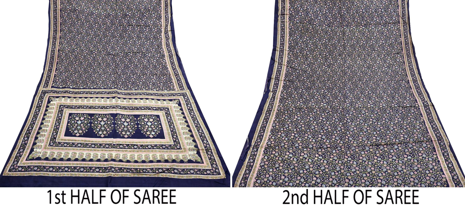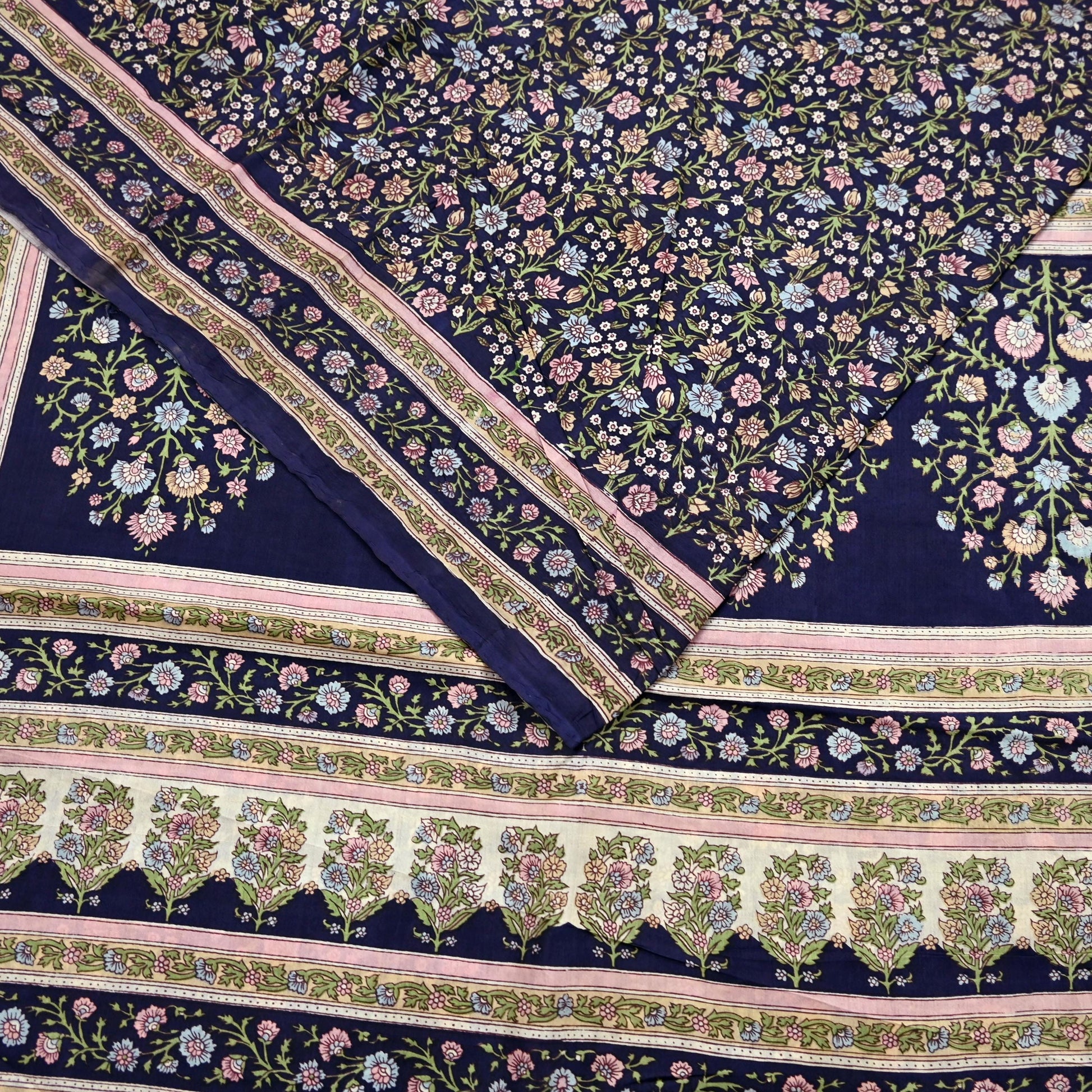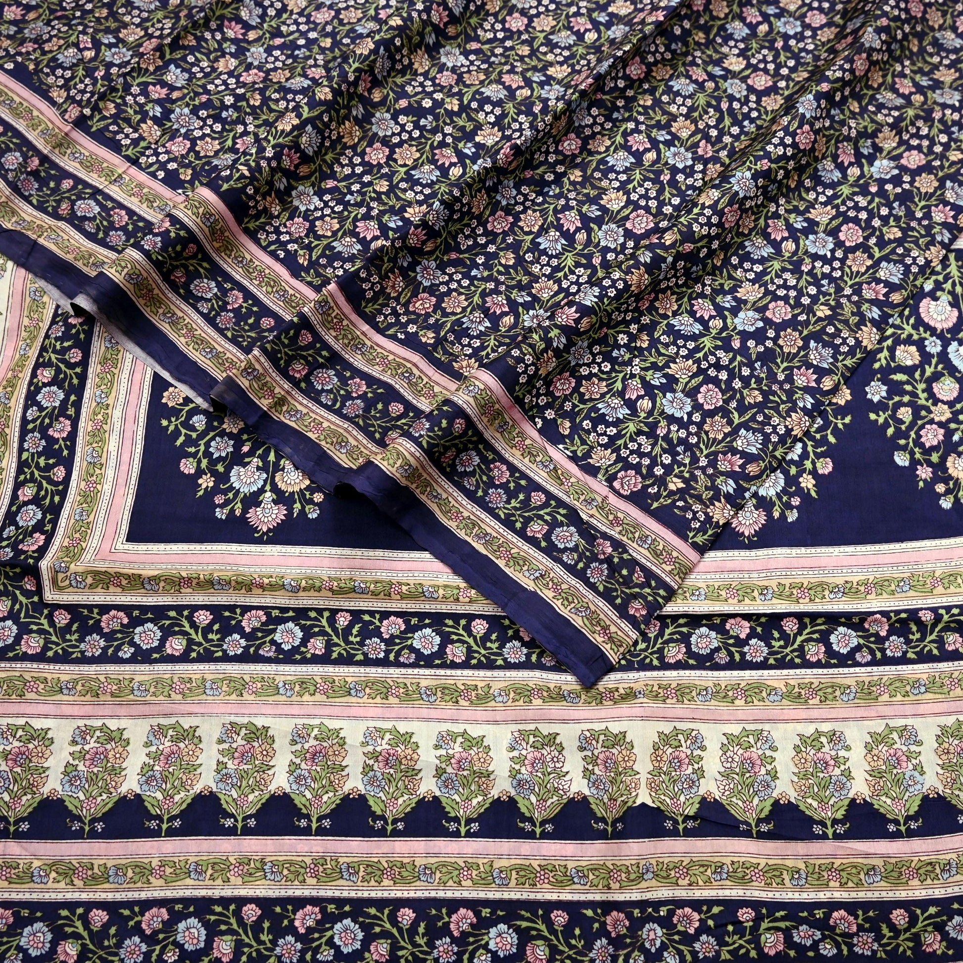 Indian Vintage Blue Pure Silk Printed Saree 5 Yards Soft Floral Fabric for Dressmaking, Quilting, Crafting, Sewing & Upcycling Dress Making