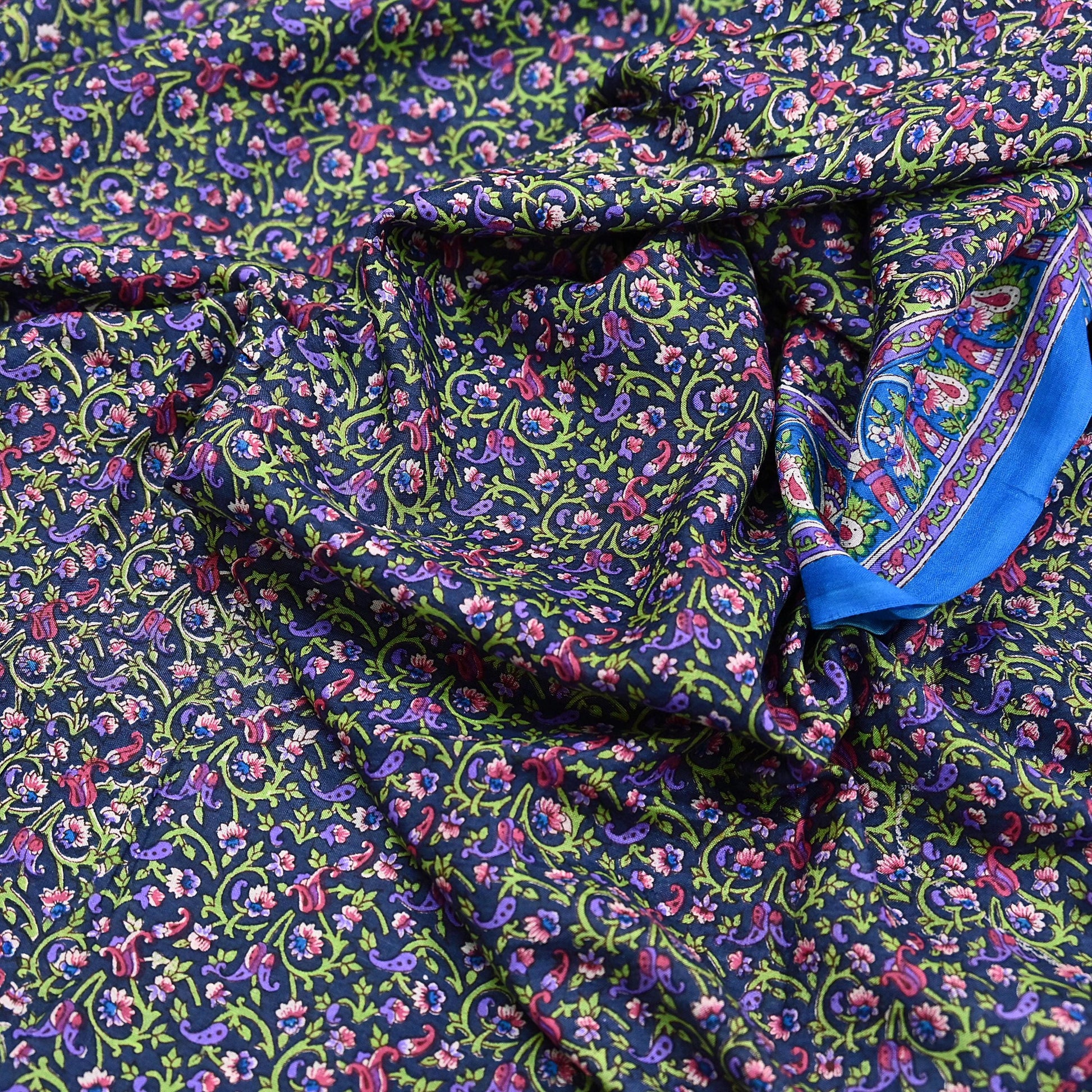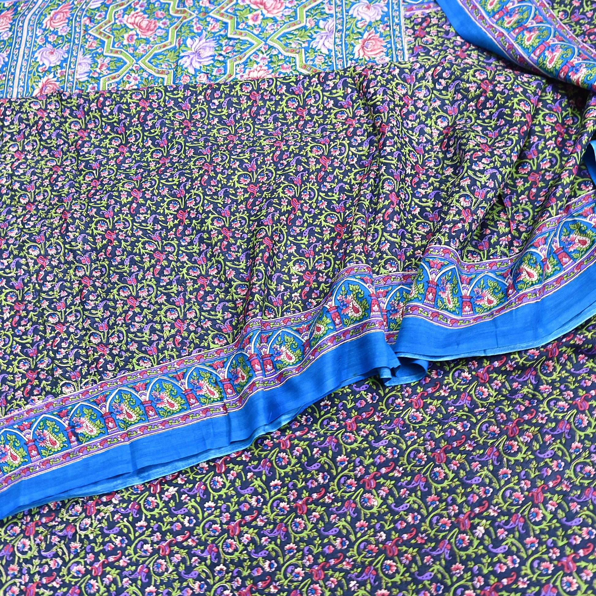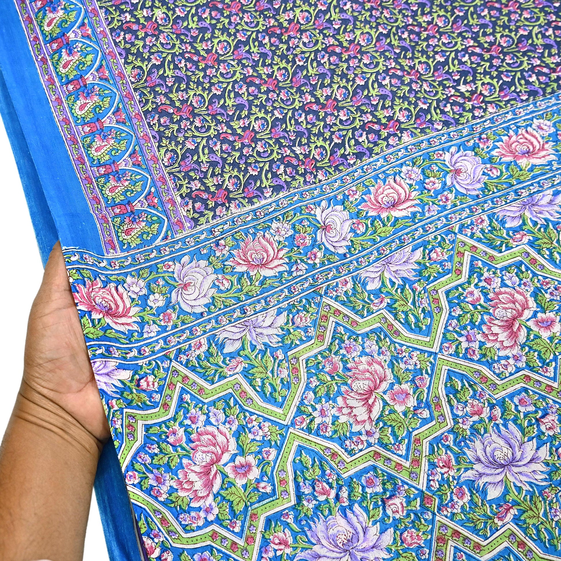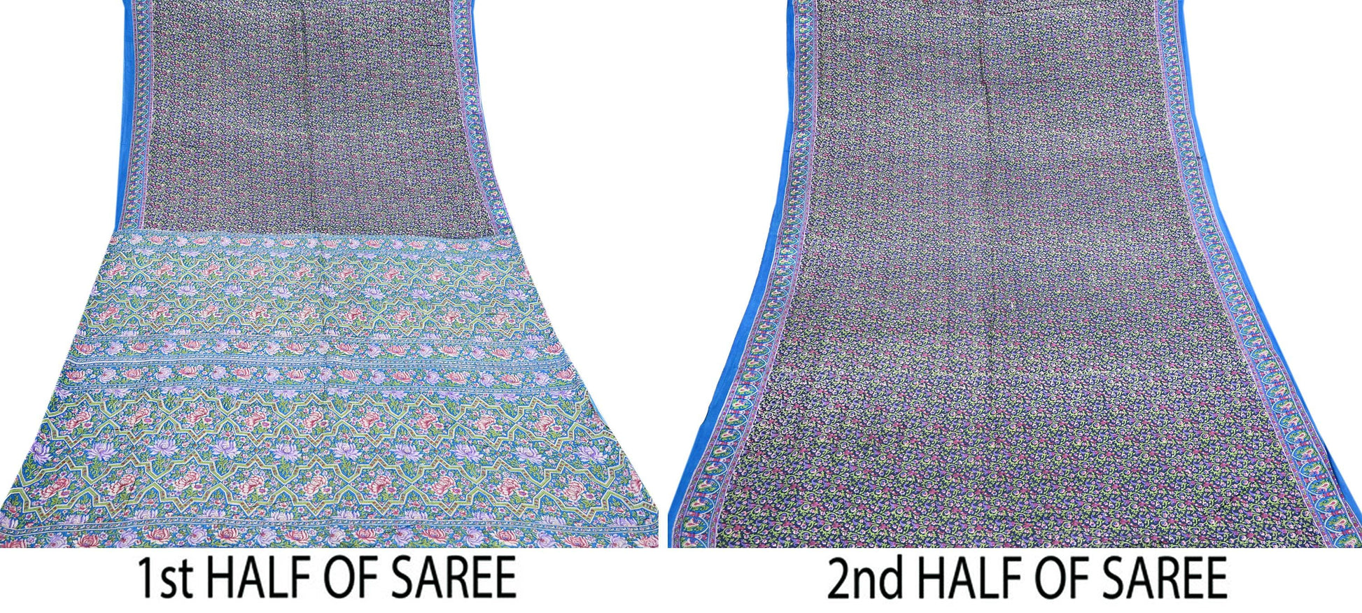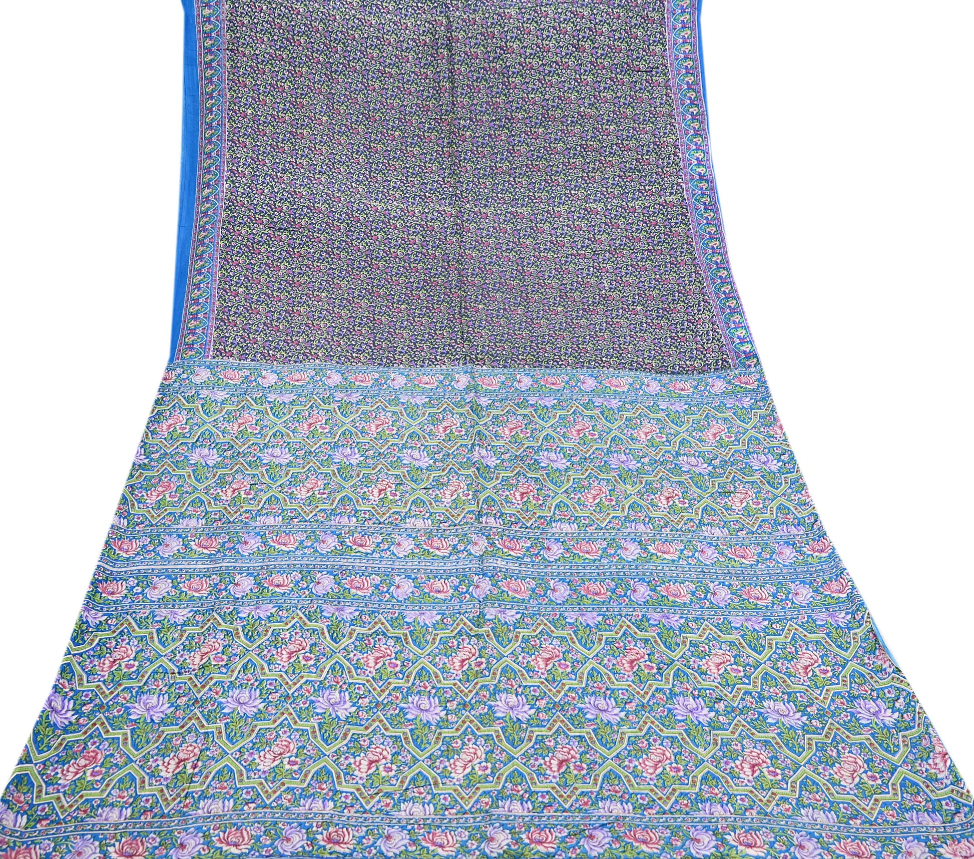 Indian Vintage Blue Sarees Pure Cotton Block Printed Sari 5yd Sewing Craft Fabric DressMaking Soft Crafting Quilting Upcycle