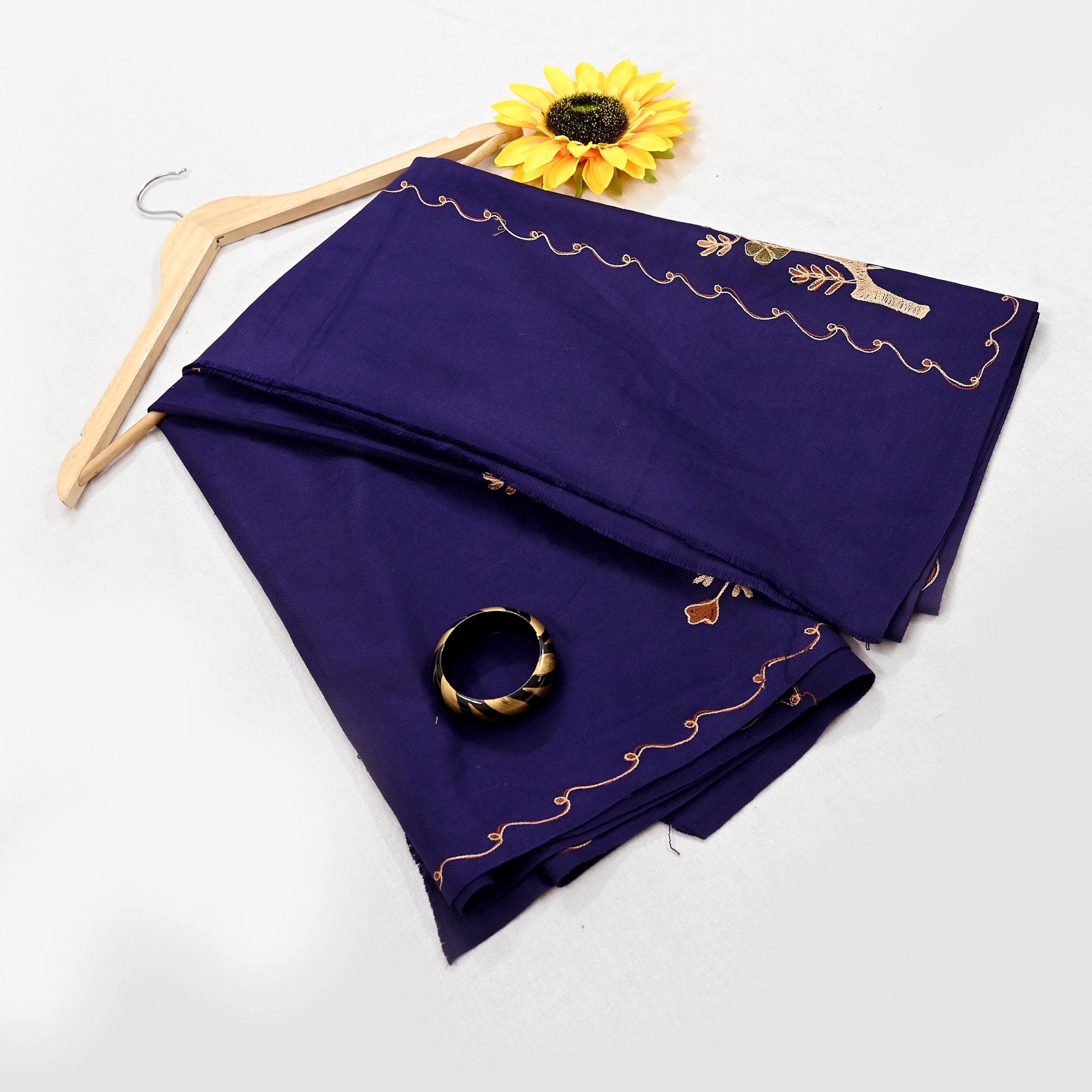 Indian Vintage Blue Woolen Shawl Handmade Ari work Long Throw Stole Warm Stole Floral Design Upcycle Crafting Used