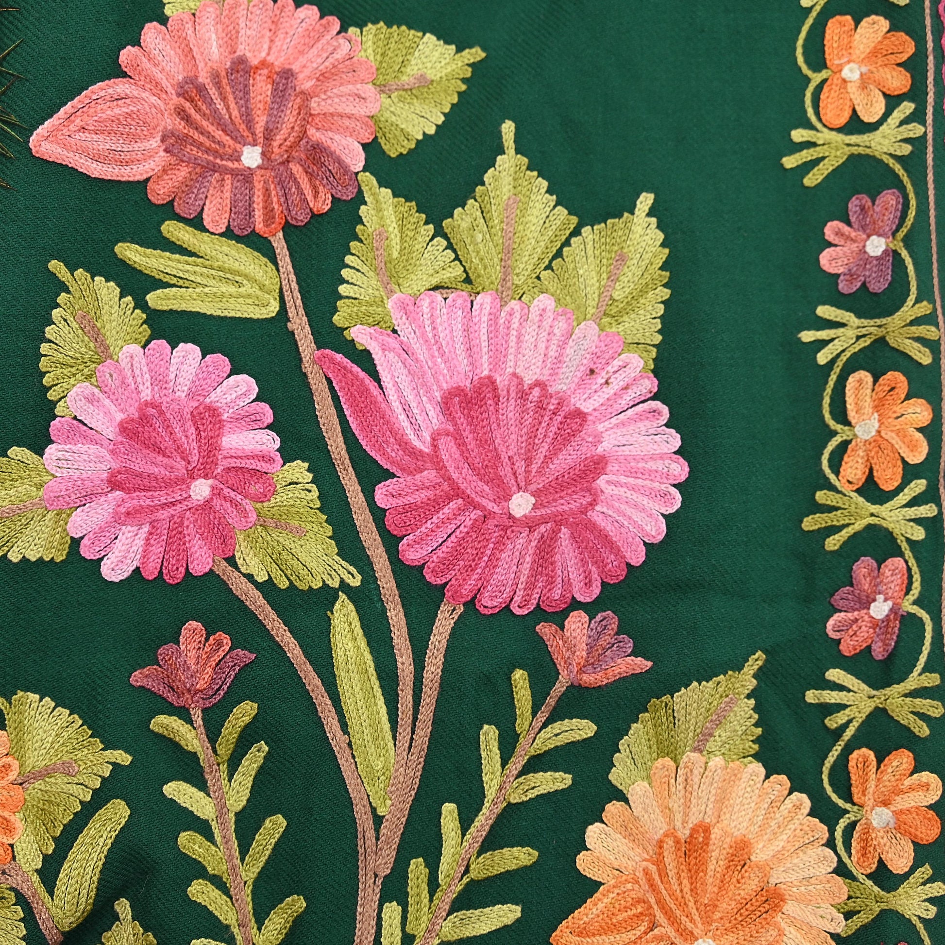 Stunning Embroidered Kashmiri Coat – Bottle Green Pure Wool Fabric