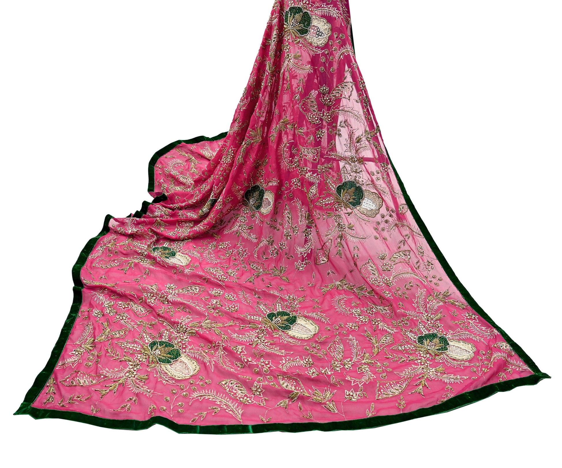 Indian Vintage Bridal Heavy Pink Dupatta American Georgette Long Stole Hand Embroidered Scarves Zari Zardozi Bollywood Wedding Veil Hijab