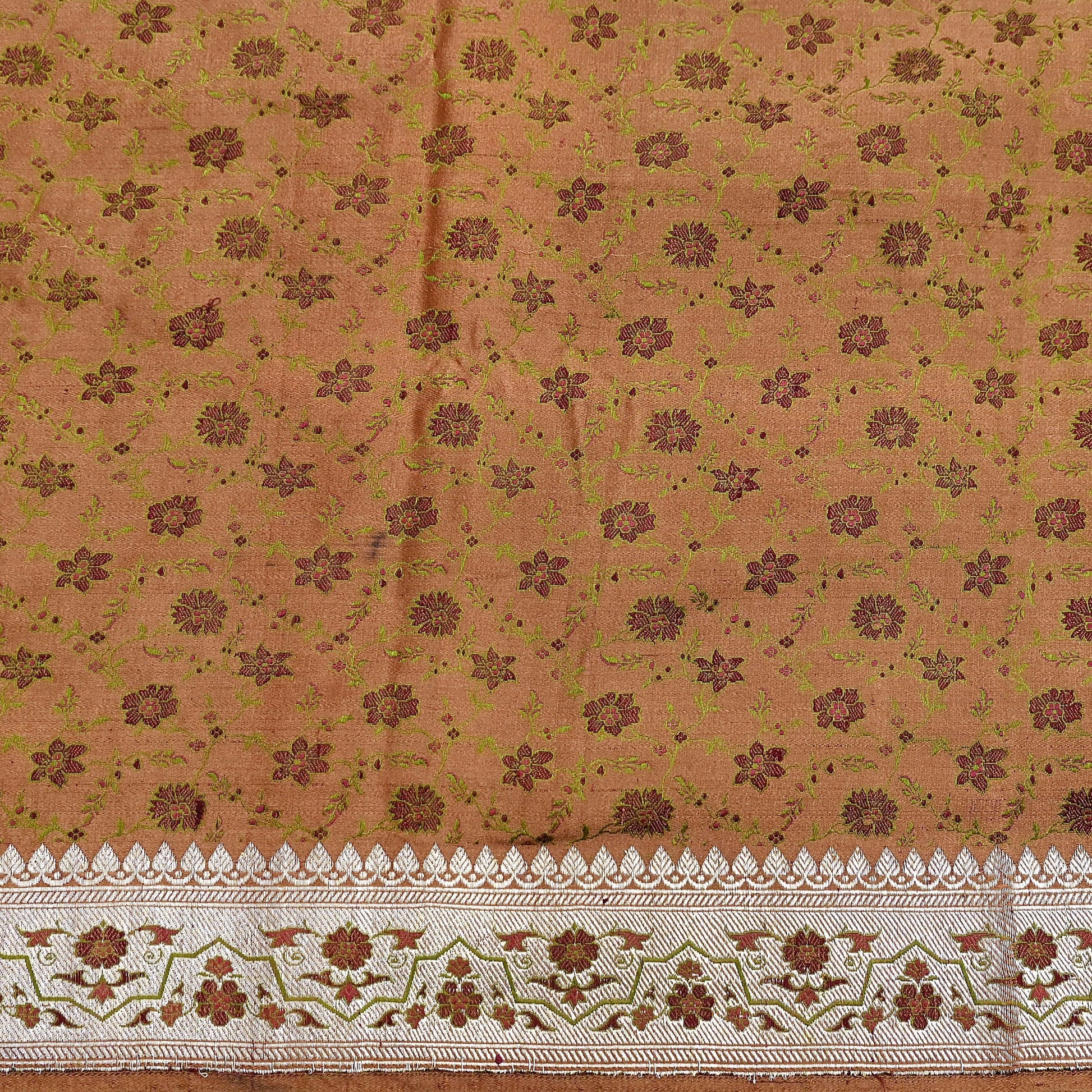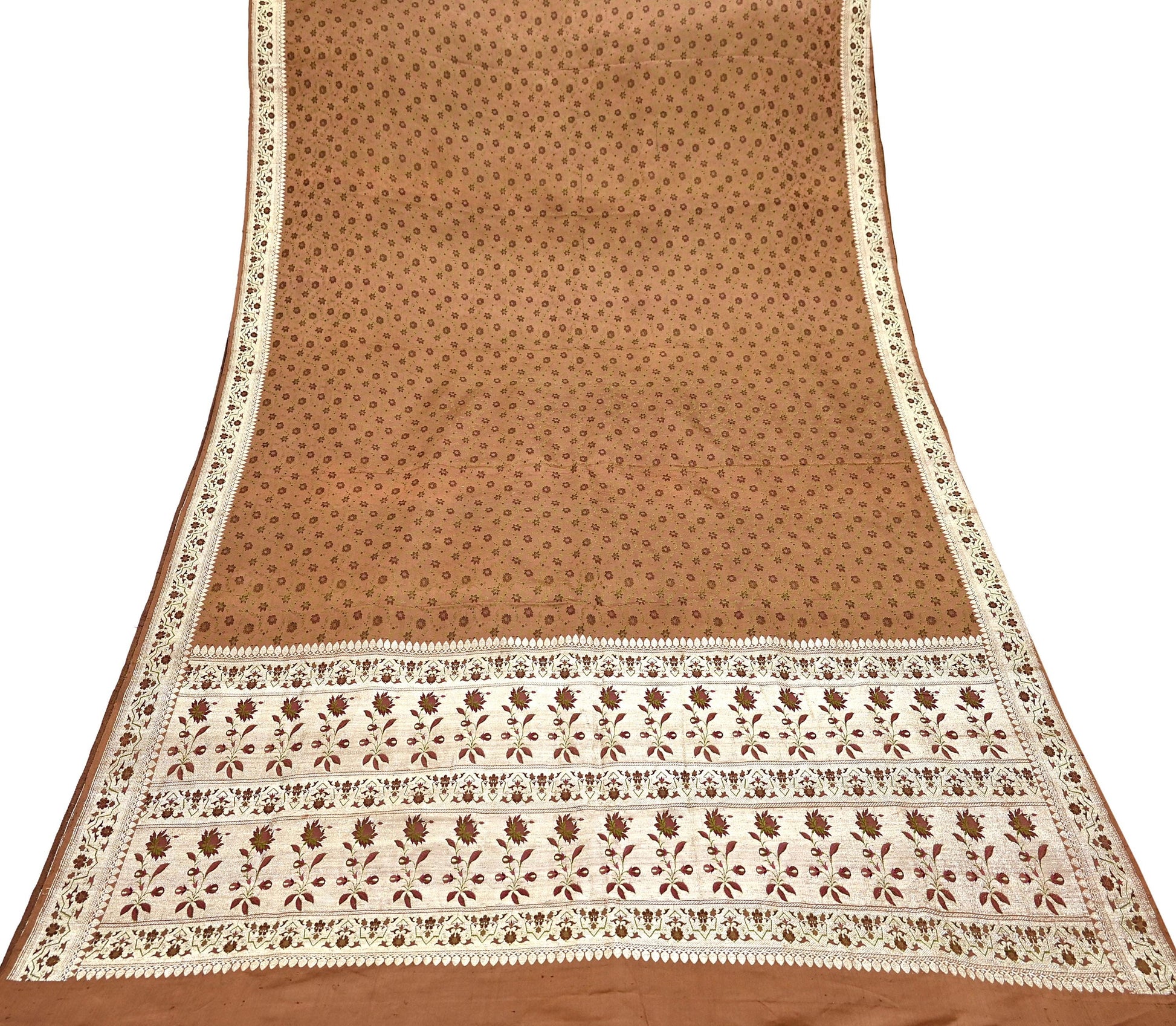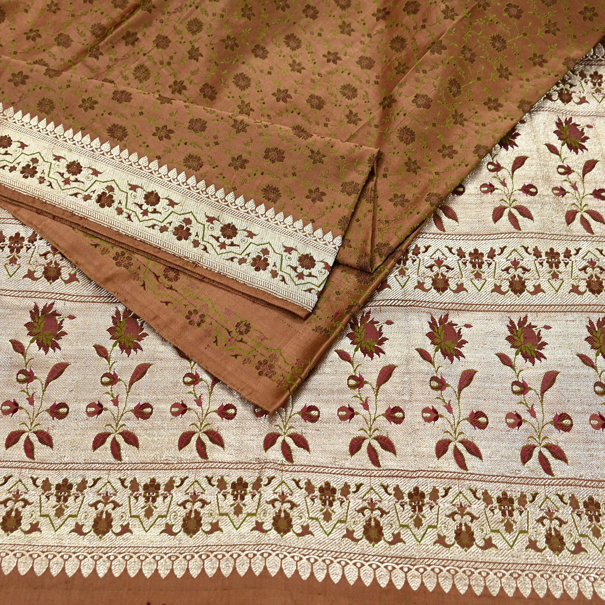 *Vintage Brown Heavy Saree Pure Satin Silk Woven Tanchoi Brocade Fabric Sari