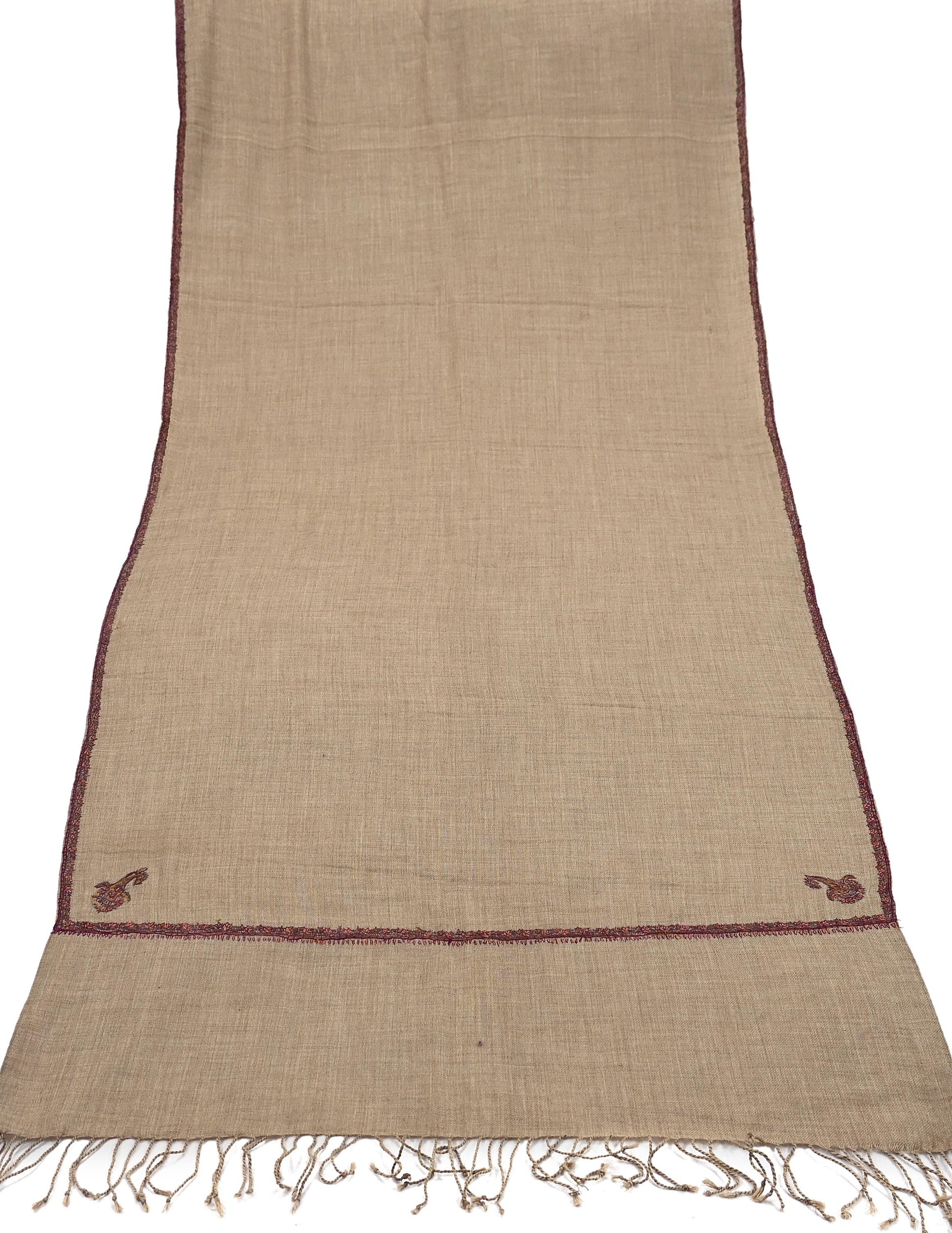 Indian Vintage Brown Pure Woolen Shawl Handmade Suzani Long Throw Stole Warm Stole Floral Design