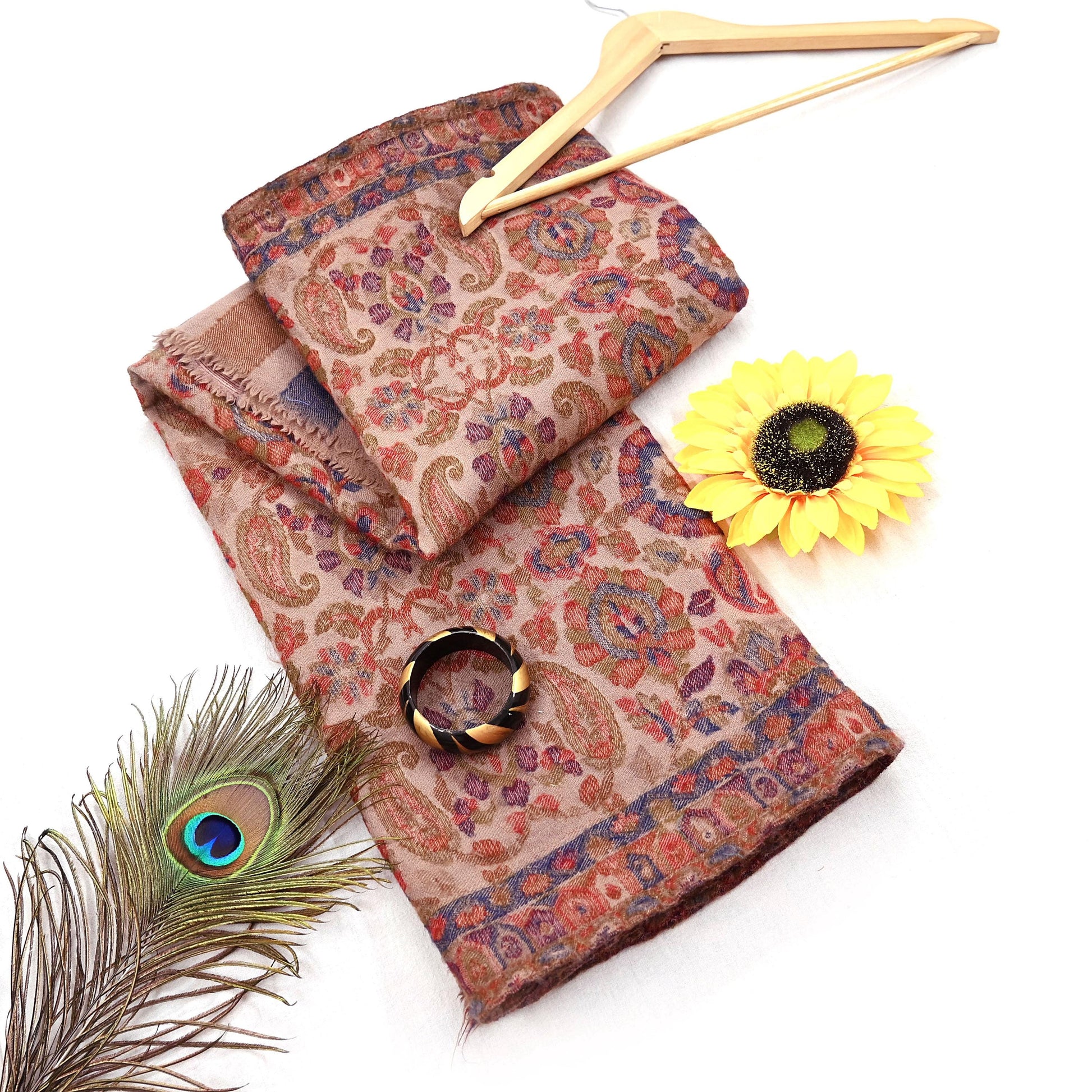 Indian Vintage Brown Pure Woolen Shawl Handmade Woven Jamawar Work Long Throw Stole Warm Paisley Design Soft