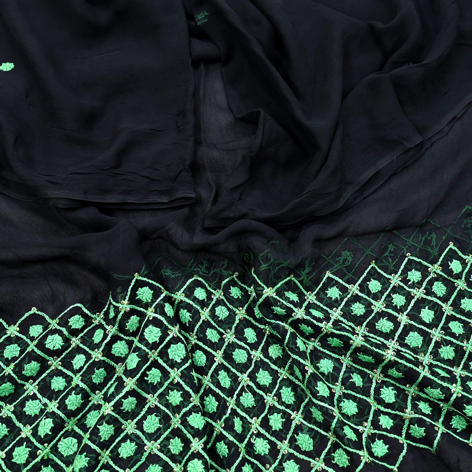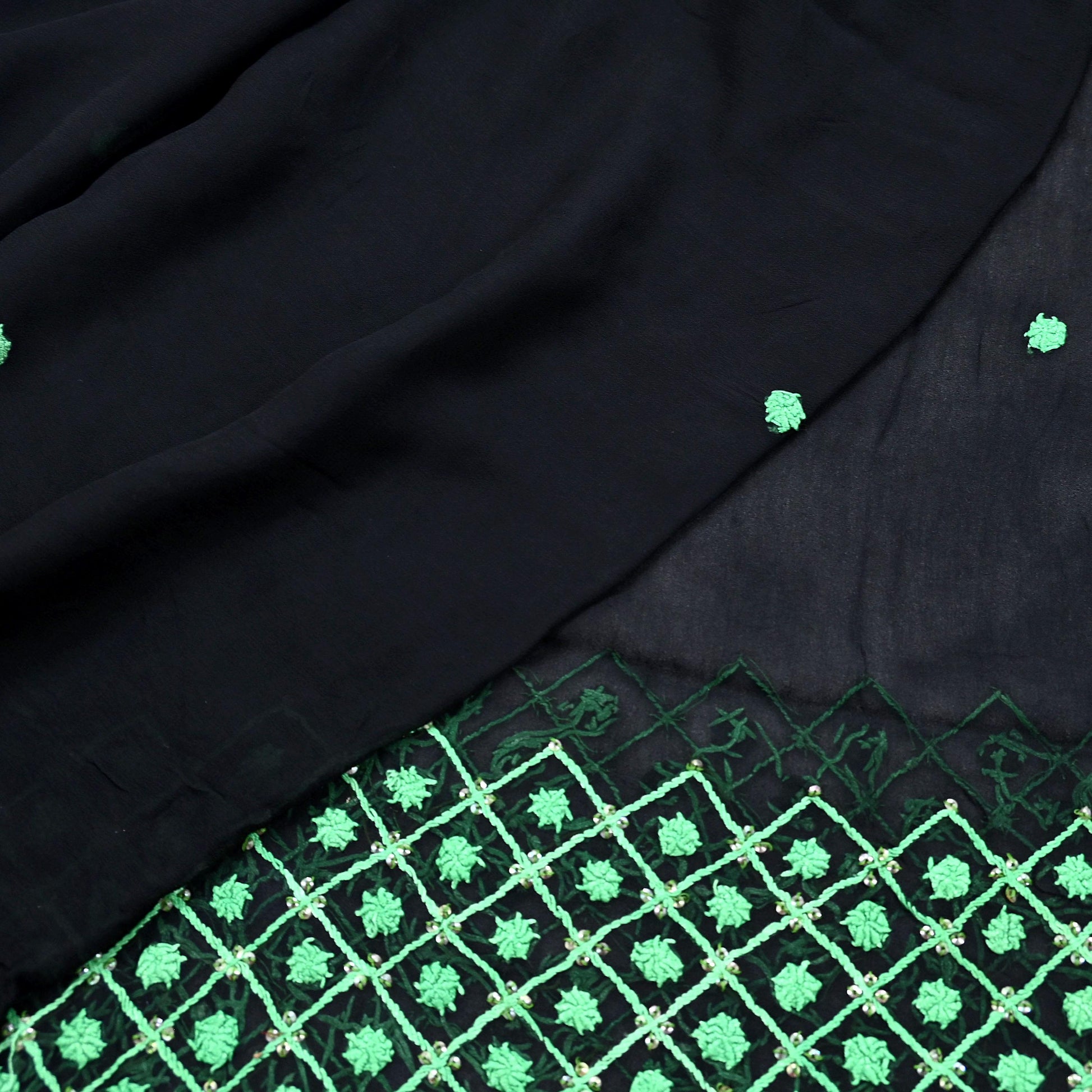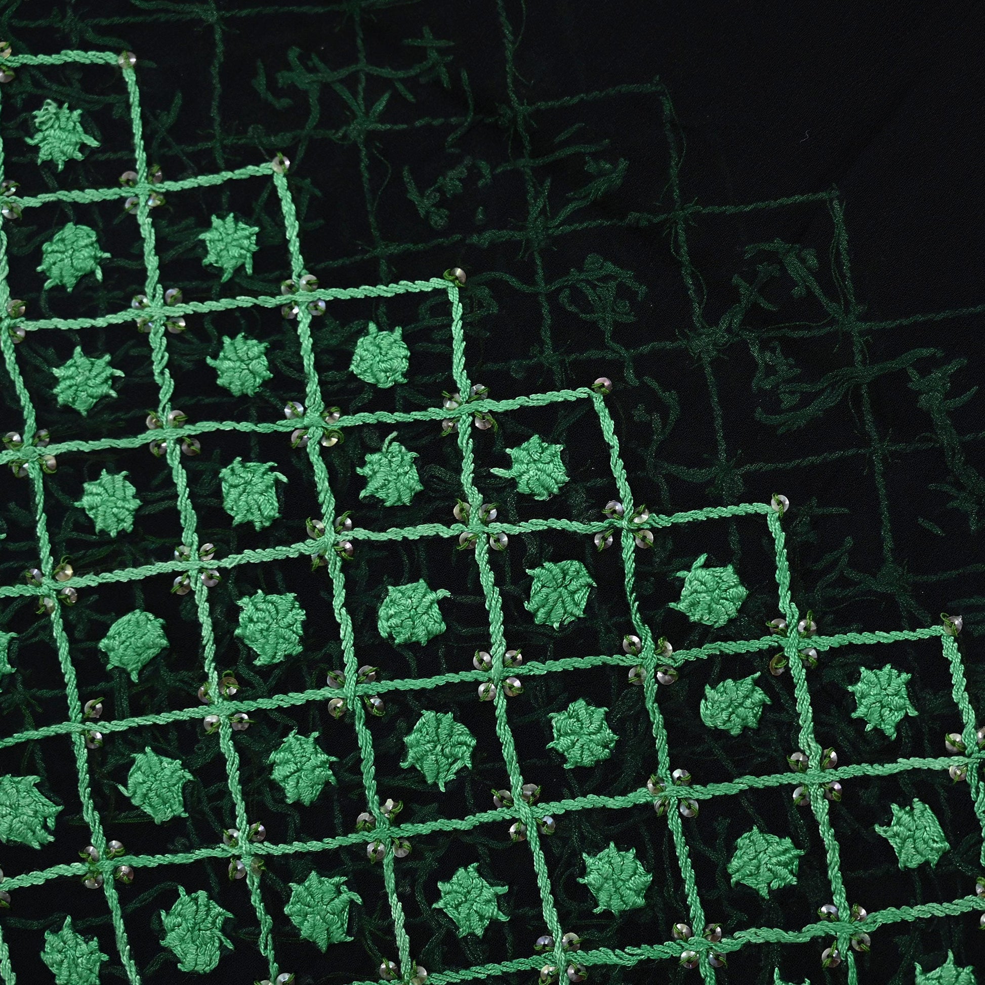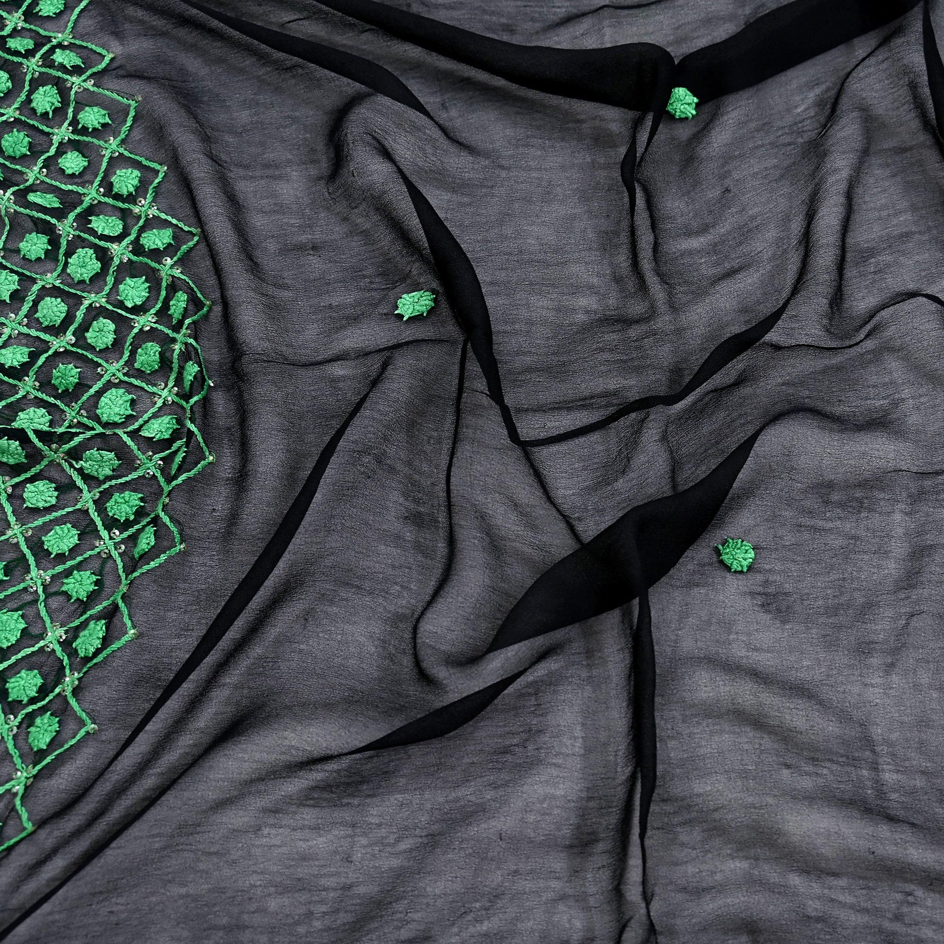 Stunning Very Heavy Hand Embroidered Black Colored Blend Georgette Dupatta/Stole. Dupatta Has Floral Design With Green Thread, Sequins Work Is The Highlight Of The Dupatta. lace work on borders. The Thick Stitches Of Make The Pattern All The More Emphasized. Further Enhancing The Beauty Of The Dupatta. A very traditional dupatta with beautiful craftsmanship which I am sure you will truly appreciate.