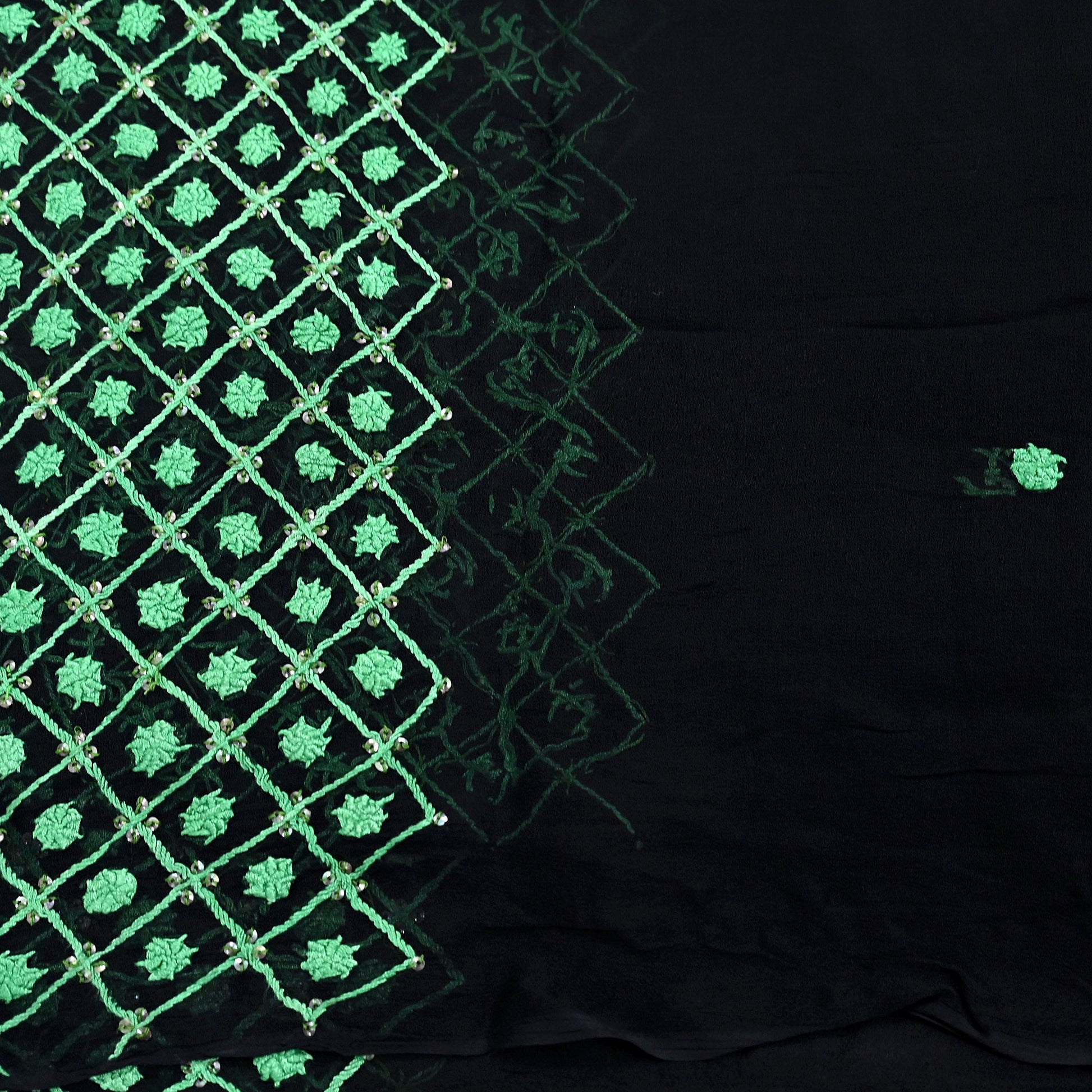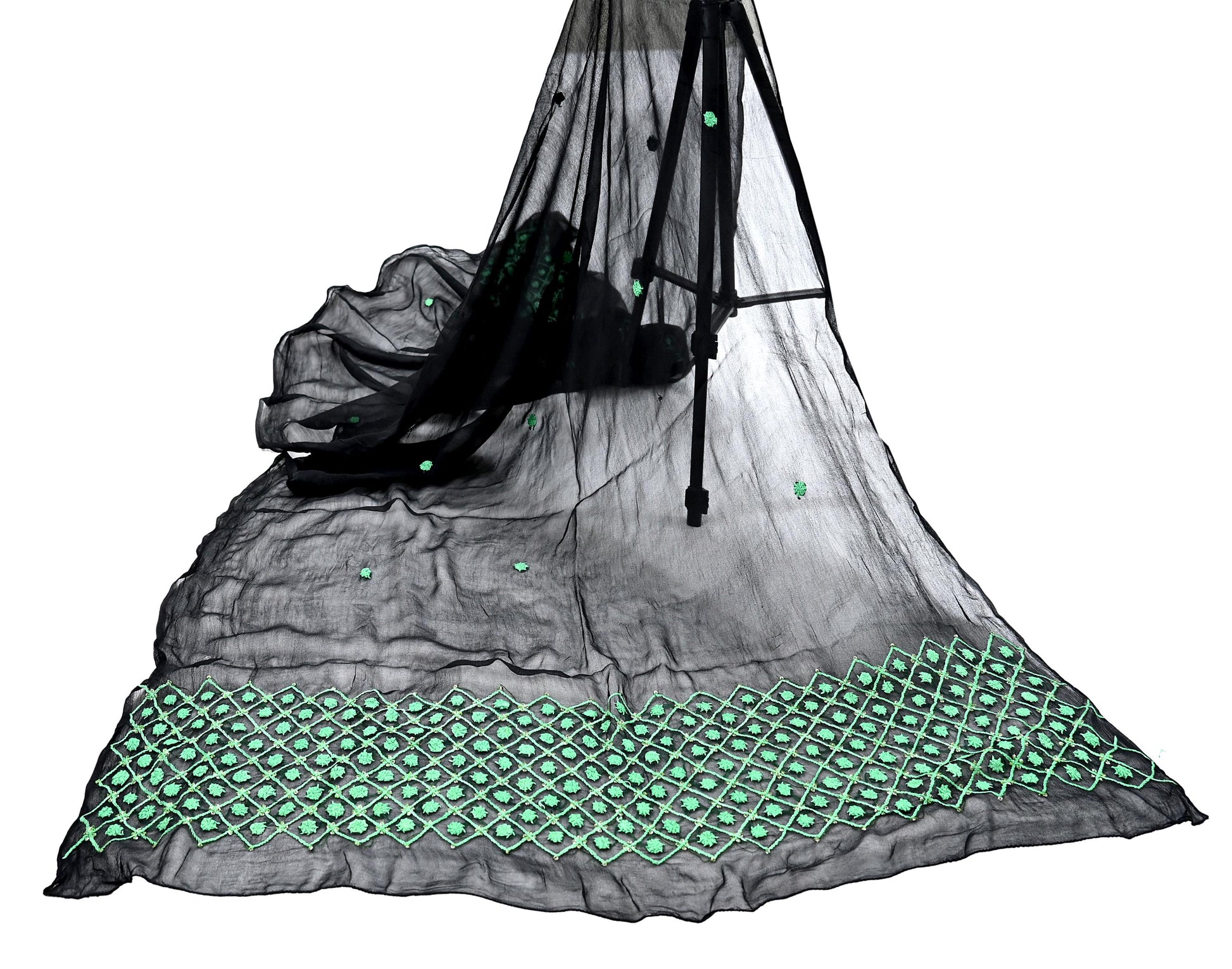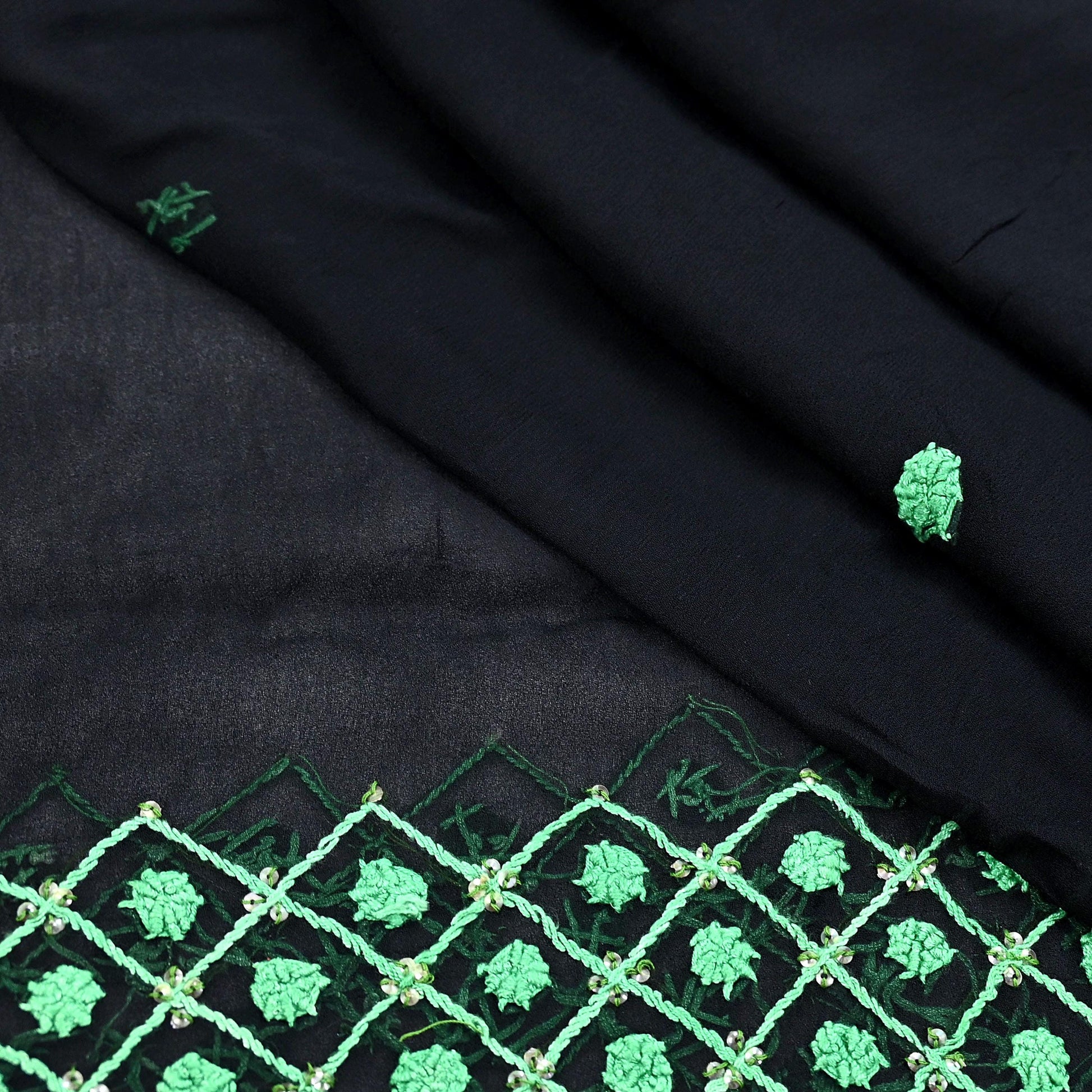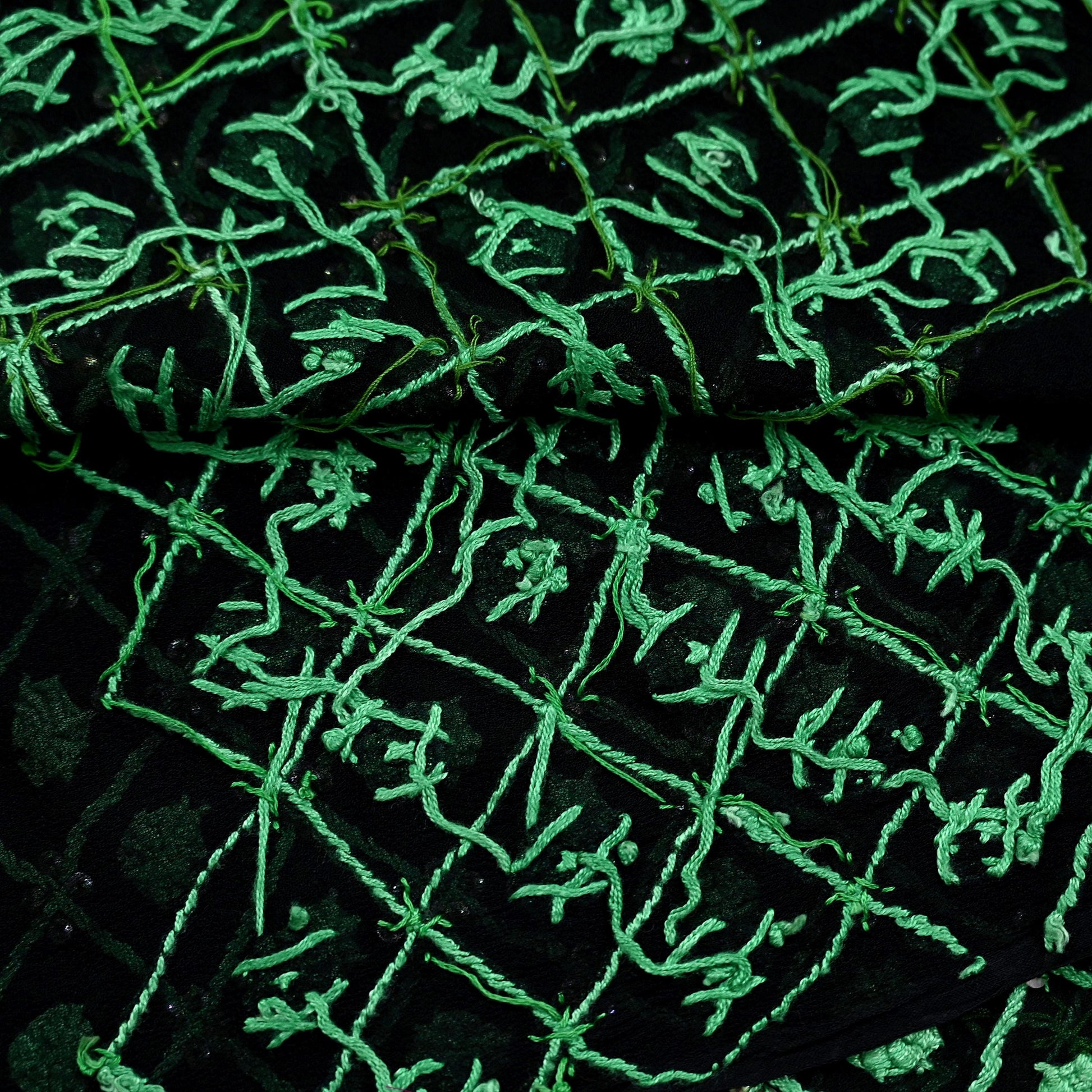 Stunning Very Heavy Hand Embroidered Black Colored Blend Georgette Dupatta/Stole. Dupatta Has Floral Design With Green Thread, Sequins Work Is The Highlight Of The Dupatta. lace work on borders. The Thick Stitches Of Make The Pattern All The More Emphasized. Further Enhancing The Beauty Of The Dupatta. A very traditional dupatta with beautiful craftsmanship which I am sure you will truly appreciate.