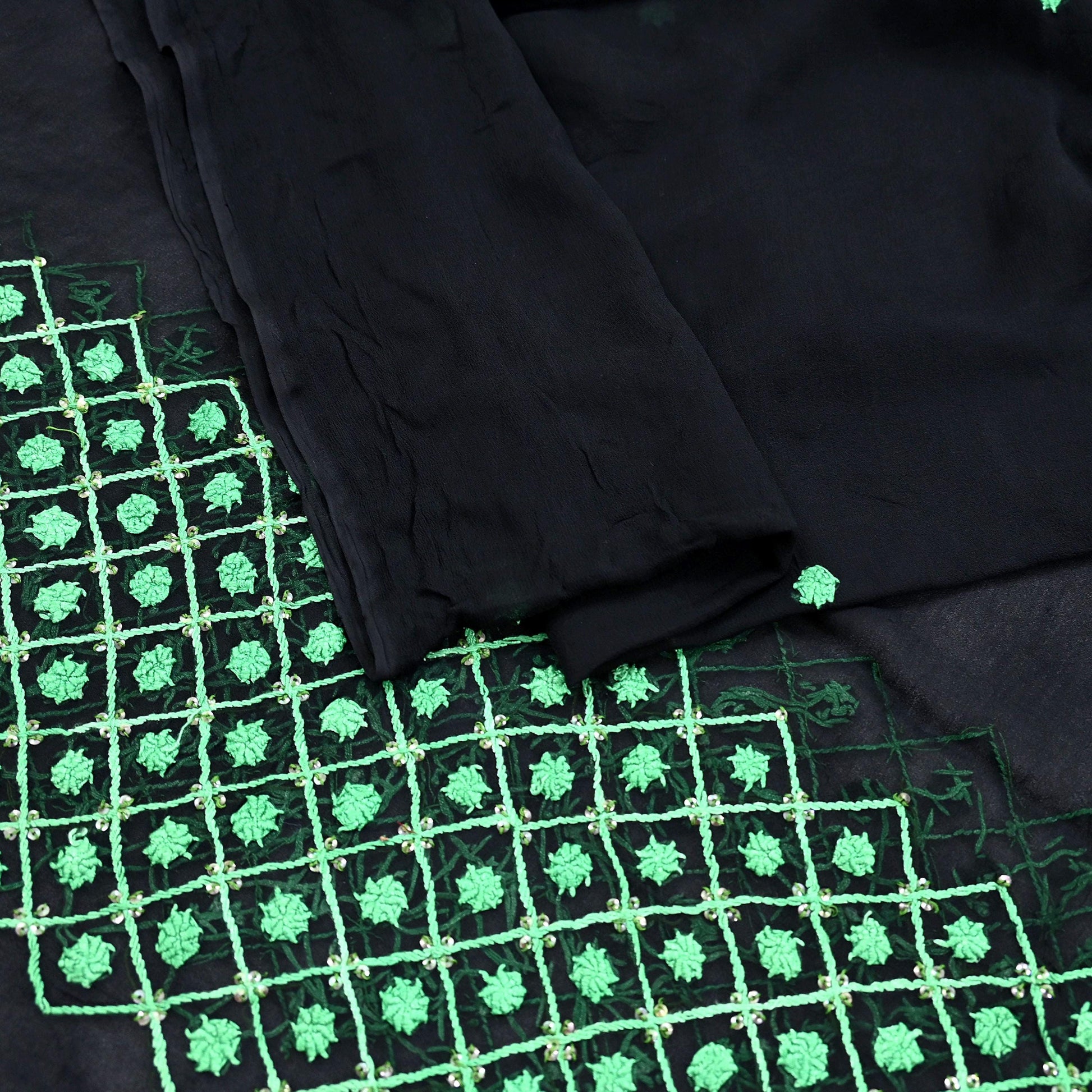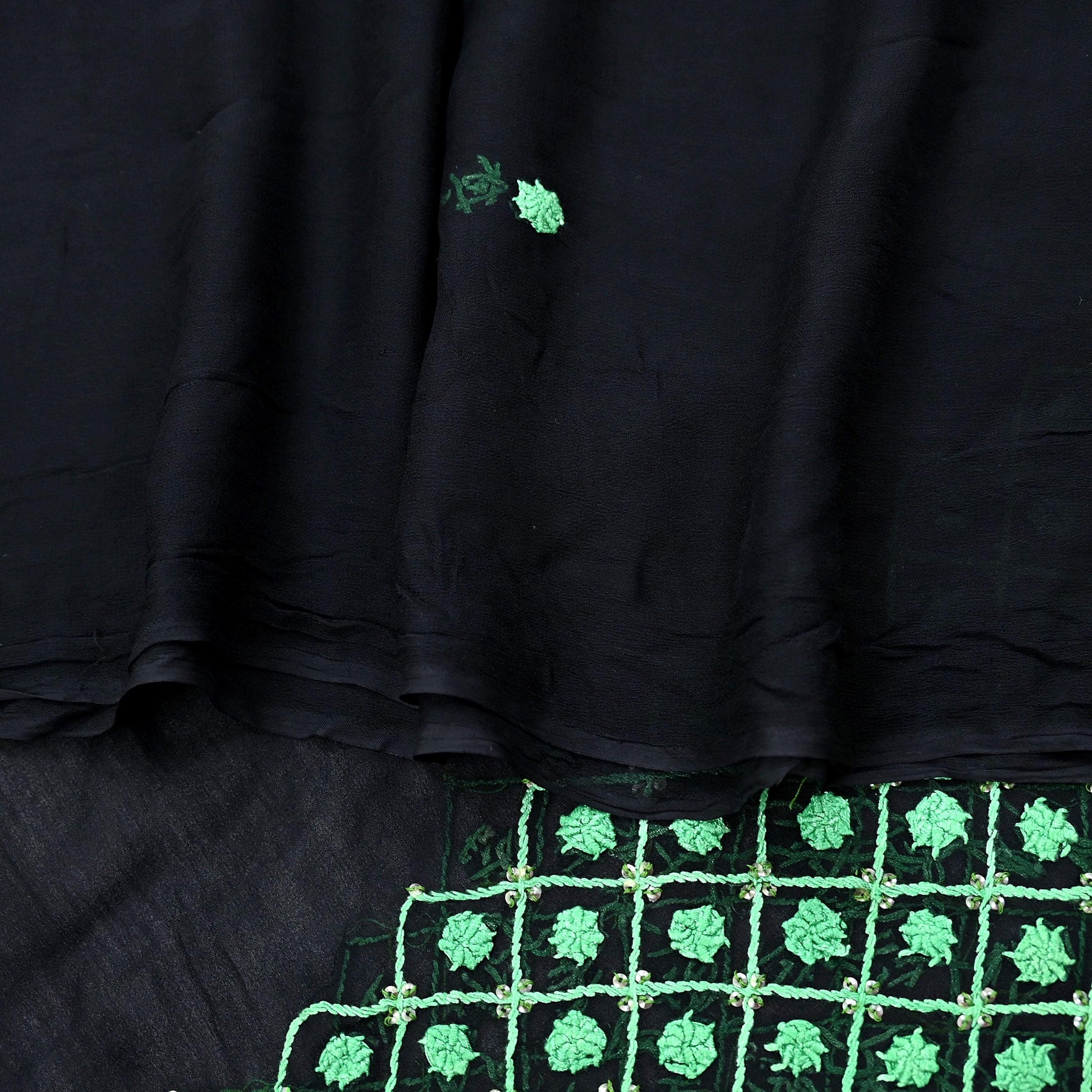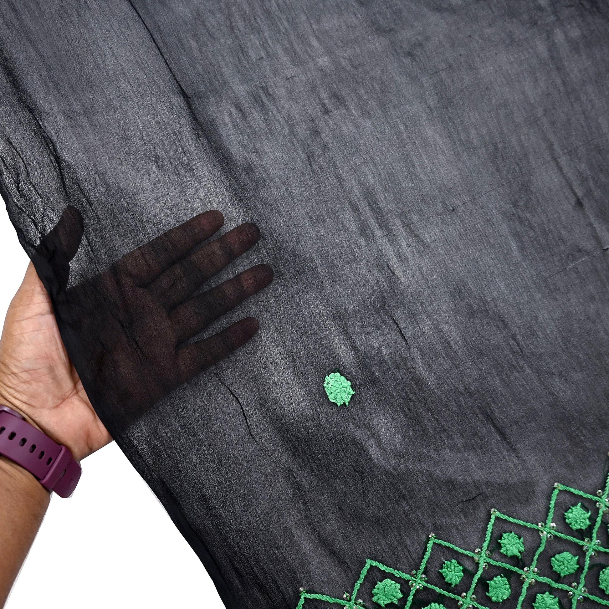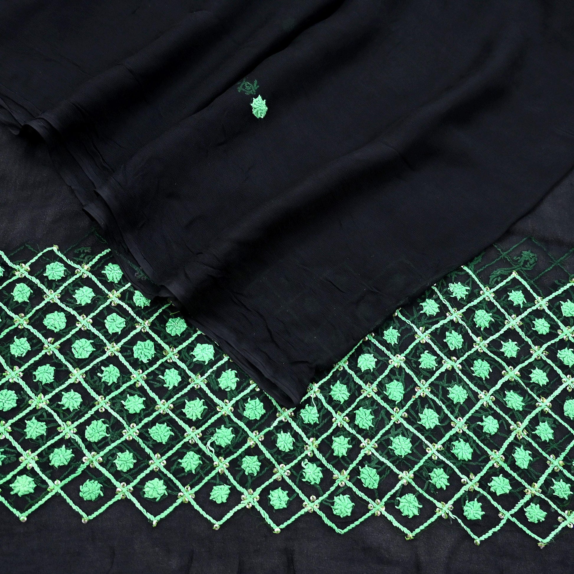 Stunning Very Heavy Hand Embroidered Black Colored Blend Georgette Dupatta/Stole. Dupatta Has Floral Design With Green Thread, Sequins Work Is The Highlight Of The Dupatta. lace work on borders. The Thick Stitches Of Make The Pattern All The More Emphasized. Further Enhancing The Beauty Of The Dupatta. A very traditional dupatta with beautiful craftsmanship which I am sure you will truly appreciate.