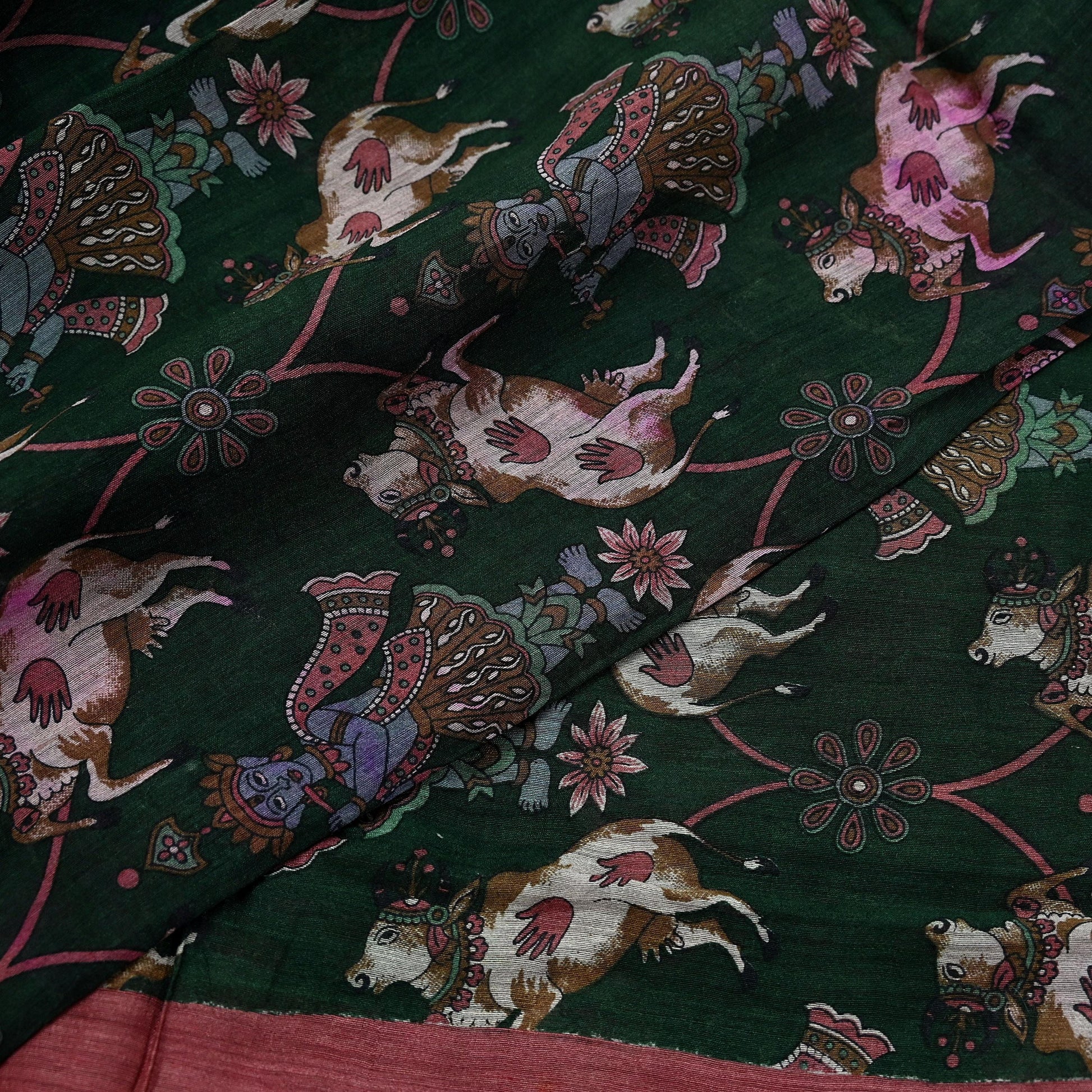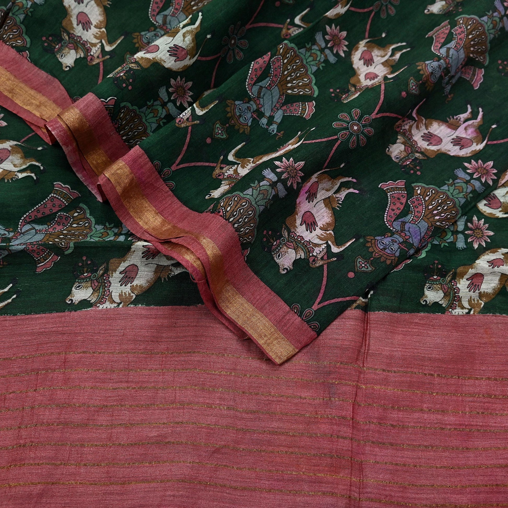 Indian Vintage Dupatta Green & Pink Long Stole Block Print Pure Chanderi Silk Scarves Veil Zari Wrap Hijab