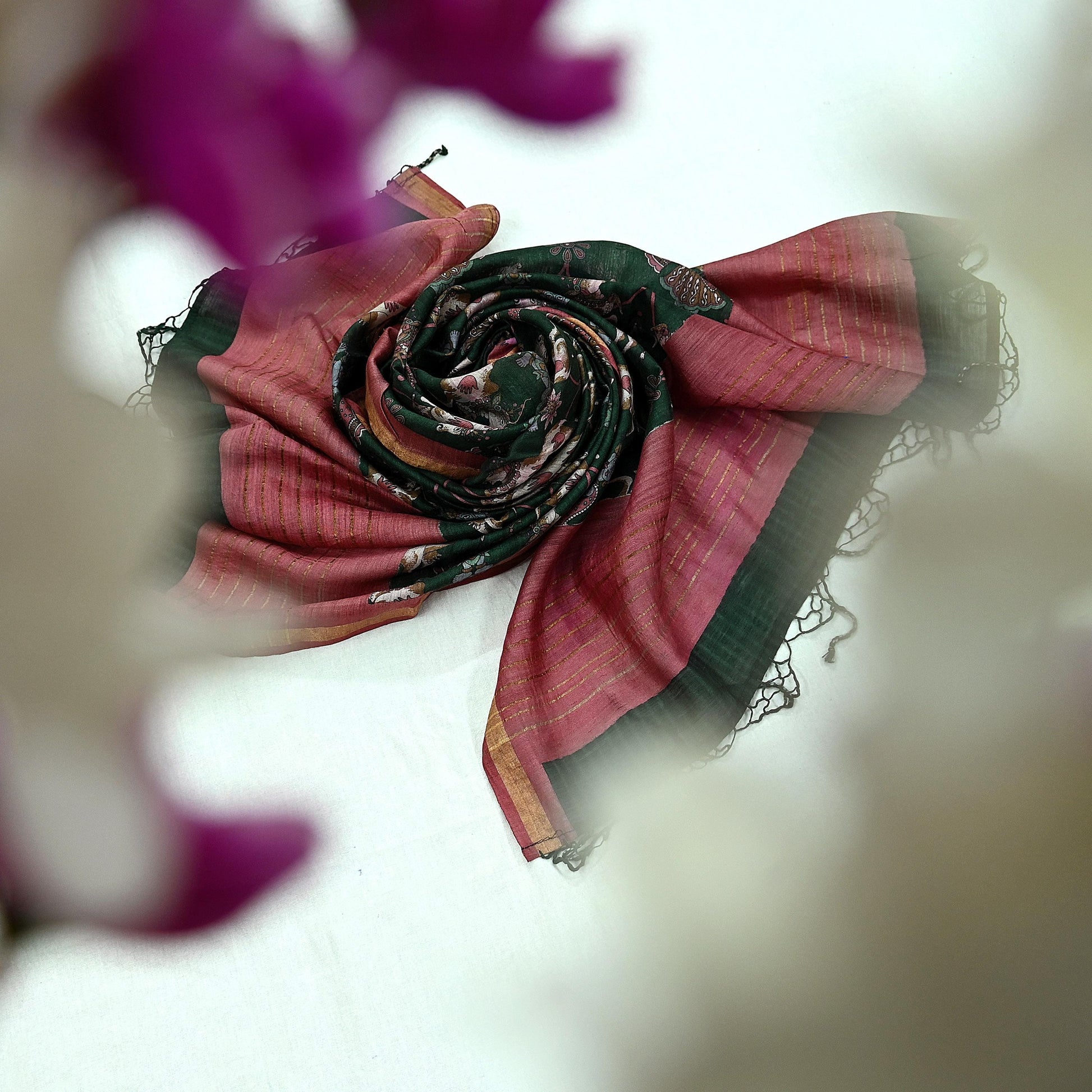 *Awesome Green & Pink Colored Block Print Pure Chanderi Silk Long Scarf/Dupatta.