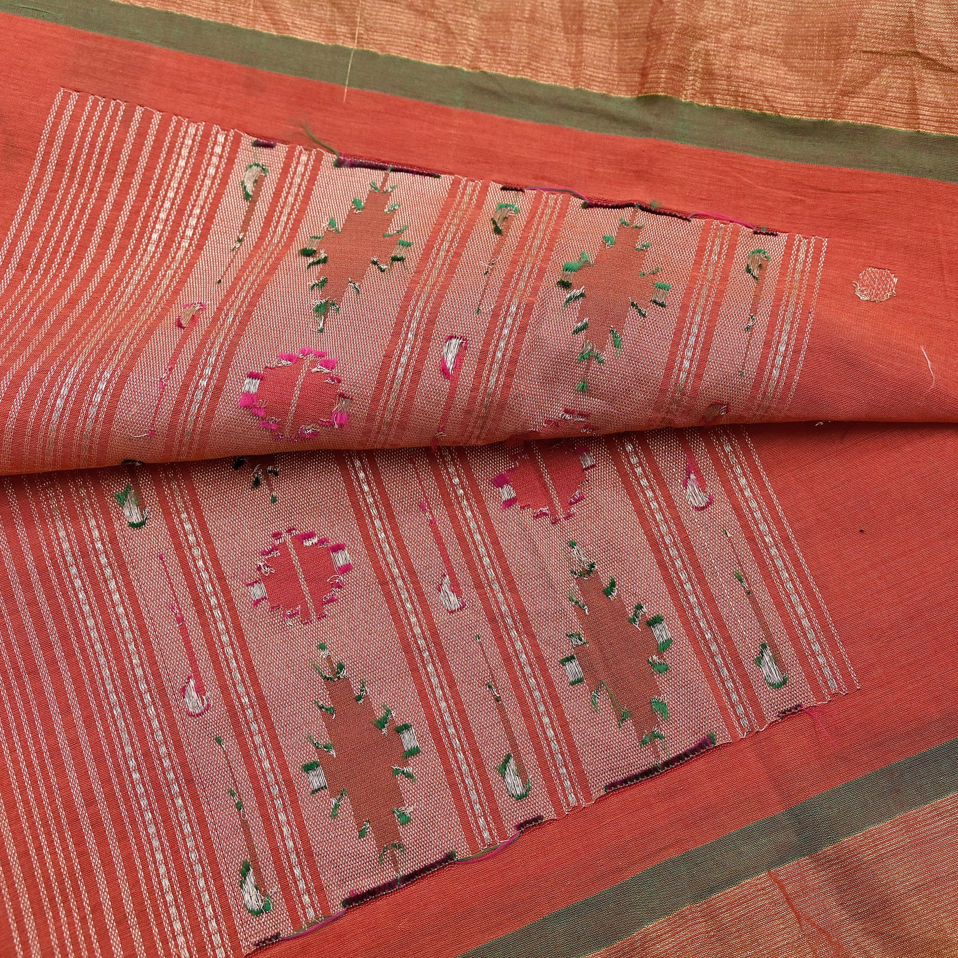 *Vintage Orange Colored Handloom Paithani Pure cotton Long Scarf/Dupatta.