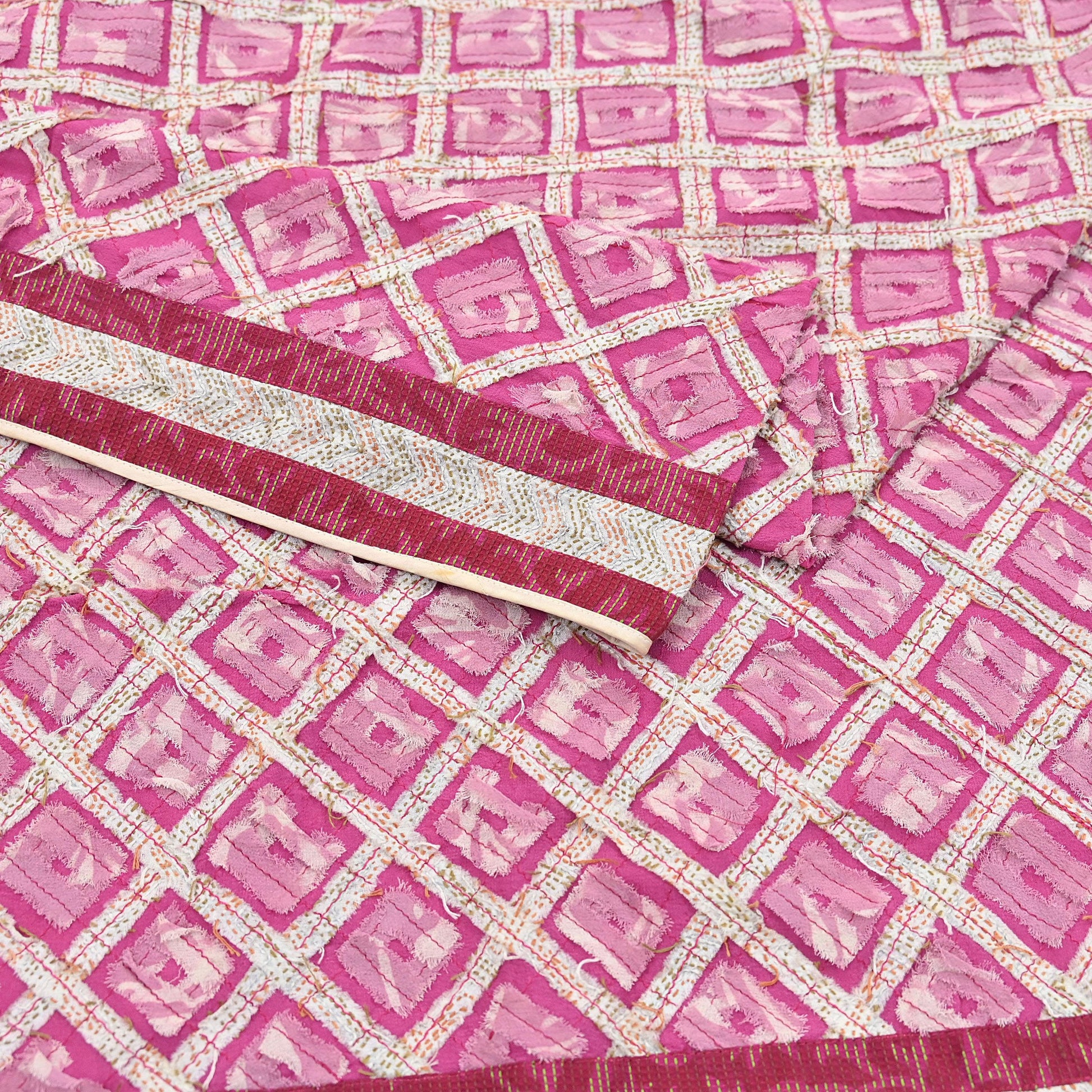 Attractive Pink & Ivory Kantha border Work With Lovely Design On Pink Color Base Fabric Is Really Enhancing The Beauty Of The Dupatta.