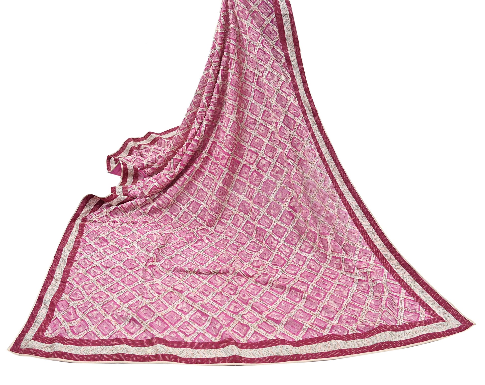 *Awesome Pink Colored Printed Hand Embroidered Kantha Pure Georgette Silk Long Scarf/Dupatta.