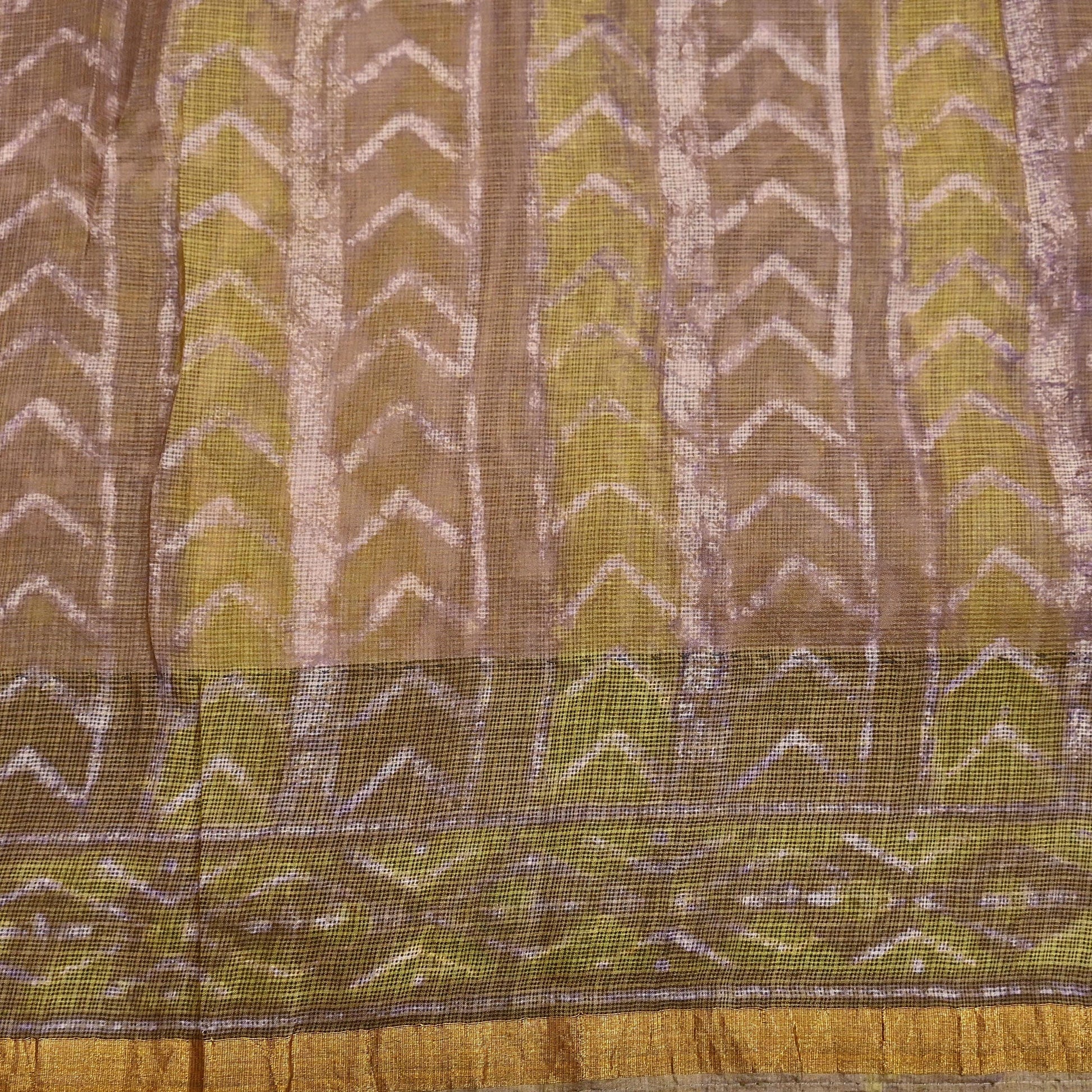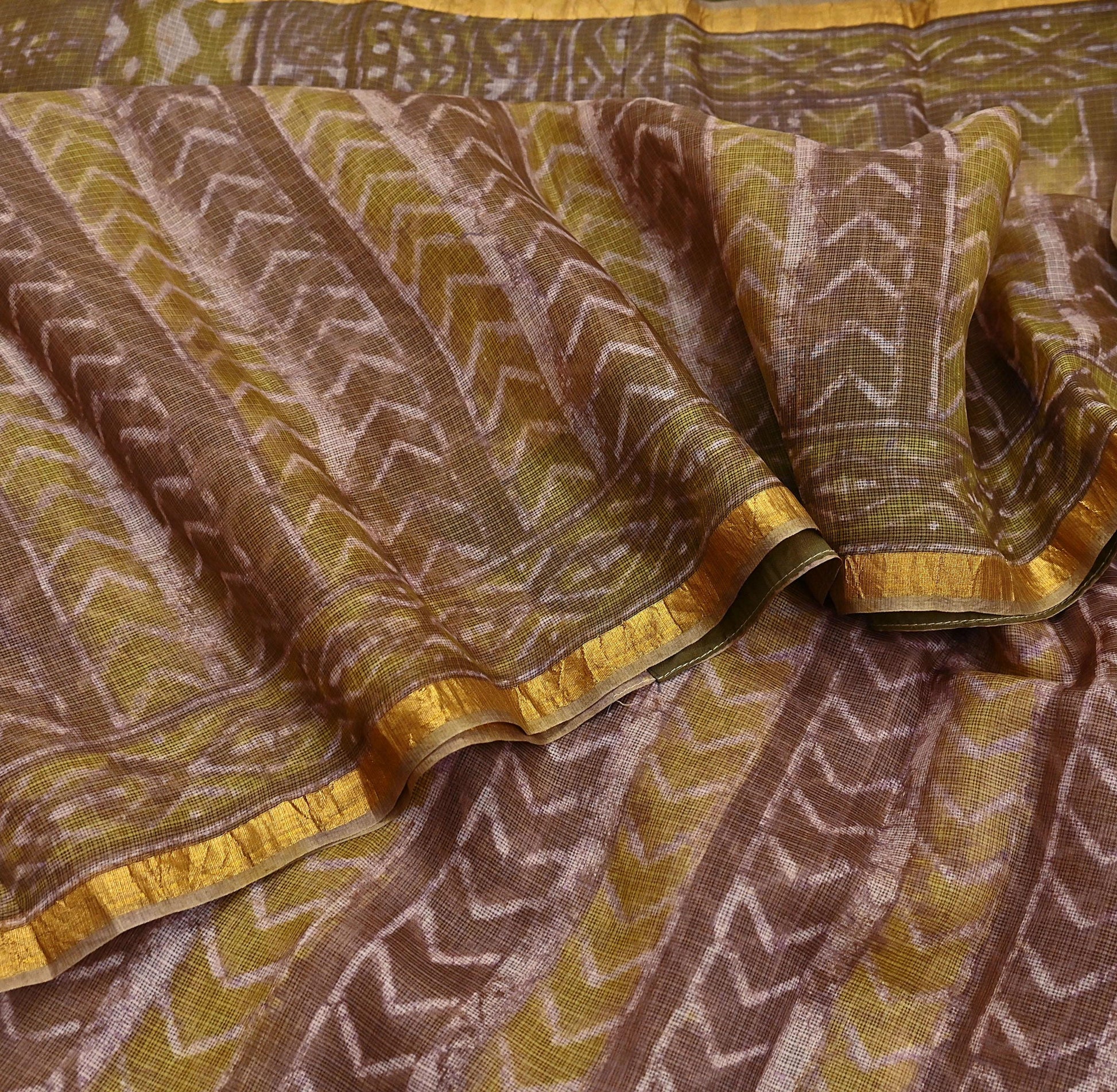 Vintage Fabindia Green & Brown Saree | Pure Silk | Block Printed Floral Design | Zari Border