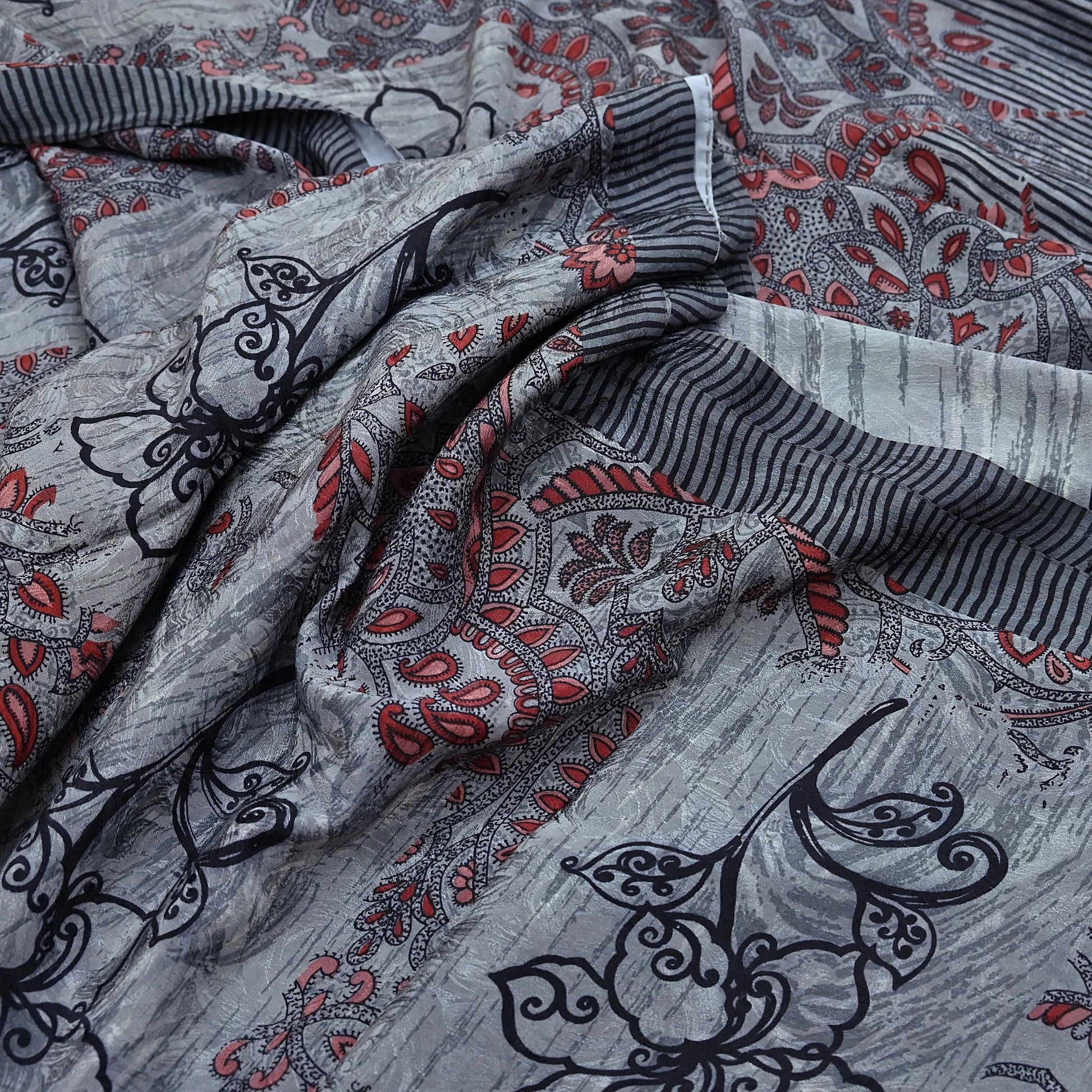 *Attractive Gray & Black Colored Printed Pure Crepe Silk Saree.