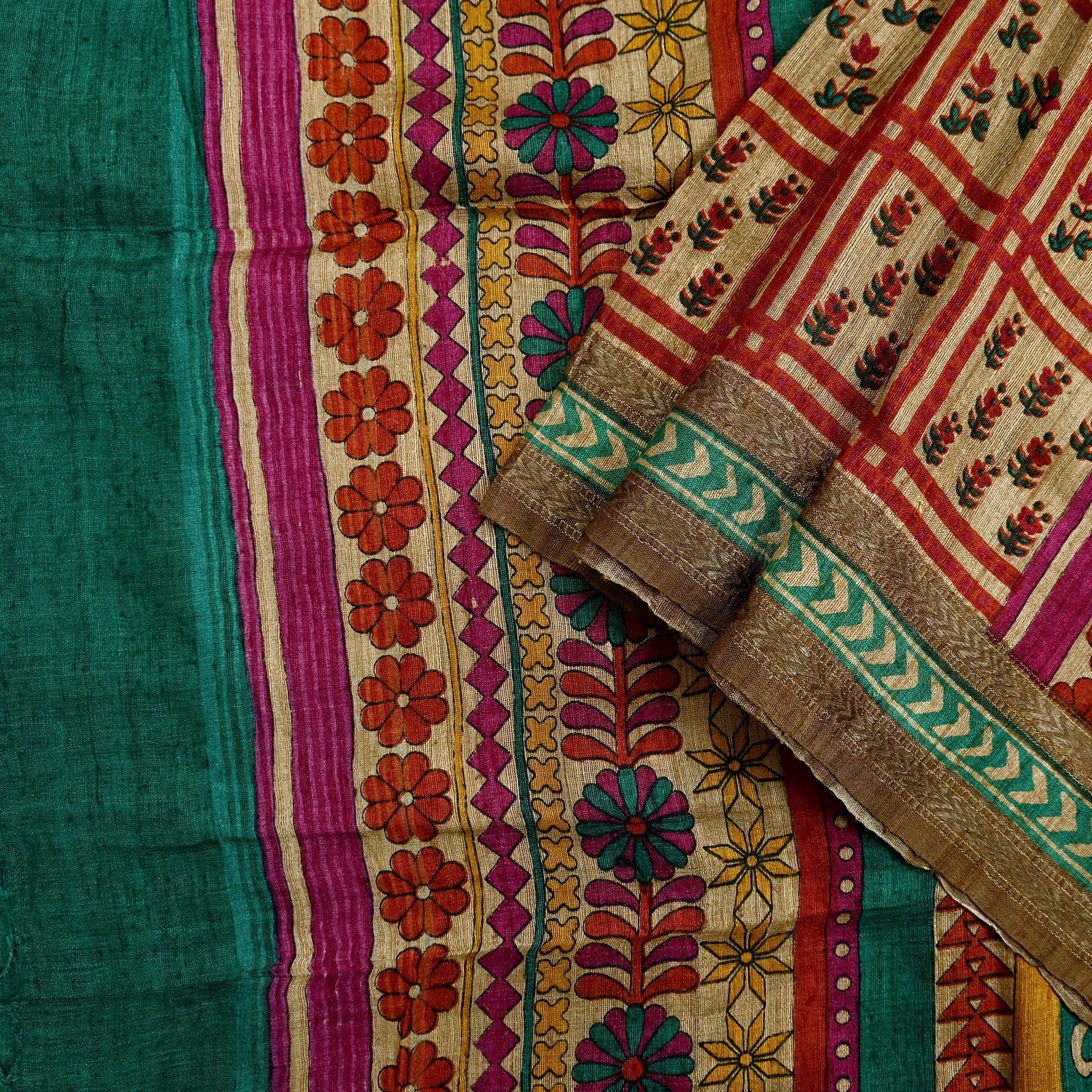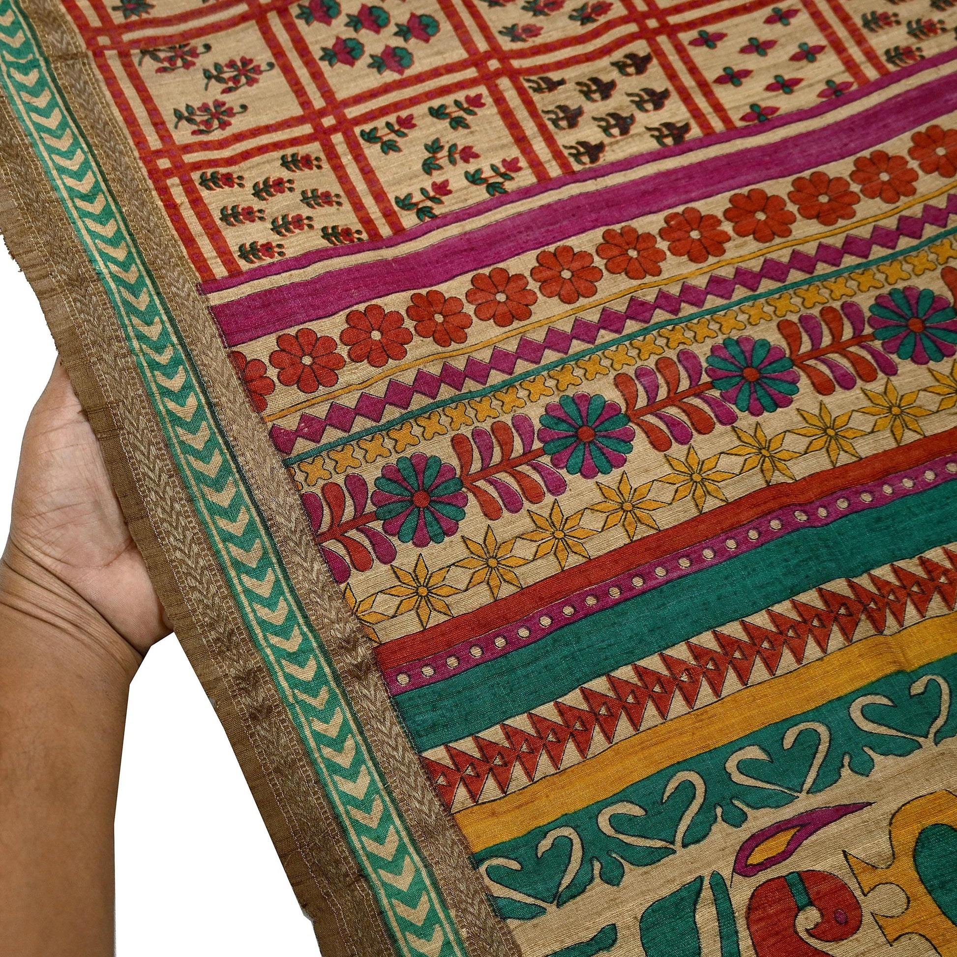 Elegant Green & Beige Printed Pure Khadi Silk Dupatta | Floral Design | Handloom Woven | Lightweight & Soft