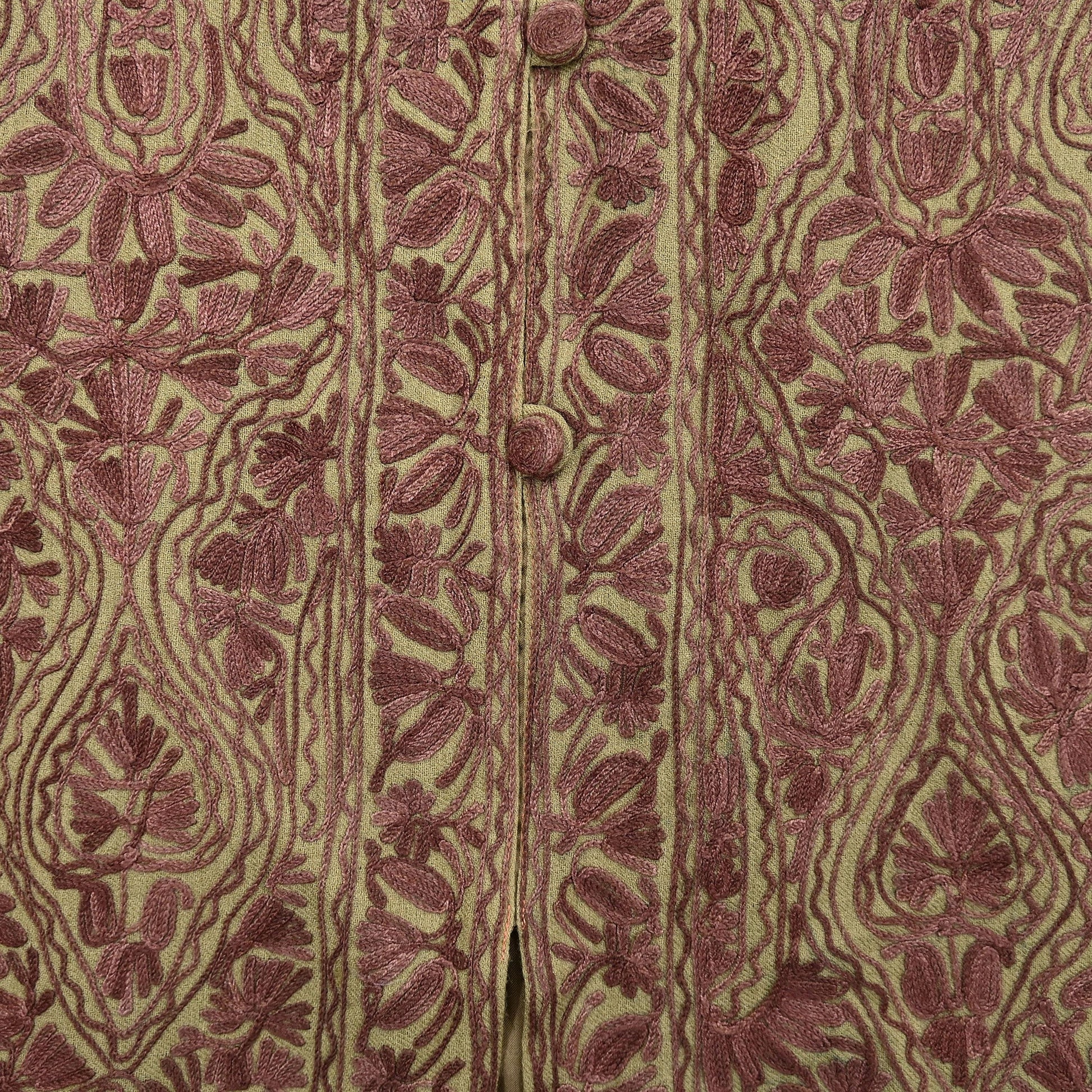 Indian Vintage Green Embroidered Kashmiri Coat, Aari Embroidery, Pure Woolen Coat, Boho Jacket For Both Women/Men Indian Coat