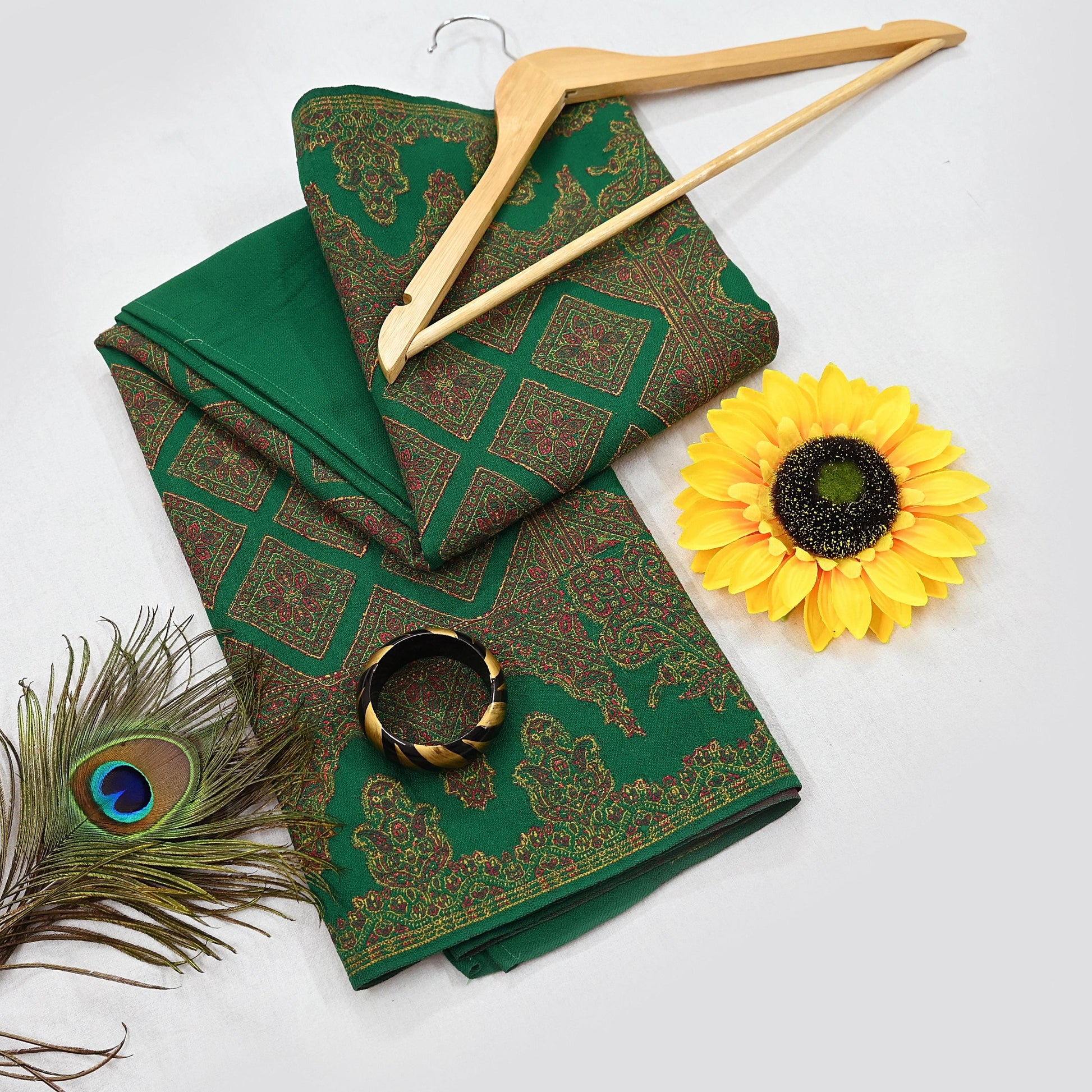 Indian Vintage Green Pure Woolen Shawl Handmade Woven Work Long Throw Stole Warm Paisley Design Soft