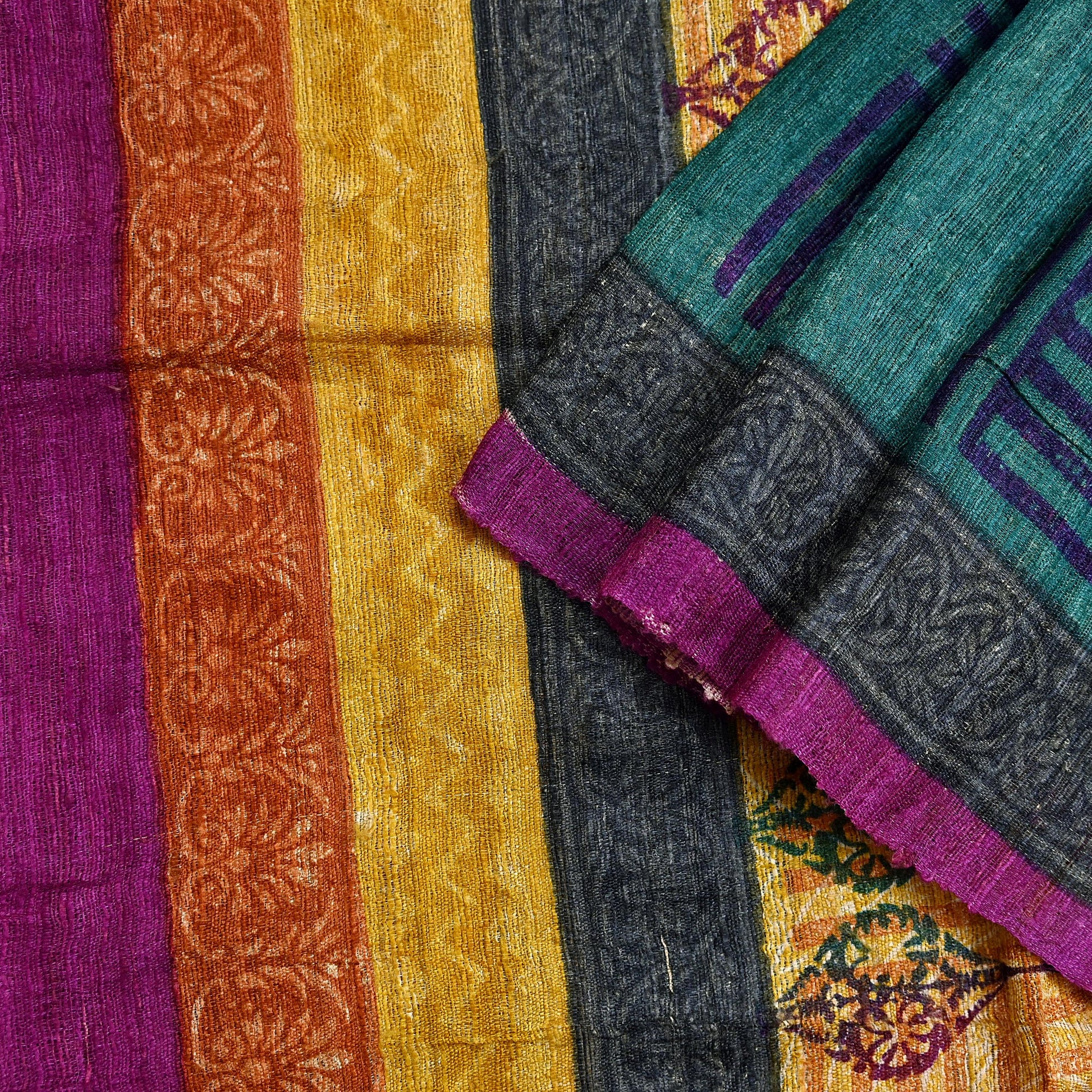 Artistry: Hand-Printed Stripes design in Green & Purple tones