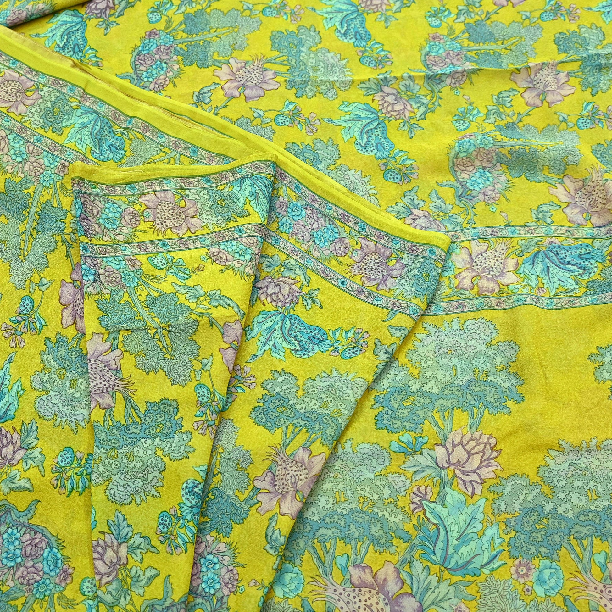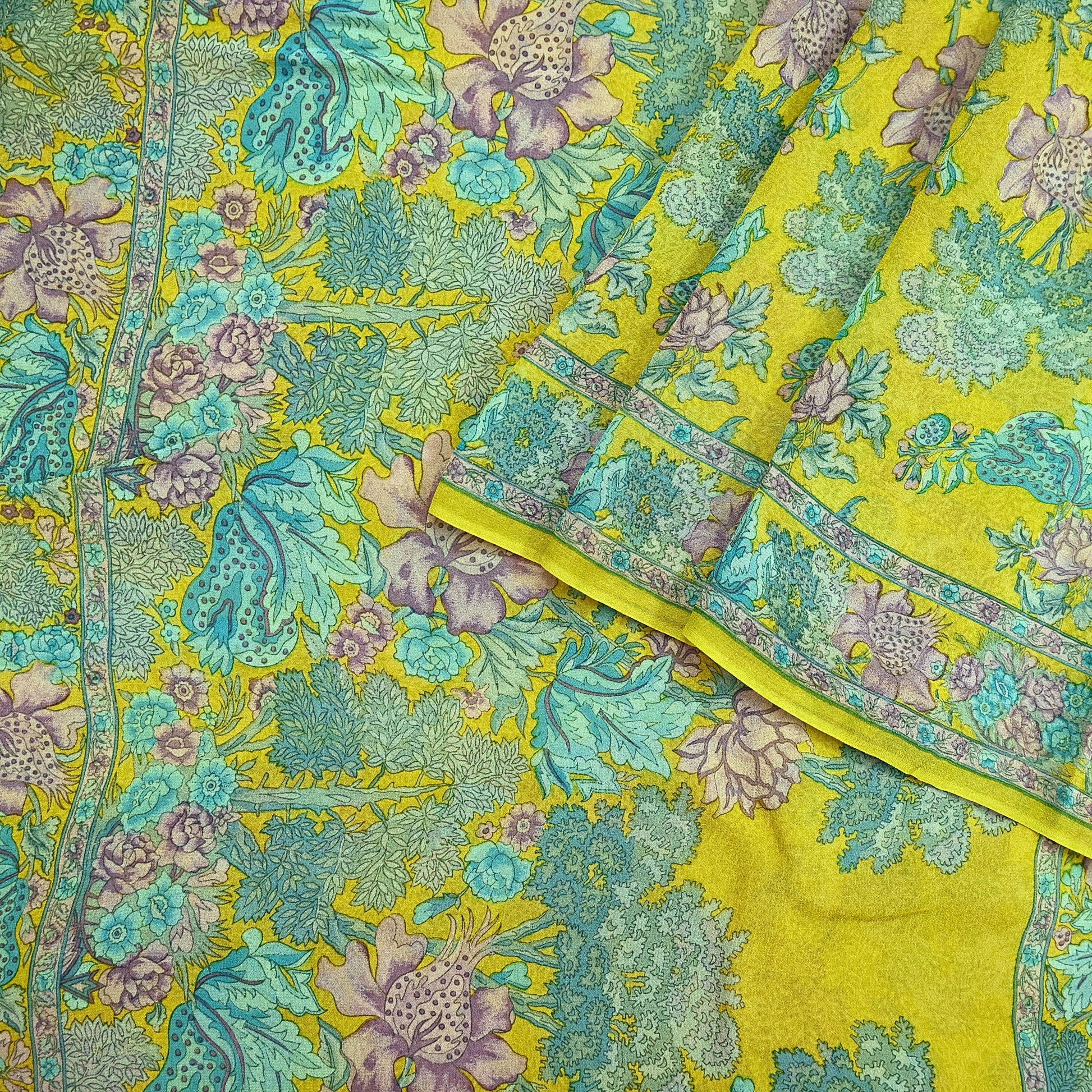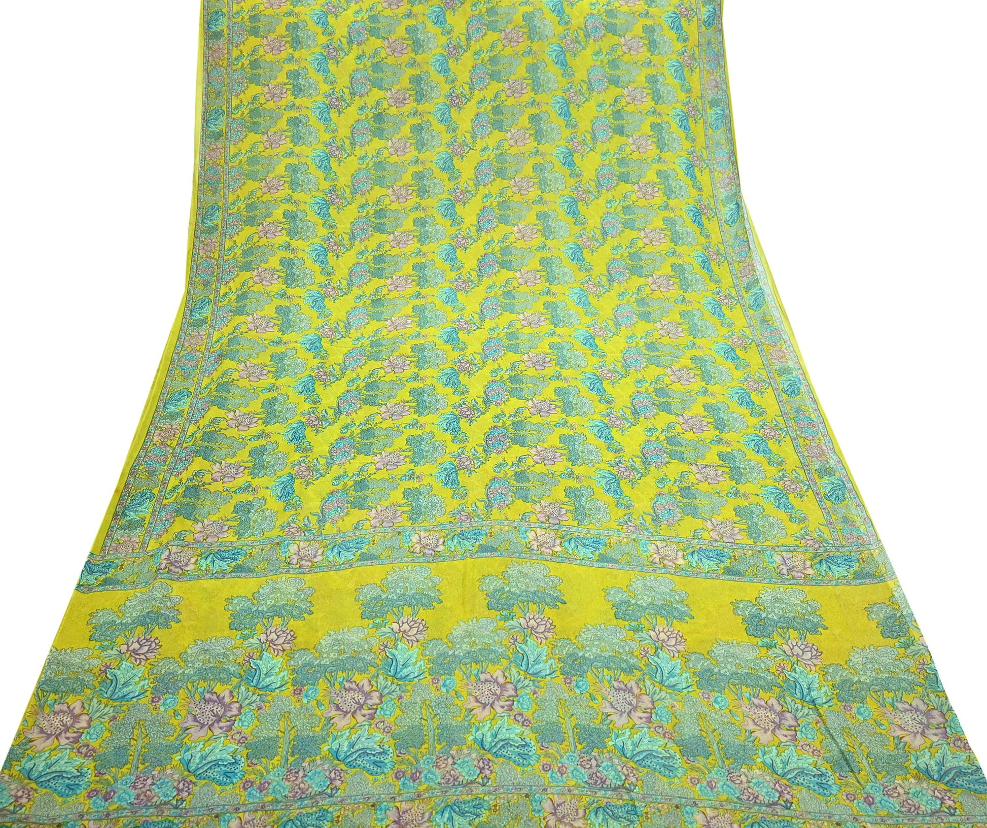 Indian Vintage Green Saree 100% Pure Georgette Silk Printed Sari Sewing 5yd Craft Fabric Dress Designing for Dress making