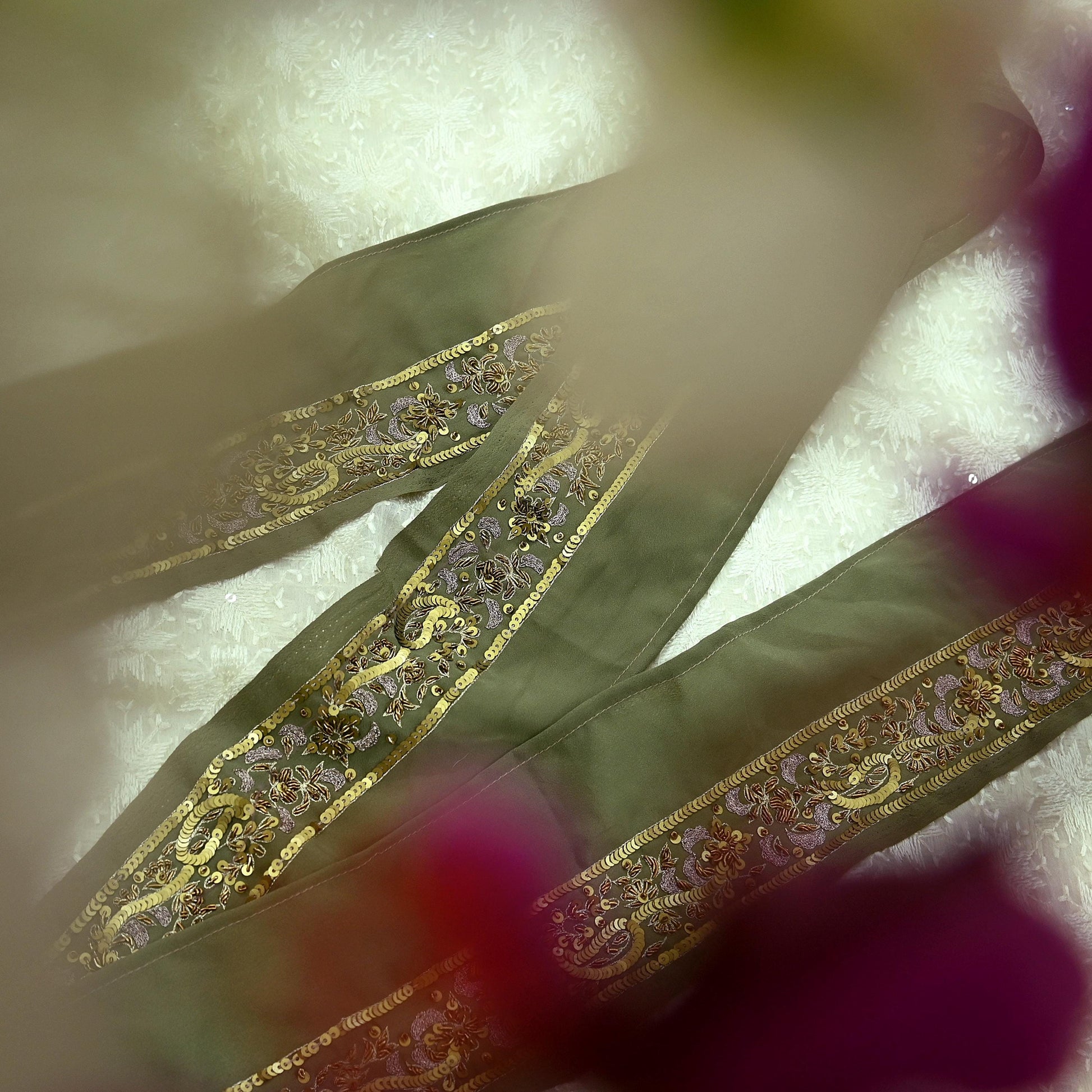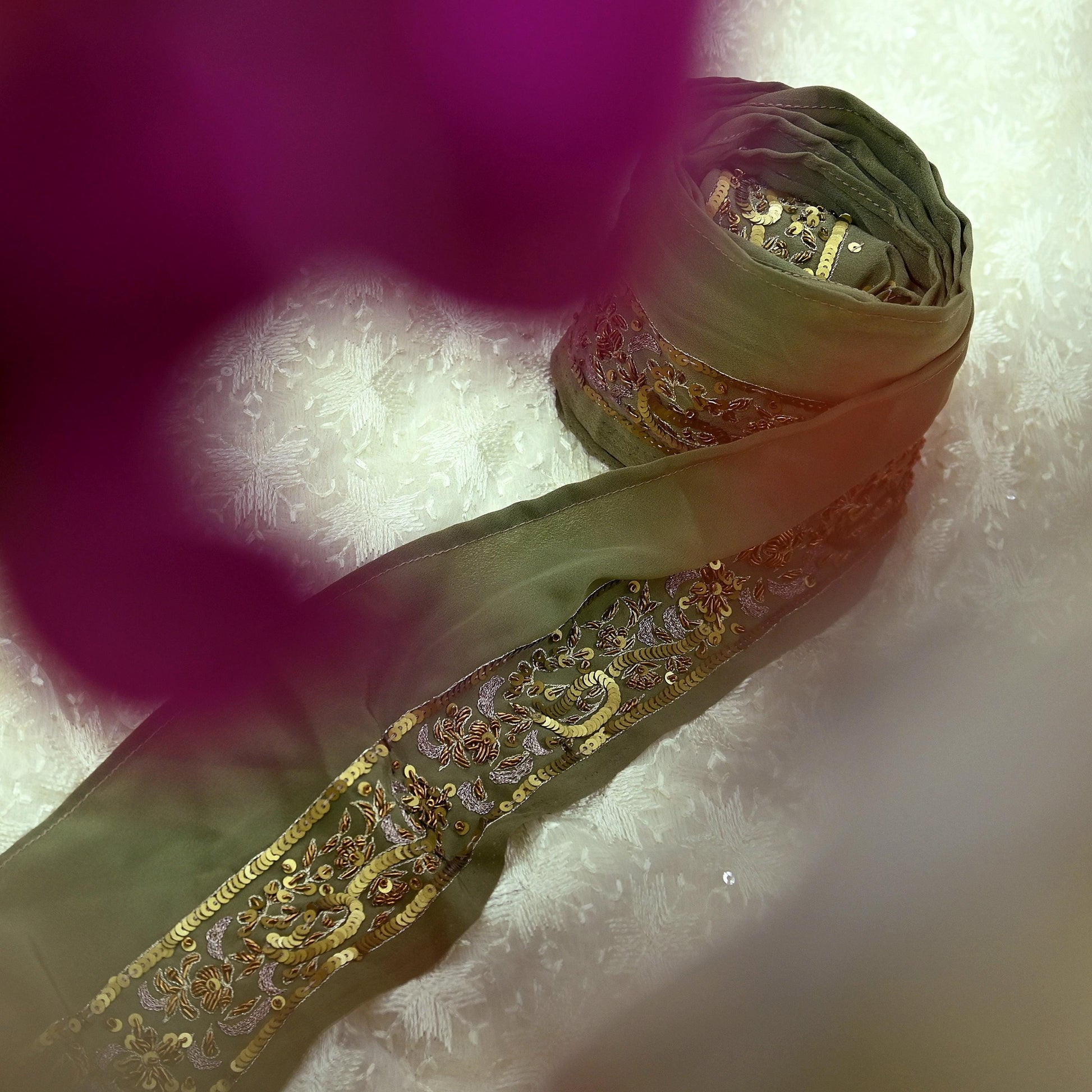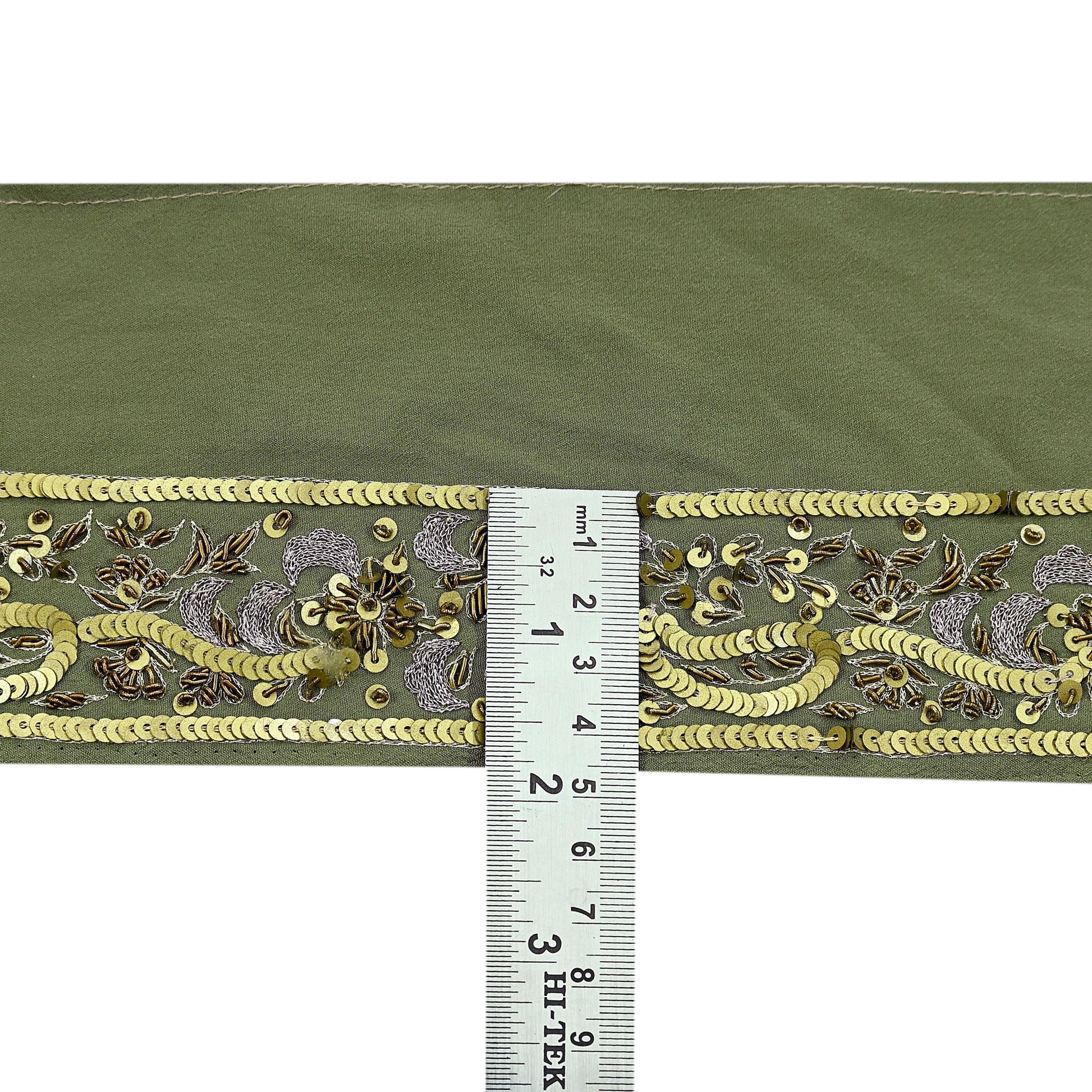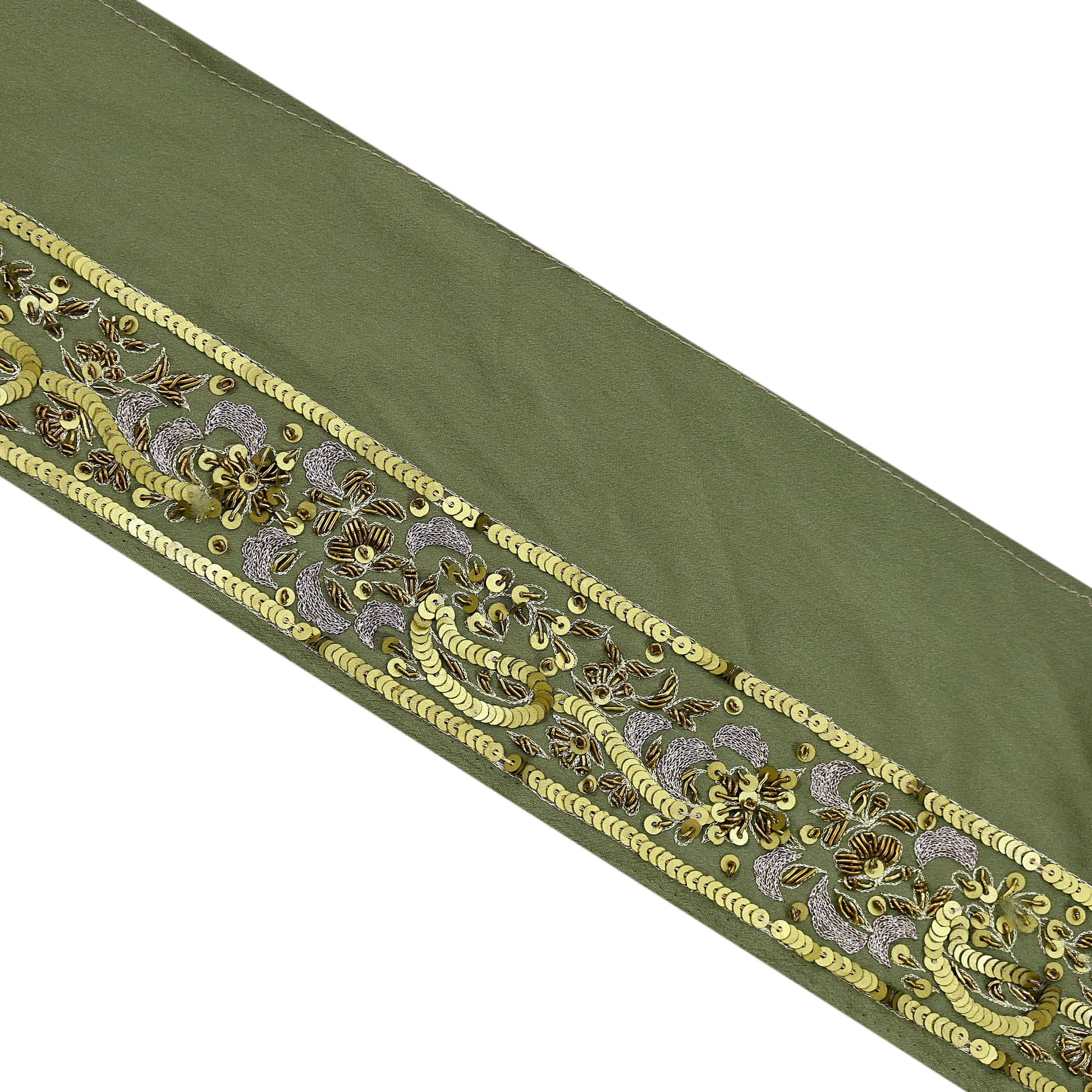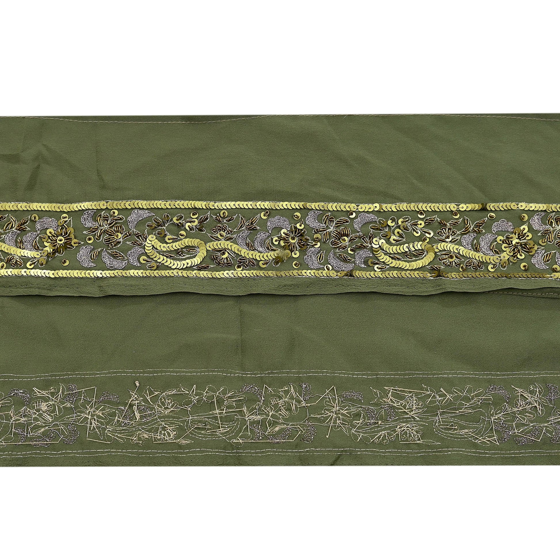 Indian Vintage Green Sari Border Hand Embroidered 1yd Craft Trim Lace Sewing Sari Ribbon Pure Crepe silk Zardozi/Dabka Zari