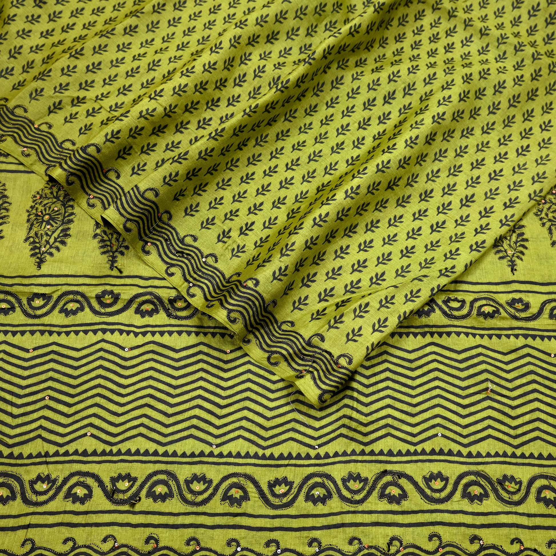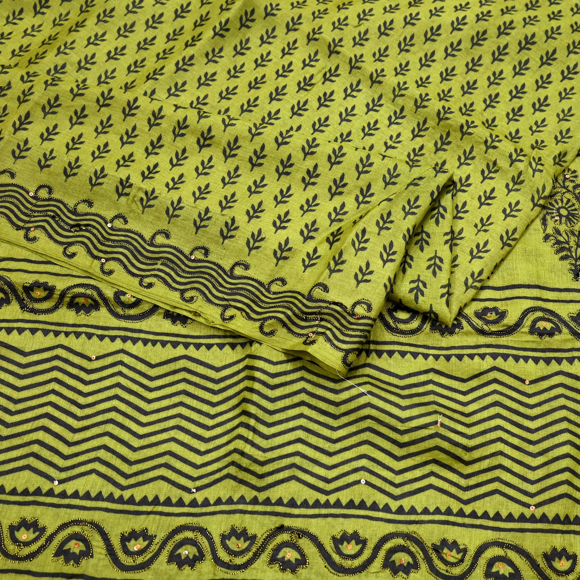 *Vintage Sari Green Colored Hand Embroidered Pure Silk Sarees.