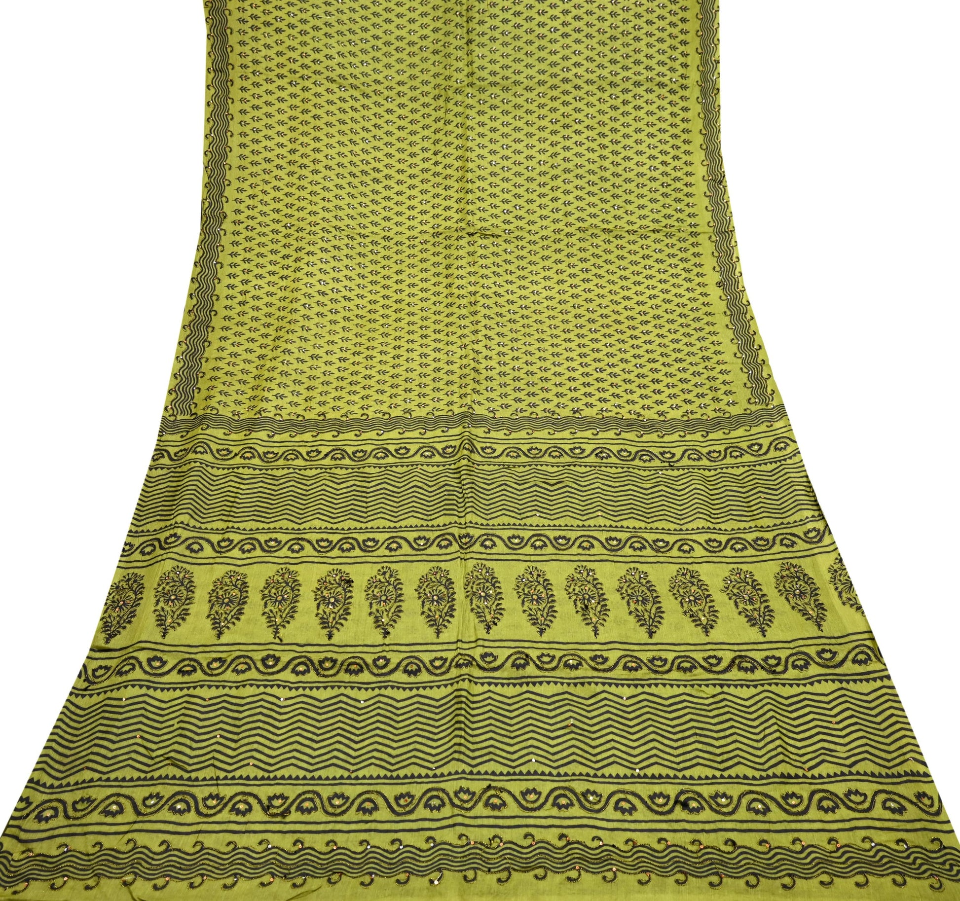Indian Vintage Green Sari Pure Silk Hand Embroidered Sarees 5Yd Craft Fabric Sewing soft Quilting Crafting Upcycle Ethnic Bollywood sarees