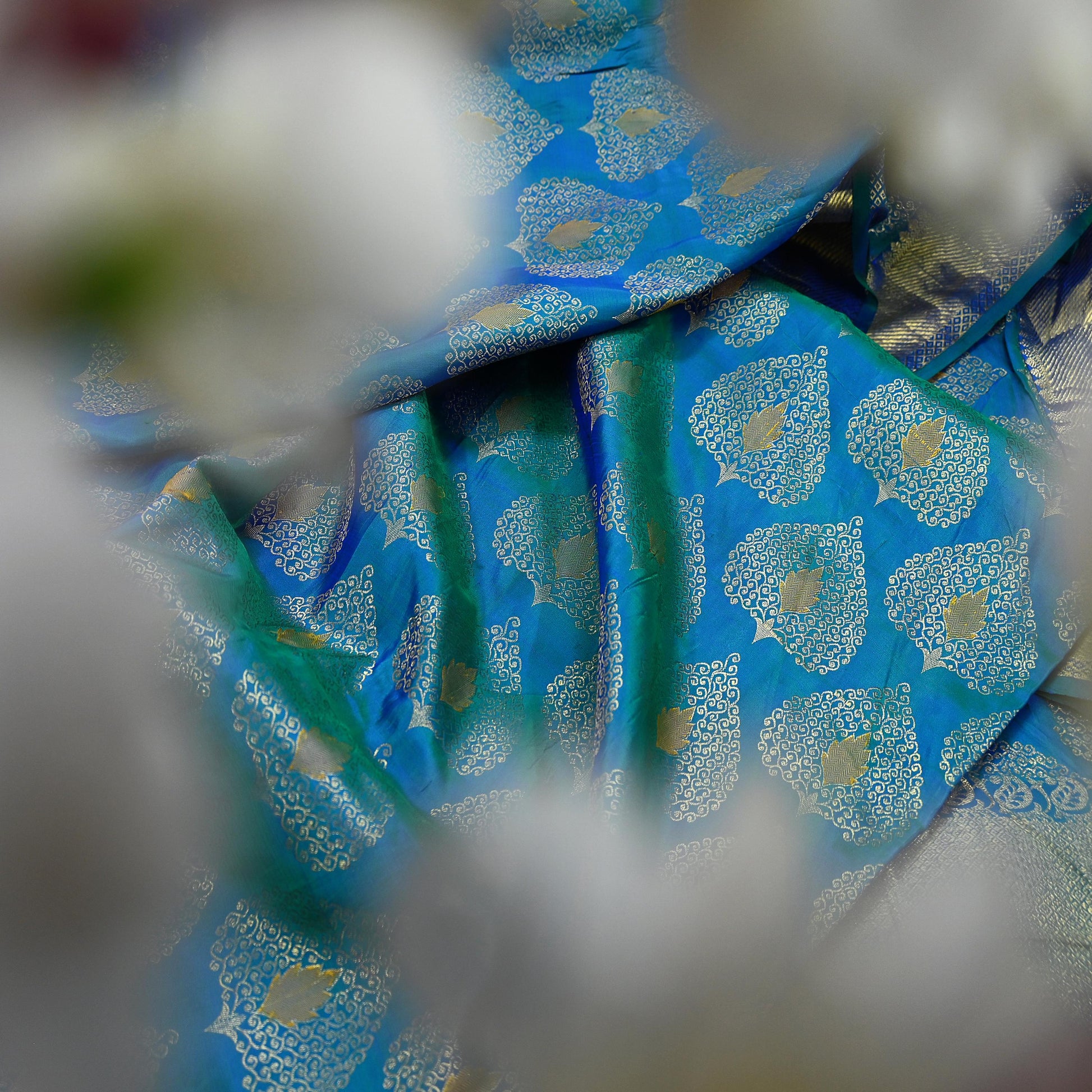 *We offers this vintage Blue & Green color saree which is crafted with 100% Pure Silk.