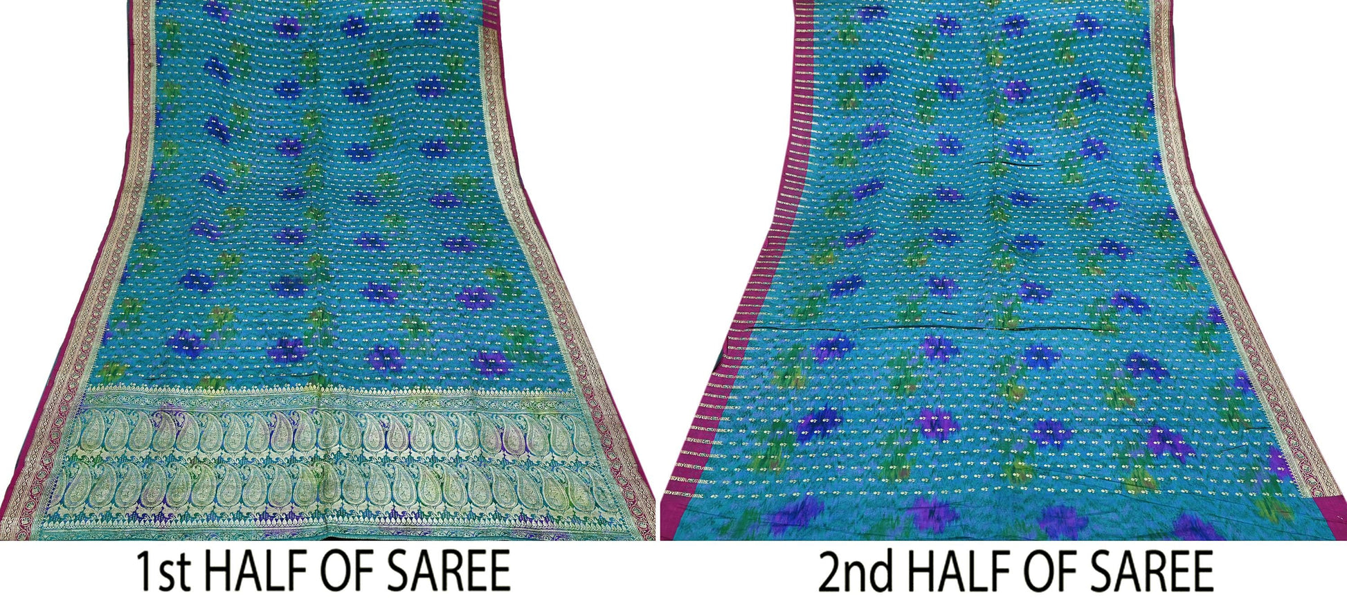 Indian Vintage Heavy Blue Sari Pure Silk Blue Woven Brocade Sarees 5Yd Craft Fabric Floral Ethnic Zari Dress making Pre-owned Wedding sari