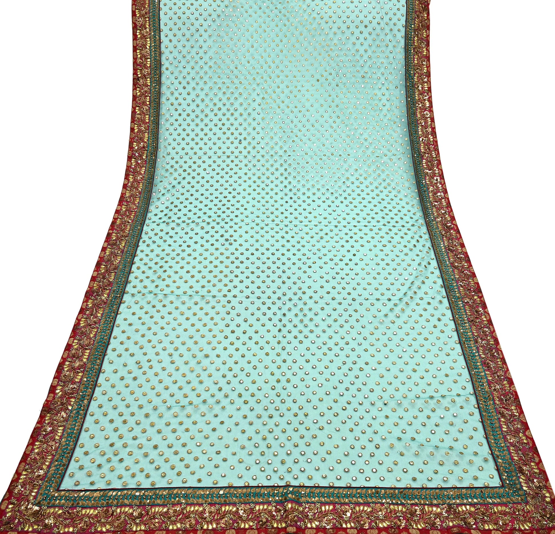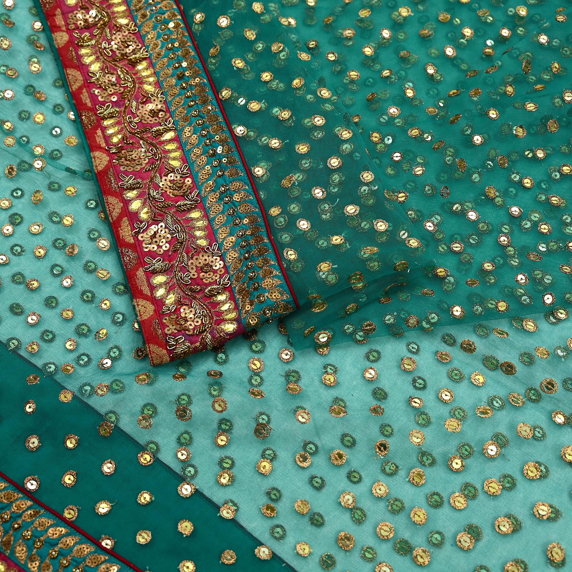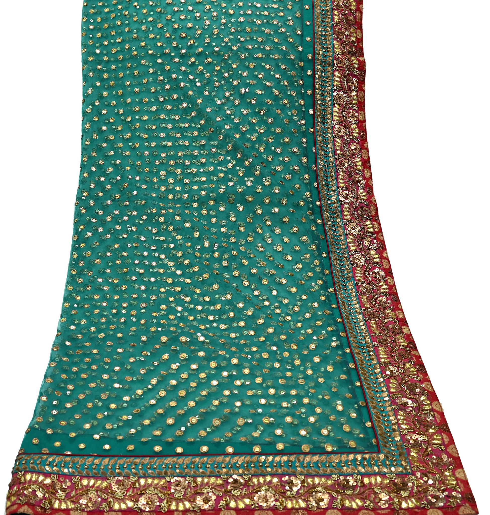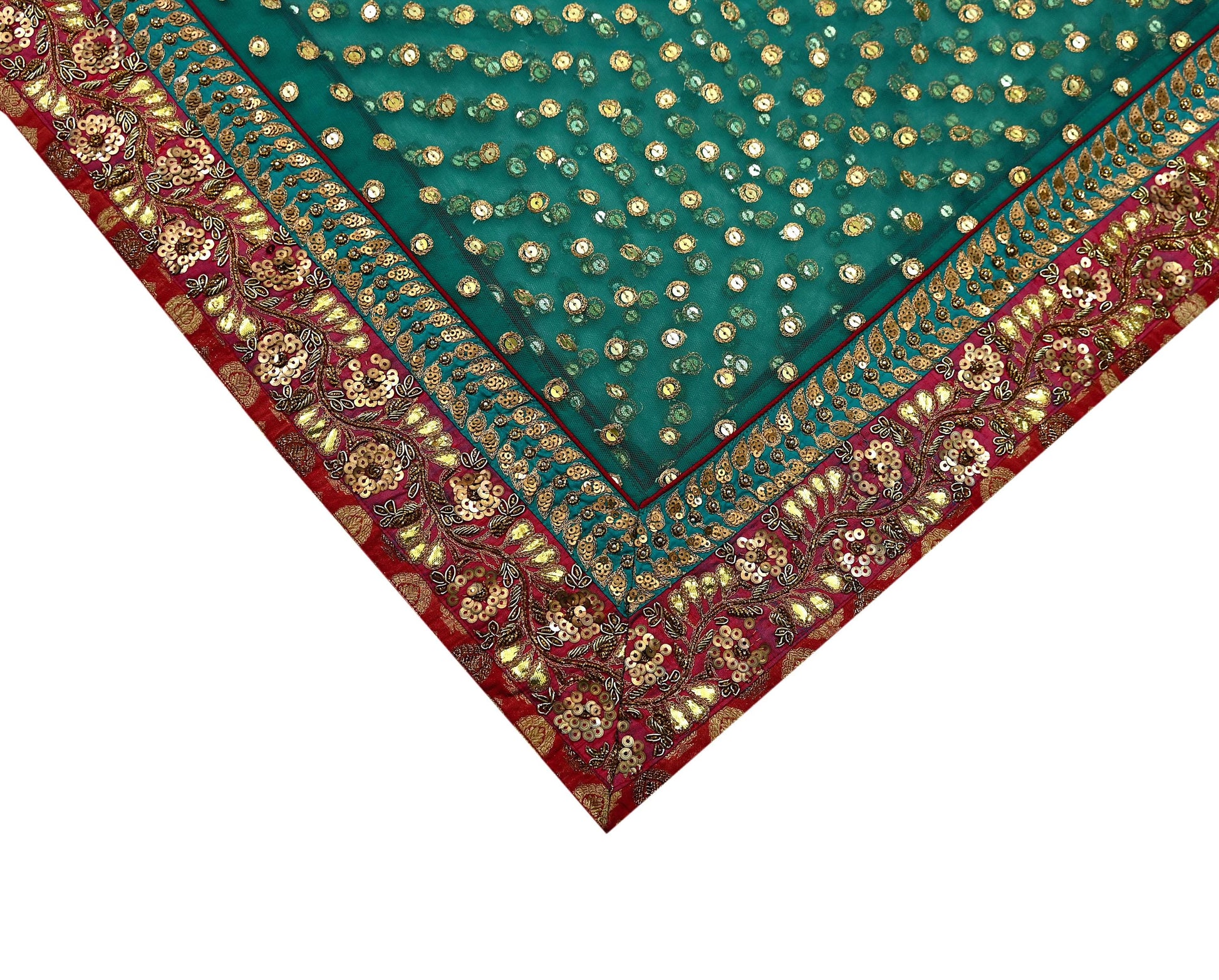 Indian Vintage Heavy Bridal Dupatta Green Net Mesh Long Stole Hand Embroidered Scarf Zardozi Zari Sequins Wedding/Party wear hijab veil