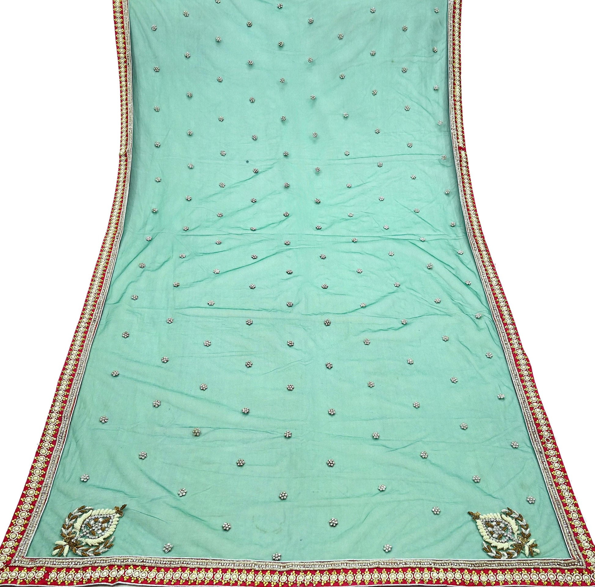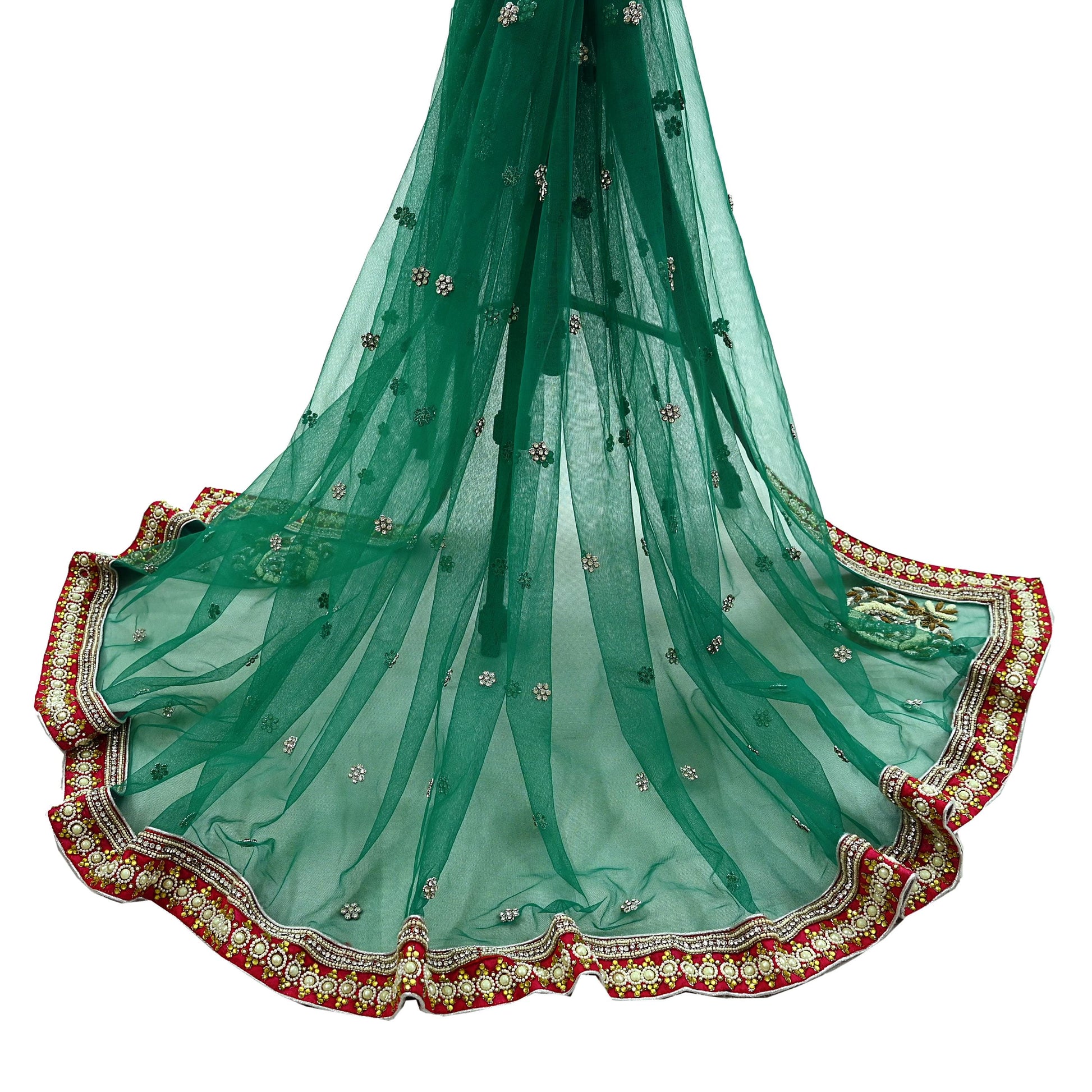 Indian Vintage Heavy Bridal Dupatta Green Net Mesh Long Stole Hand Embroidered Scarf Zardozi Zari Sequins Wedding/Party wear hijab veil
