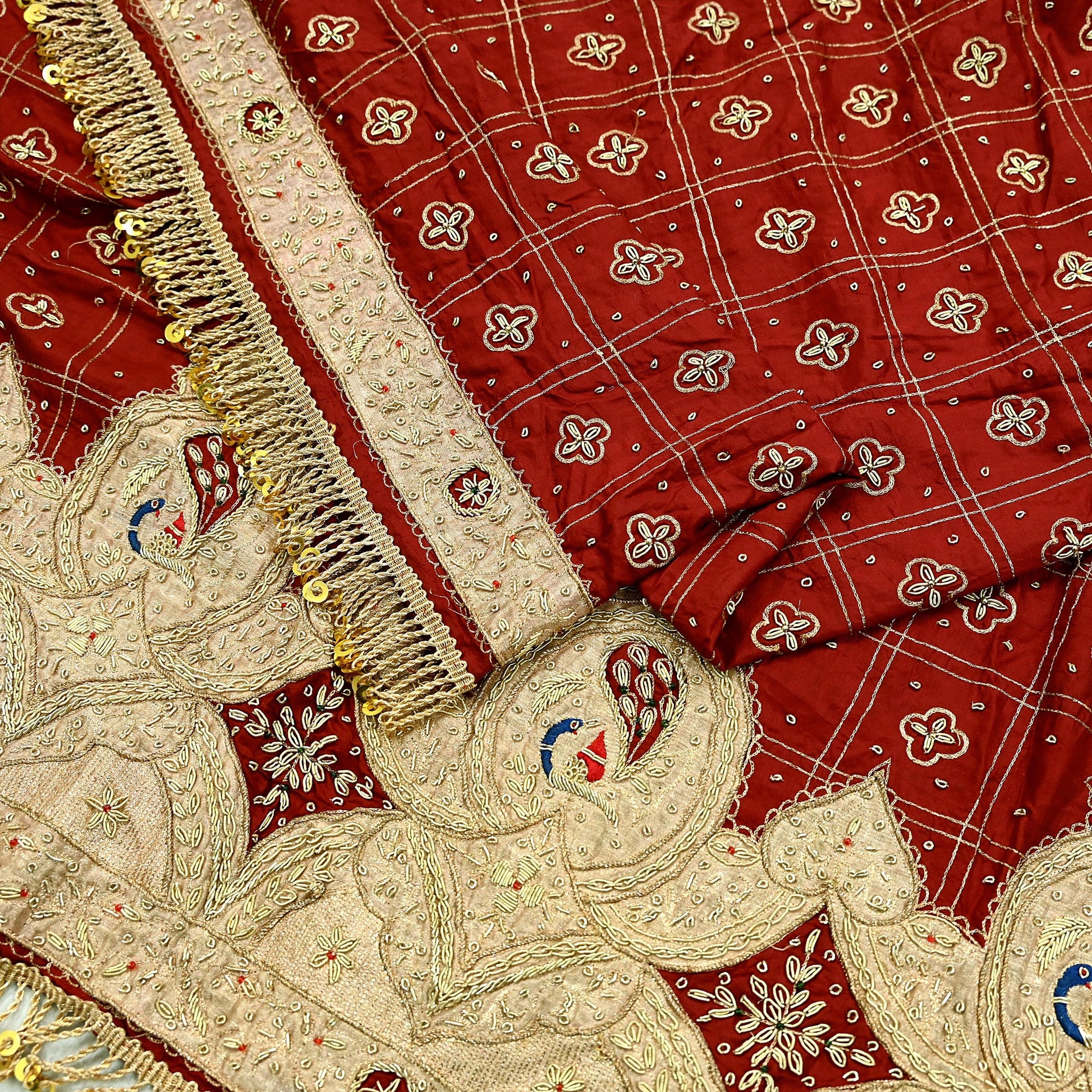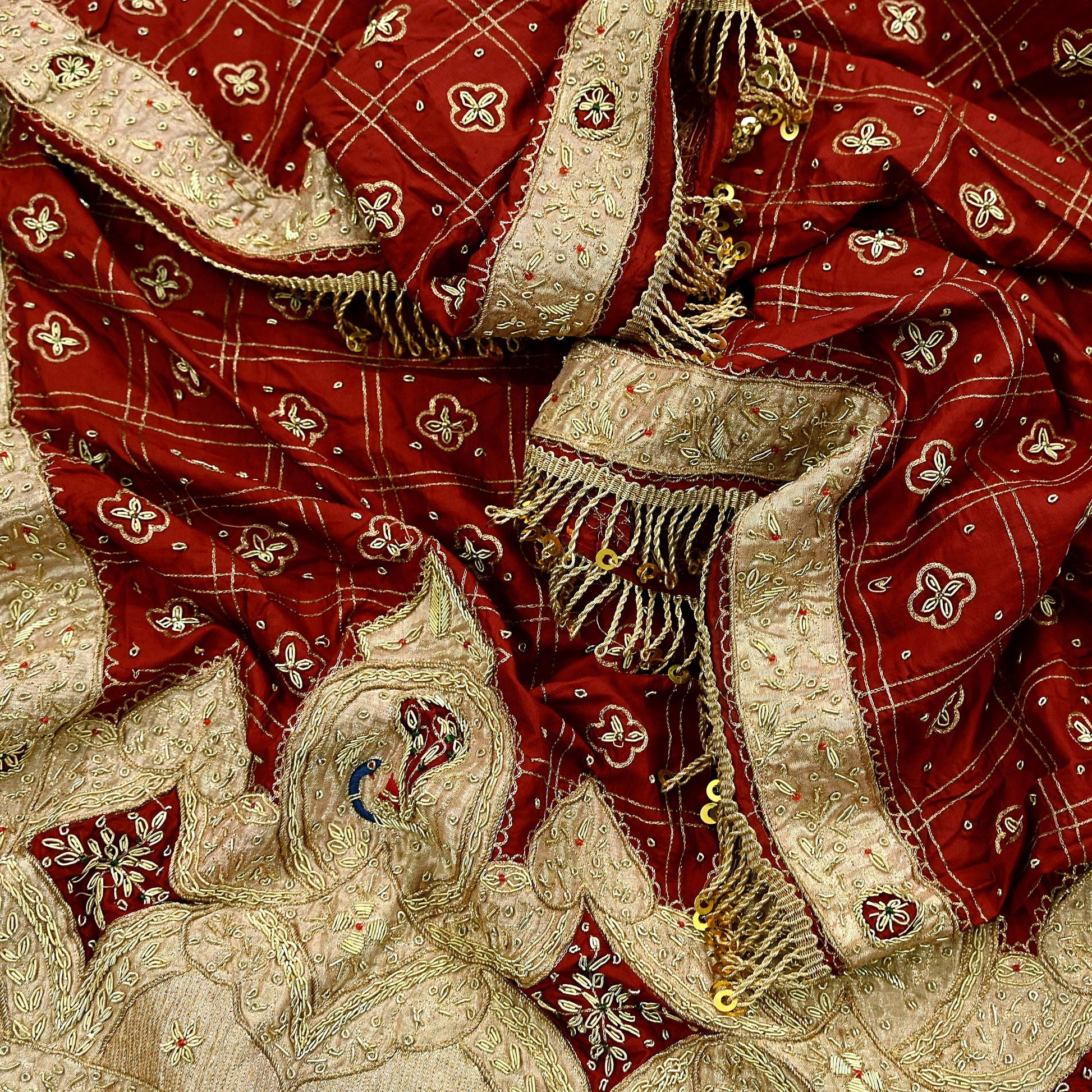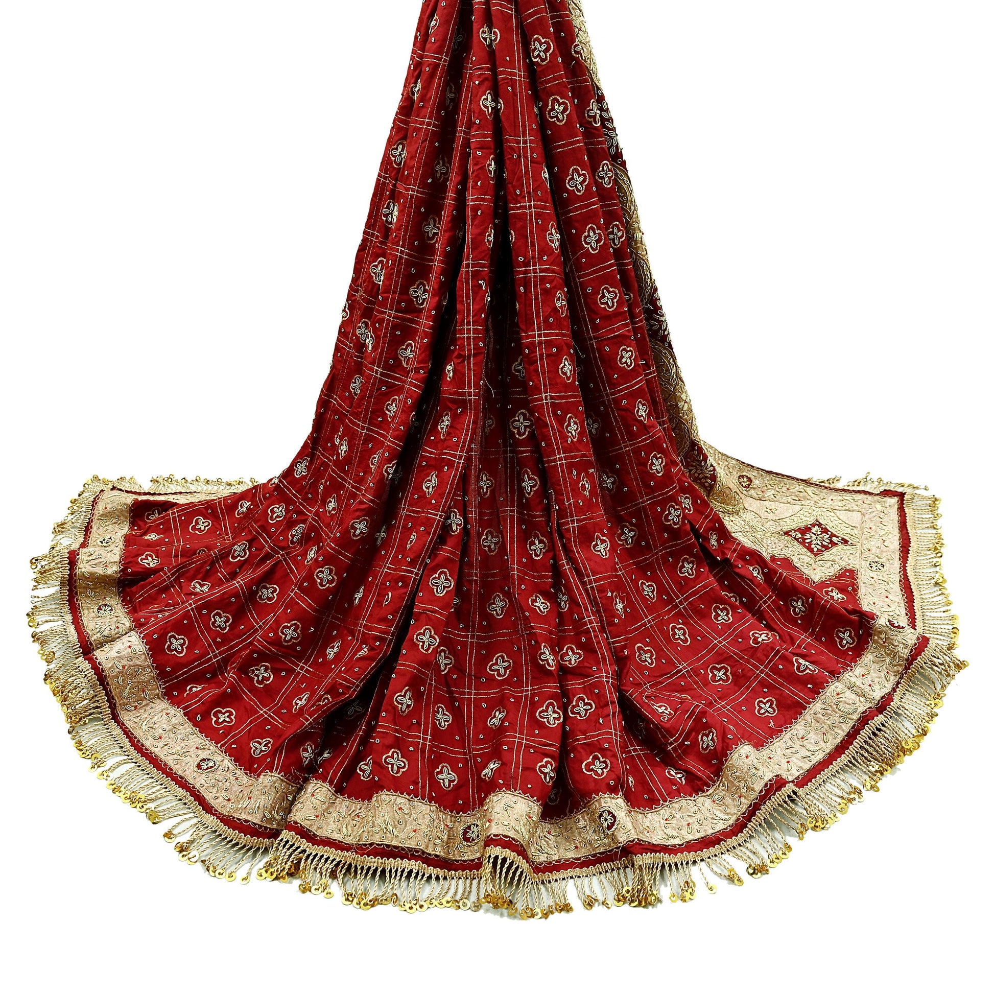 Indian Vintage Heavy Bridal Dupatta maroon Pure Silk Long Stole Hand Embroidered Hijab Scarf Zardozi Peacock Wedding Dupatta Fringes