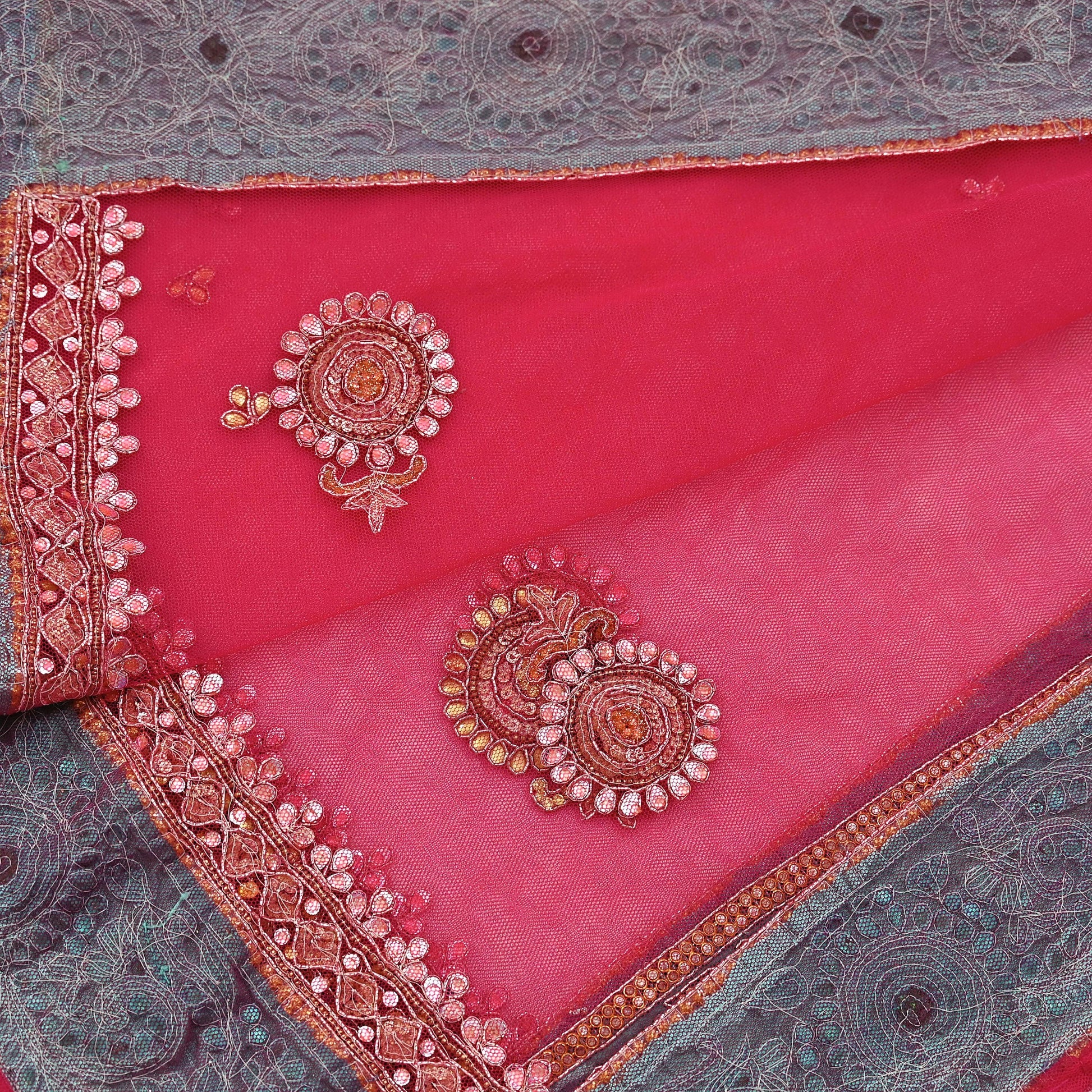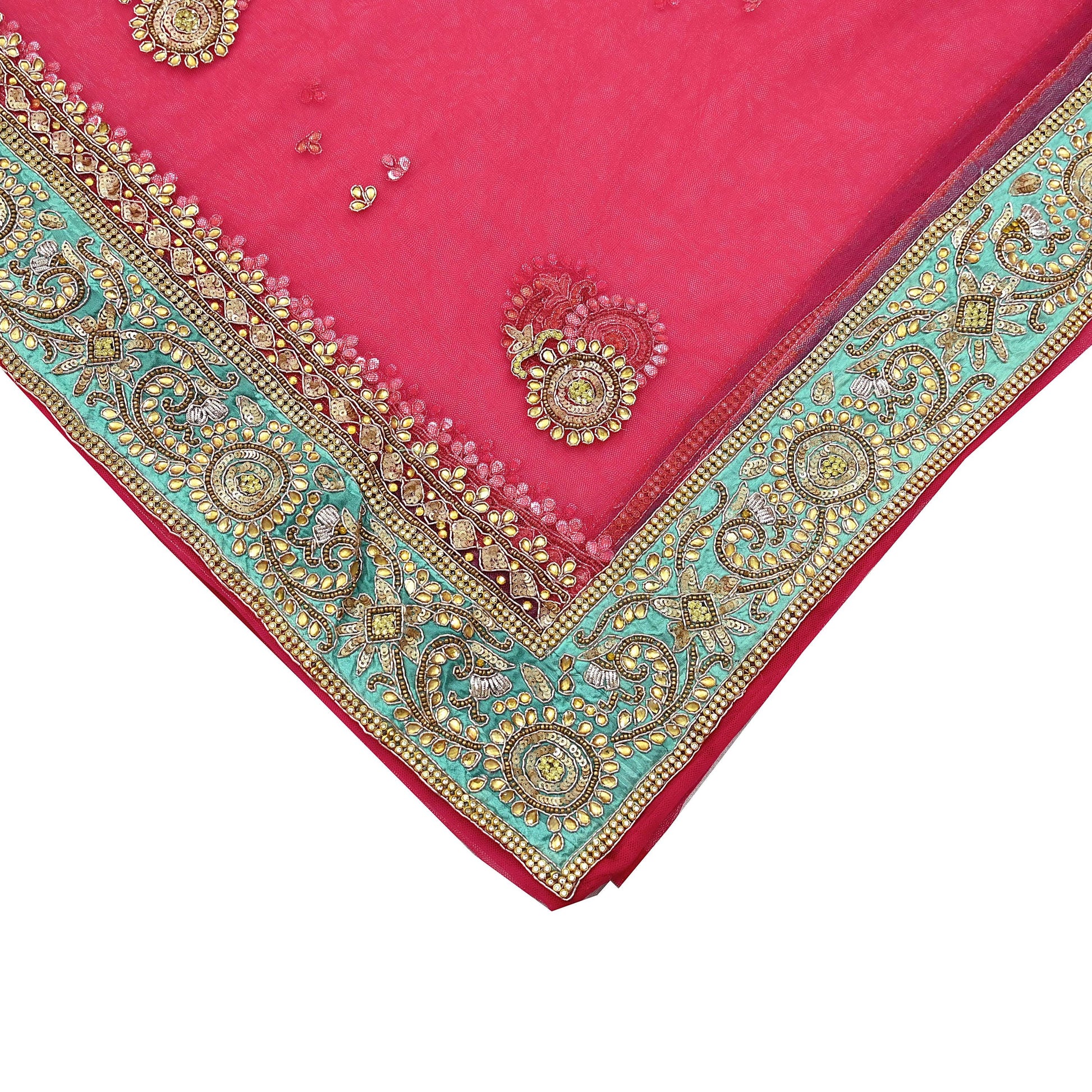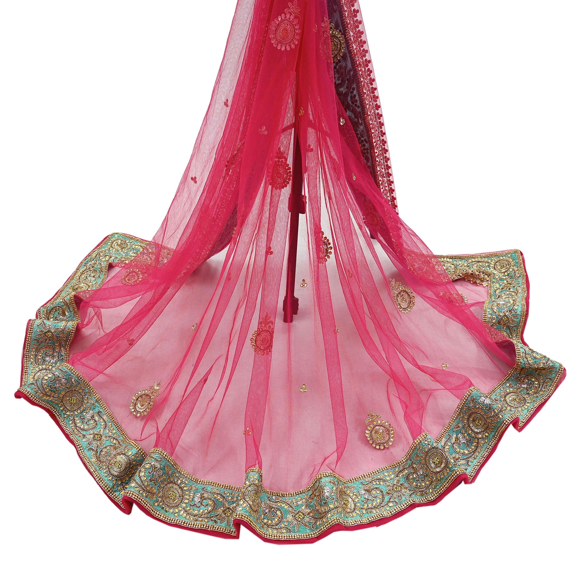 Vintage Beautiful Heavy Dupatta Hand Embroidered Net Dupatta/Stole In Pink Color Fabric. This one of a kind item is difficult to express in words. Border feature is floral & Paisley design embroidered pure metallic Golden & Silver Dabka, zardozi/Zari And Golden Beaded, Golden Stones work embellished work is the highlight of the dupatta. Also you can see similar work with floral pattern in center part adds to its beauty. Green Border work is giving a fabulous look to the dupatta. Awesome one !!!