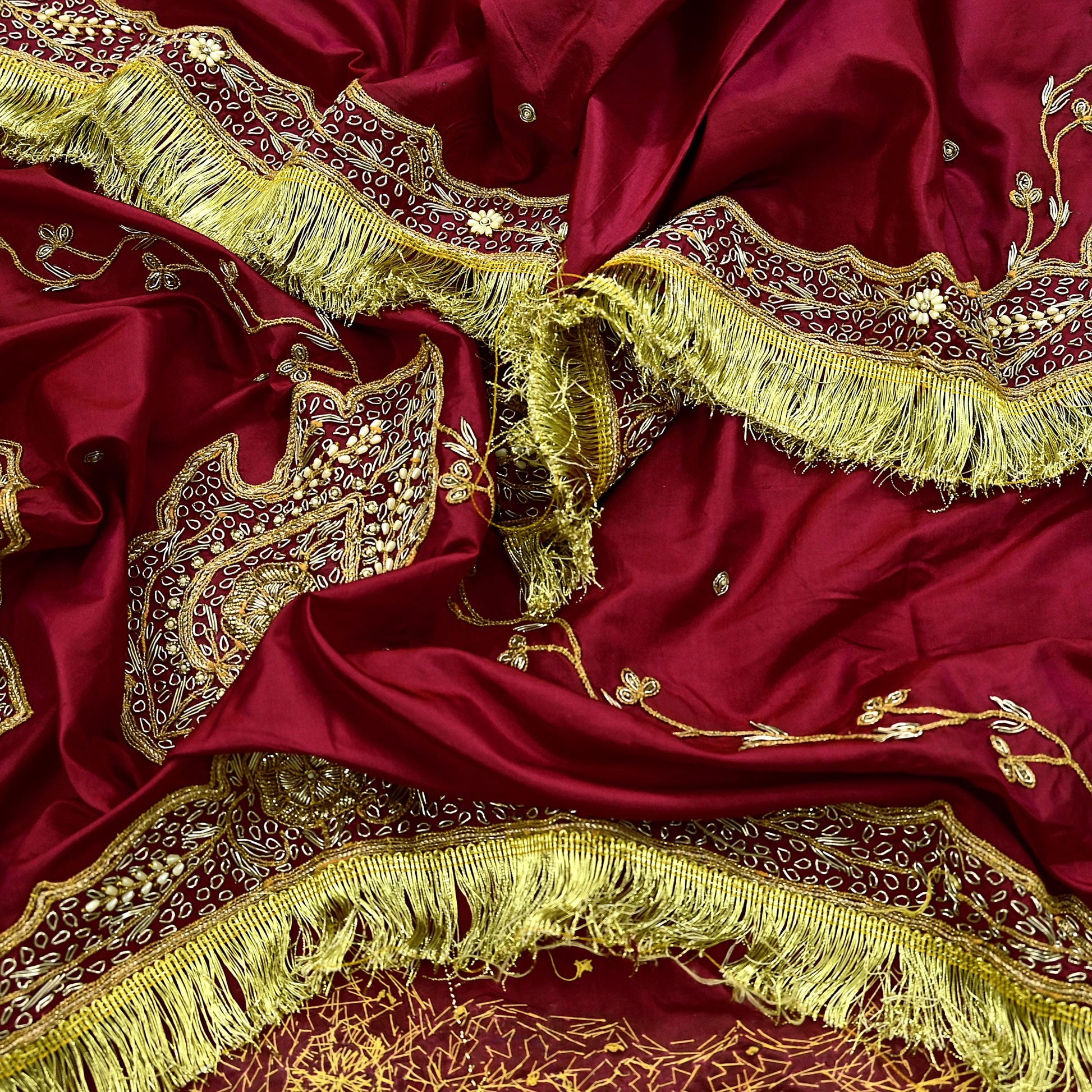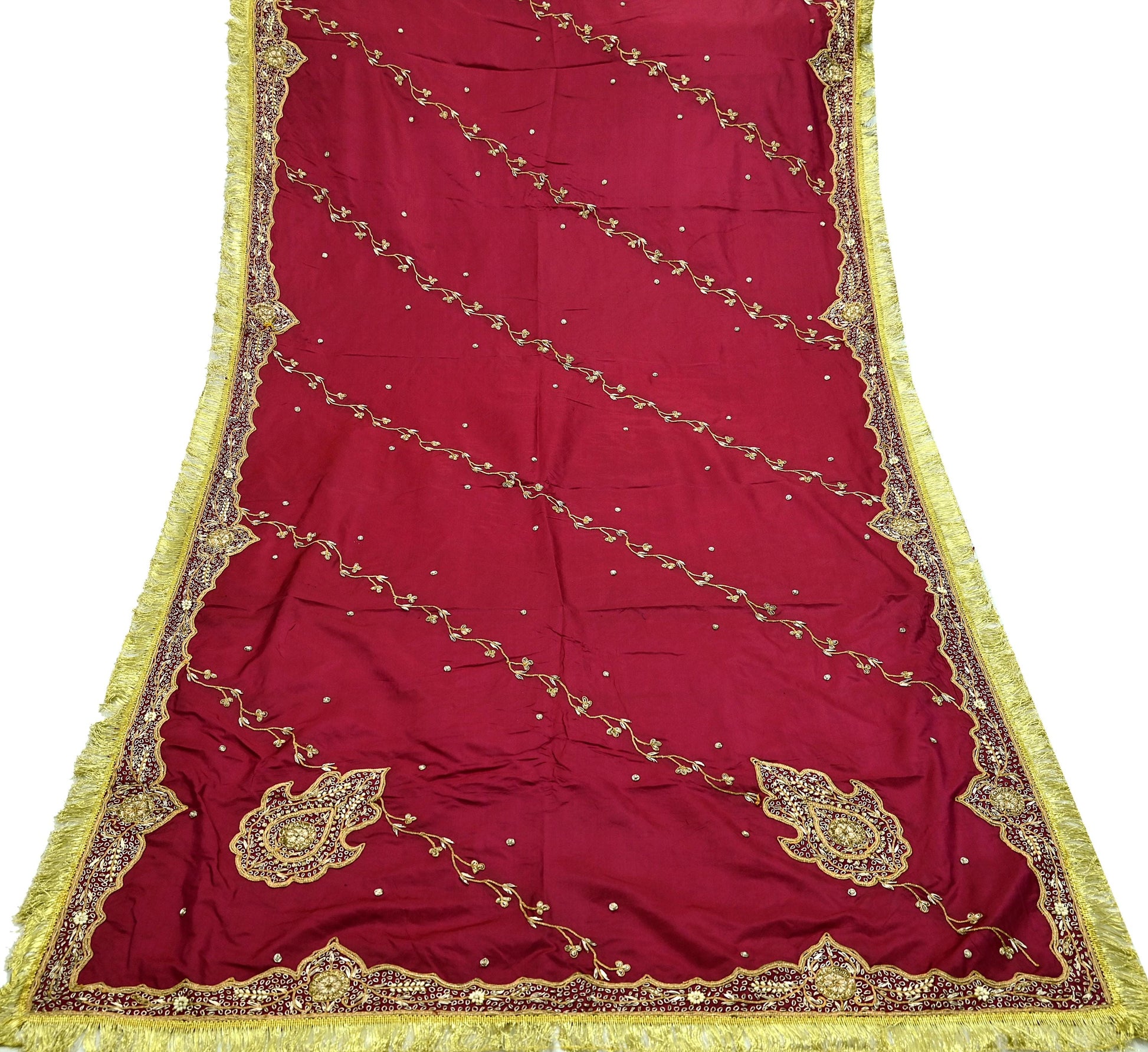 Indian Vintage Heavy Bridal Dupatta Pink Pure Silk Long Stole Hand Embroidered Hijab Scarf Zardozi Wedding Dupatta Fringes