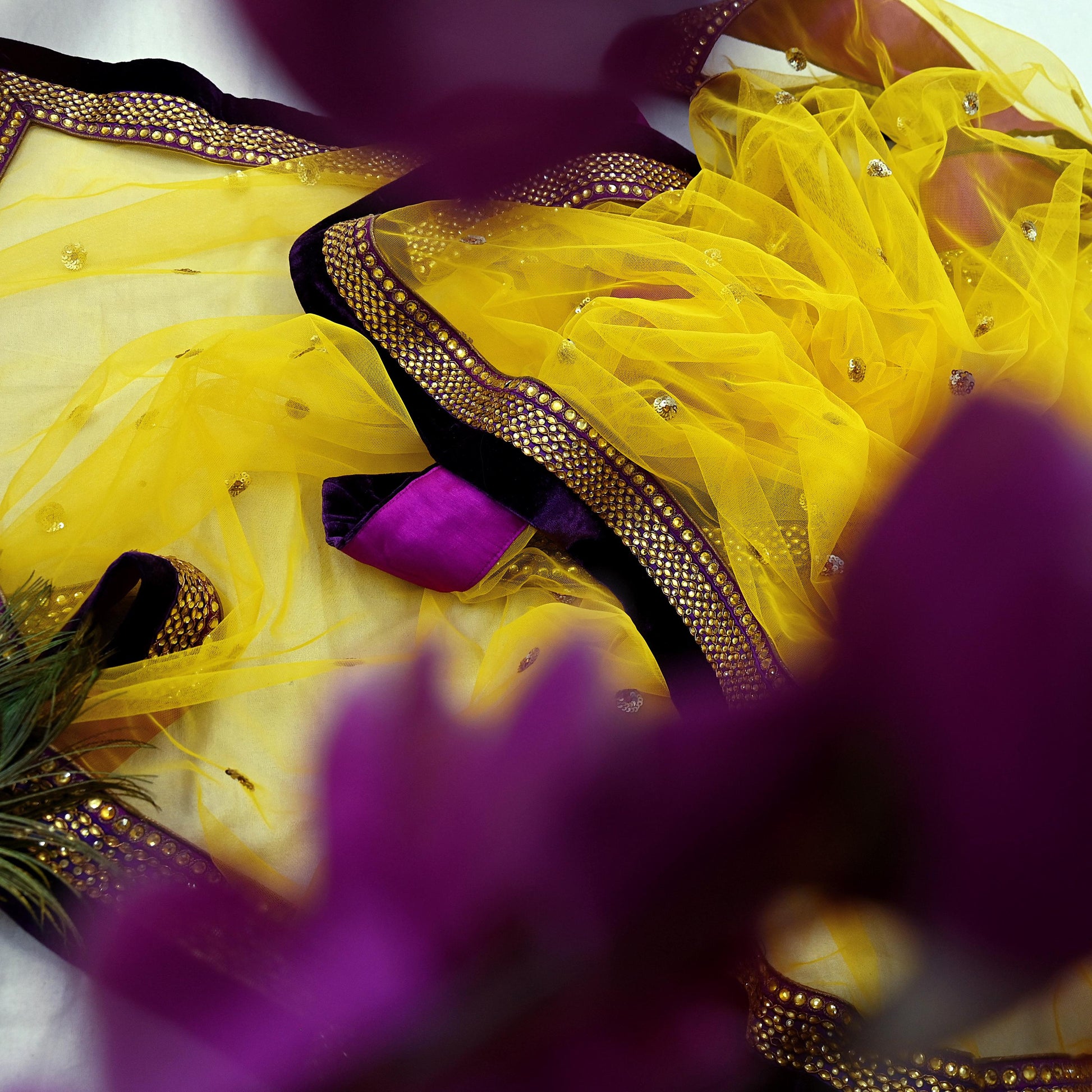 Stunning Beautiful Heavy Dupatta Hand Embroidered Net Dupatta/Stole In Yellow Color Dupatta. This one of a kind item is difficult to express in words. Border feature is floral design embroidered pure metallic Golden zardozi/Dabka, Zari, Golden Sequins And Yellow Beaded, Golden Glass Beaded work embellished work is the highlight of the dupatta. Also you can see similar Zardozi, Beaded work with floral pattern in center part adds to its beauty. Beautiful Purple Velvet Border work is giving a fabulous look to the Lehenga Set. Awesome one !!!